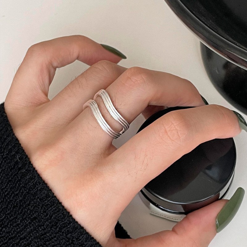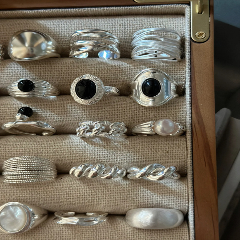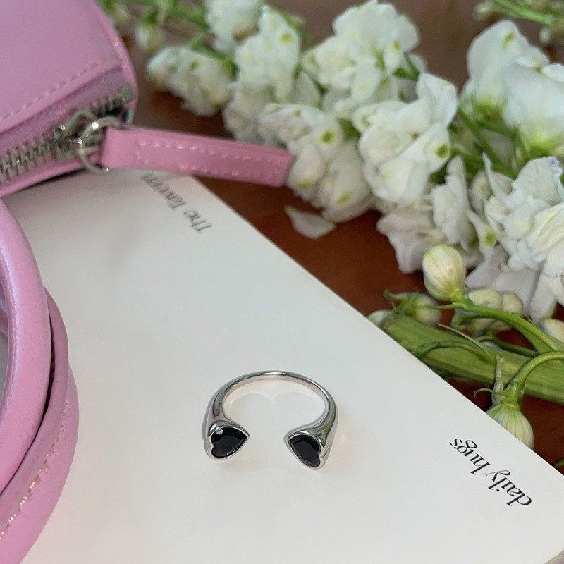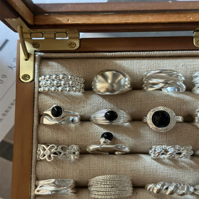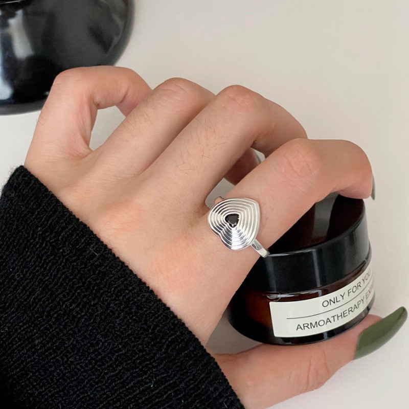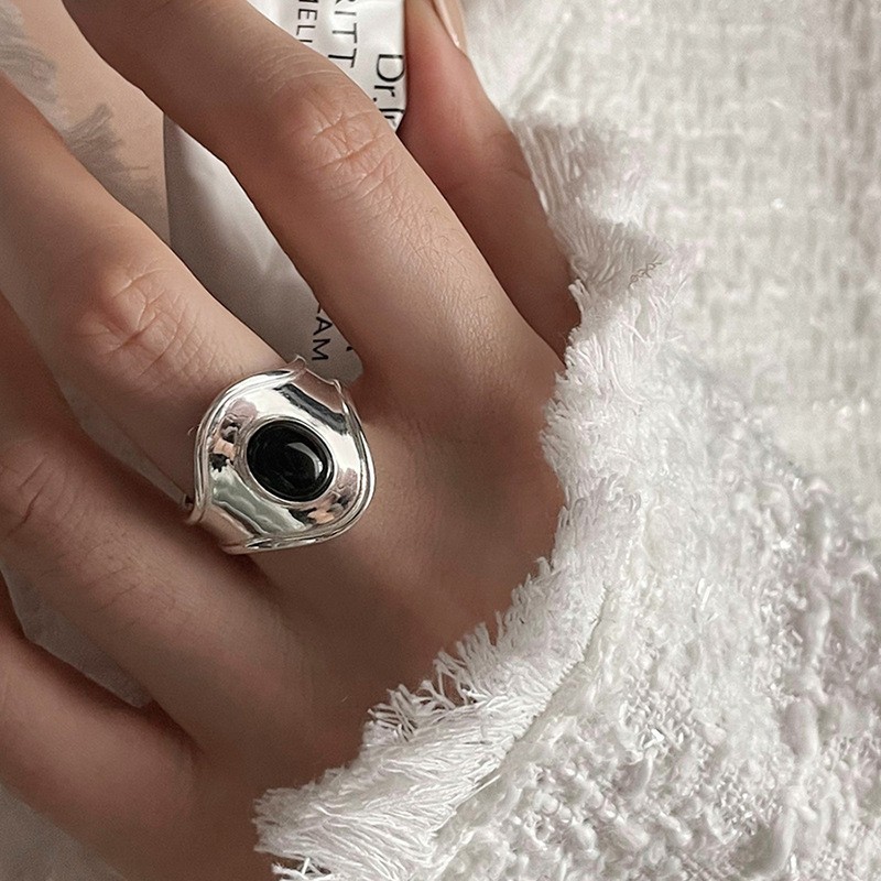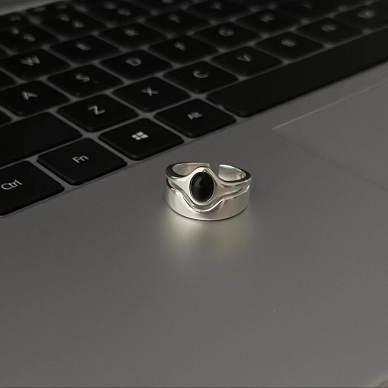 素圈黑玛瑙戒指女开口可调节不掉色小众设计批发饰品复古高级轻奢