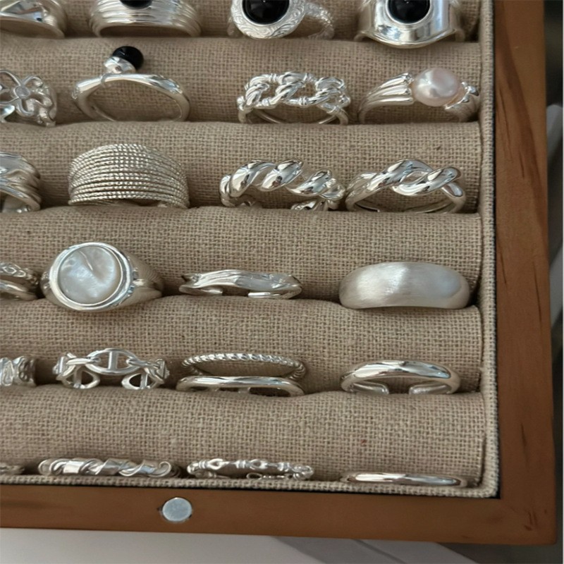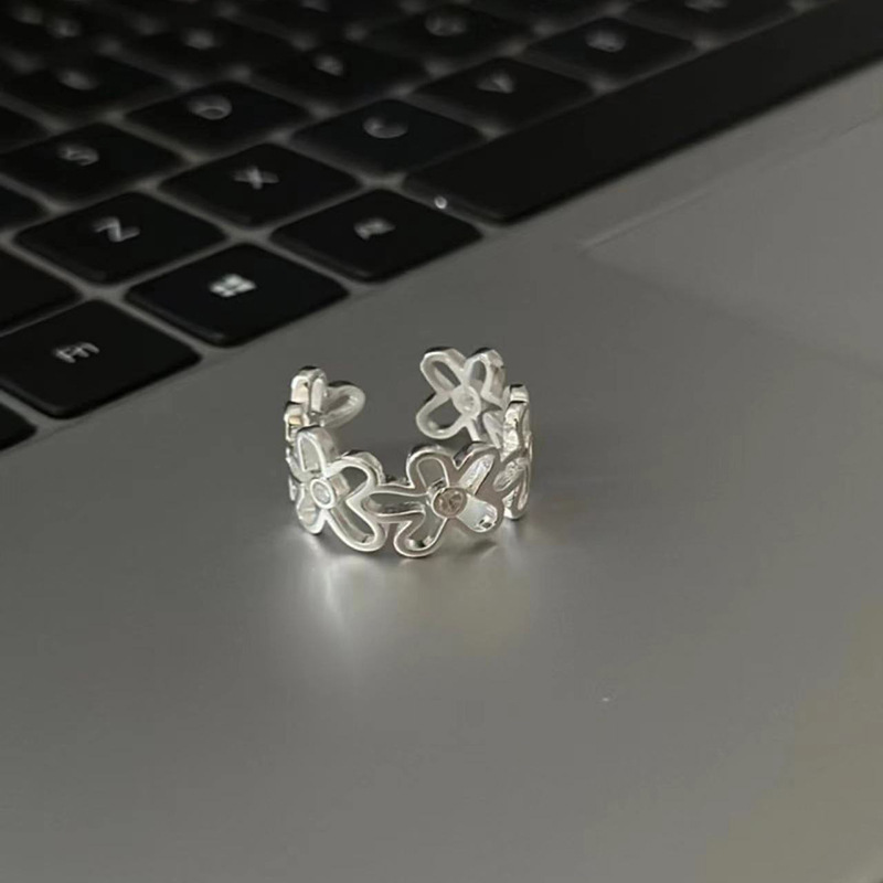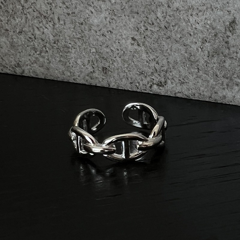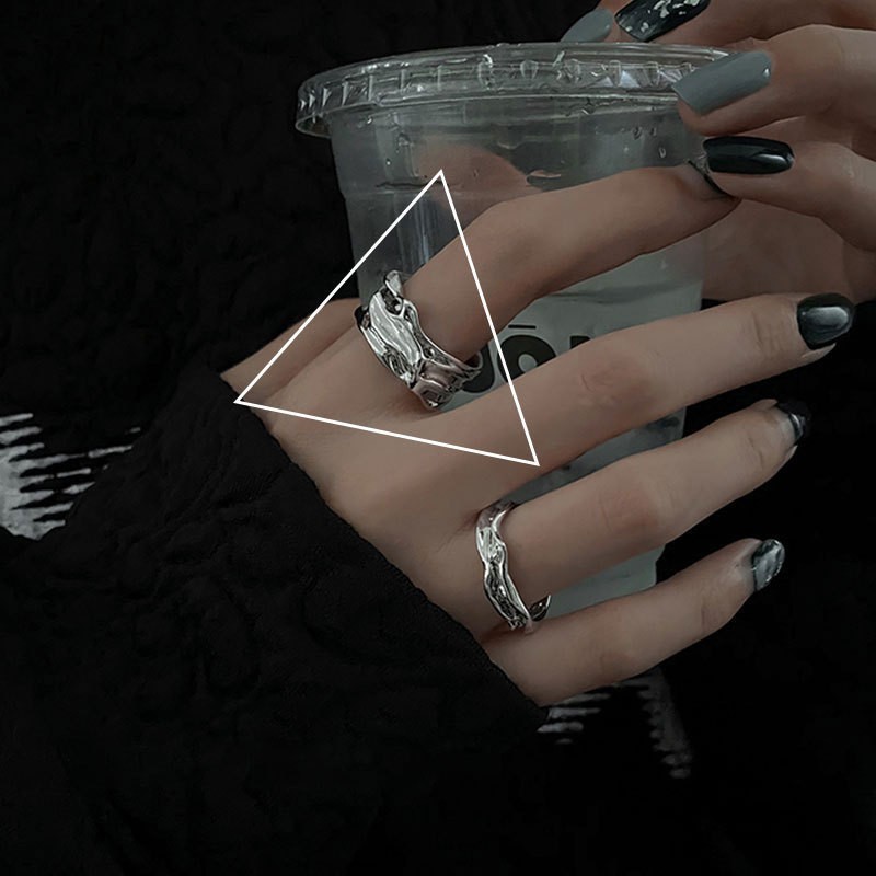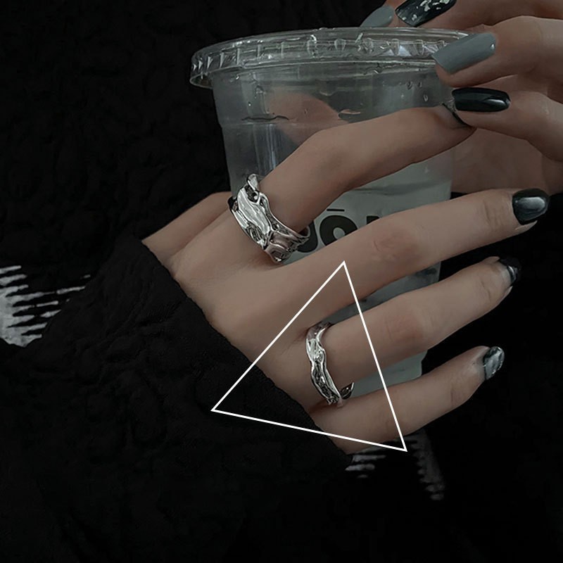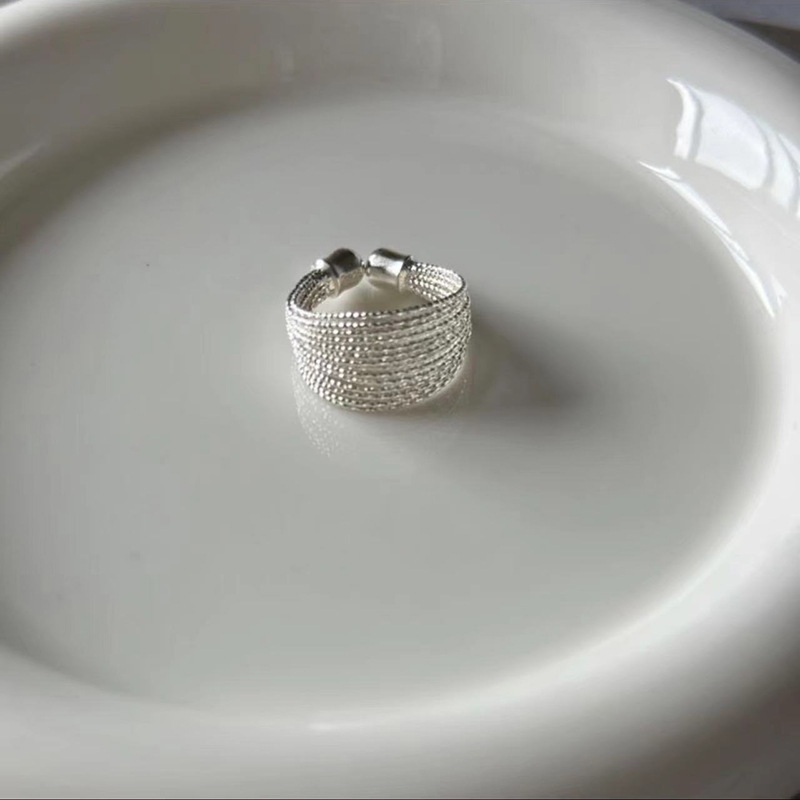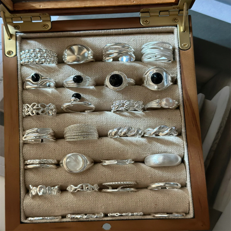 素圈黑玛瑙戒指女开口可调节不掉色小众设计批发饰品复古高级轻奢