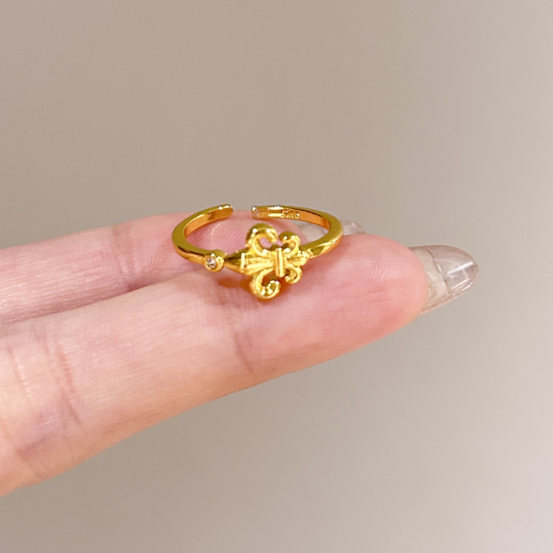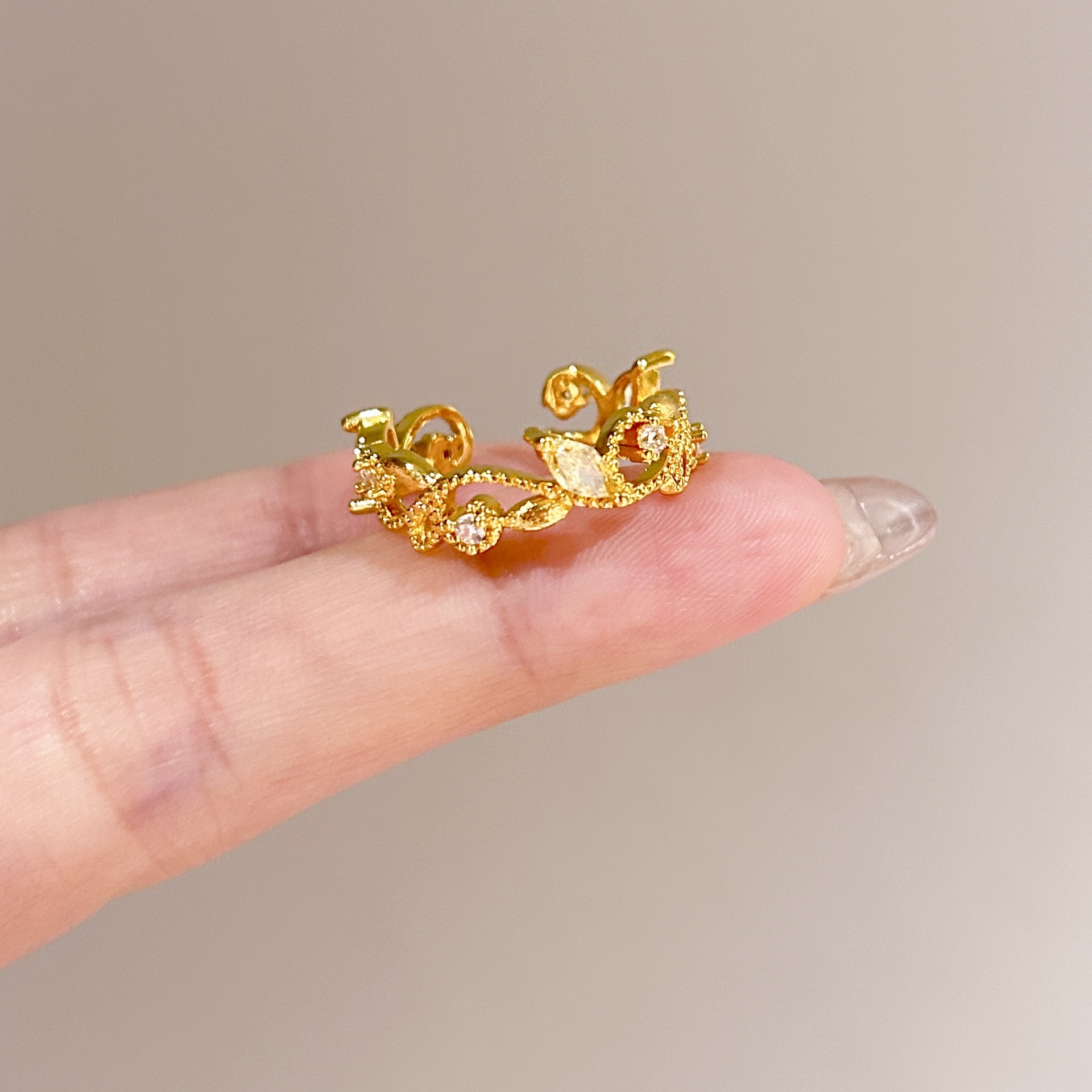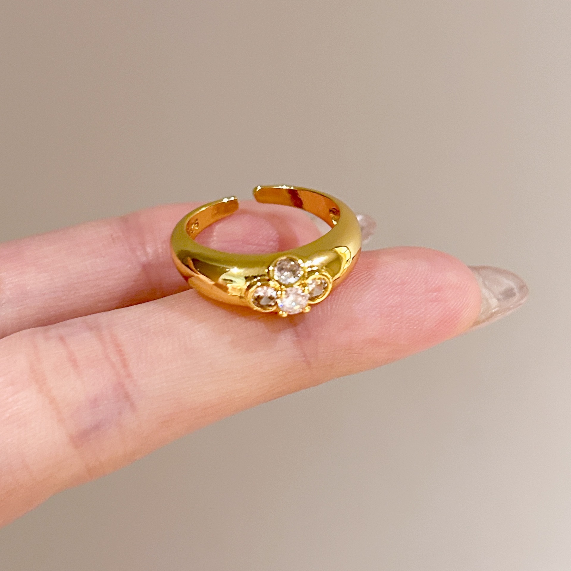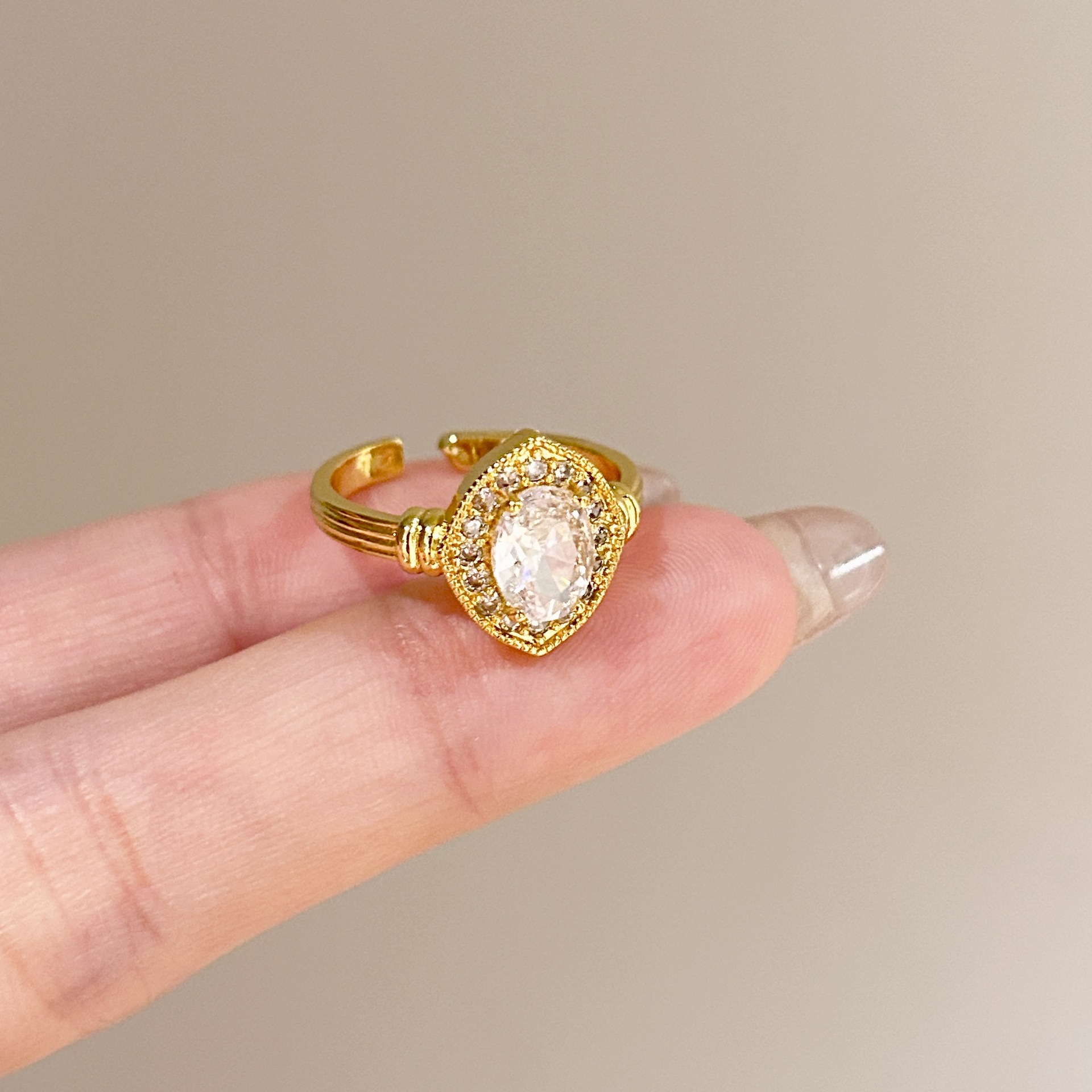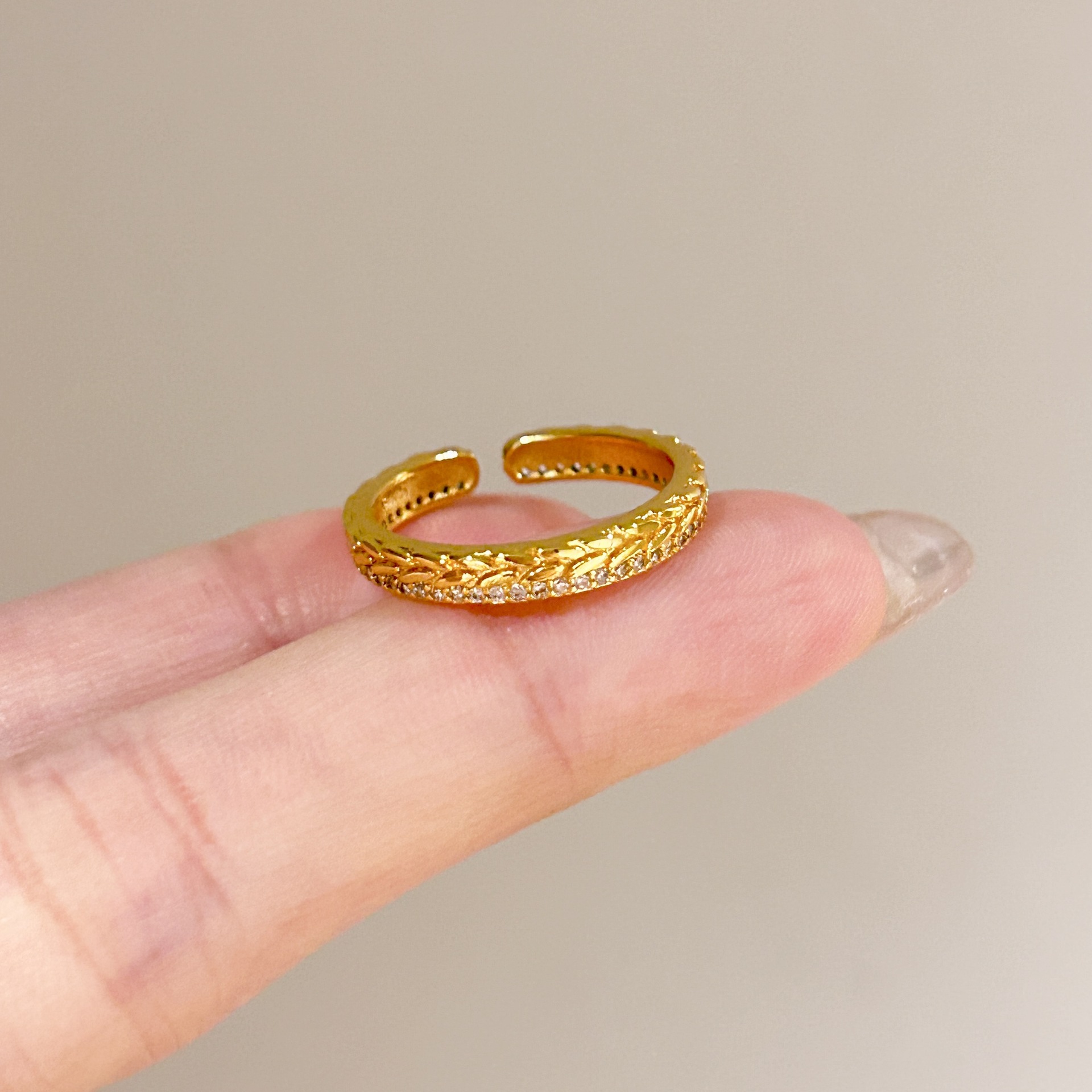 批发中古风拉丝镶钻锆石戒指女不掉色轻奢百搭开口食指戒新品手饰