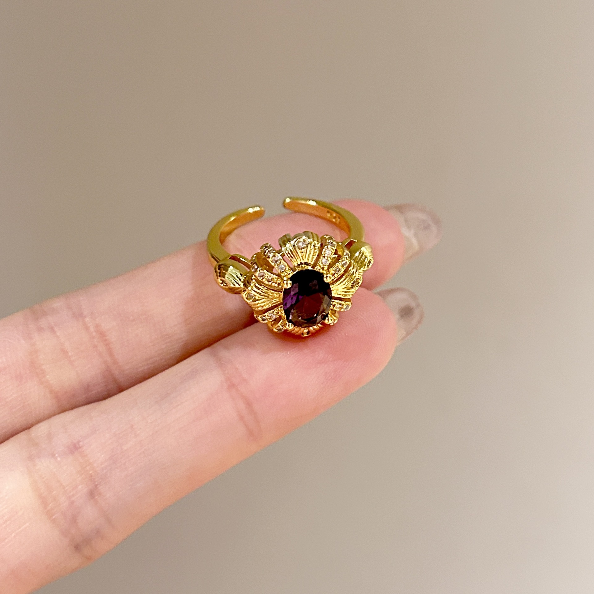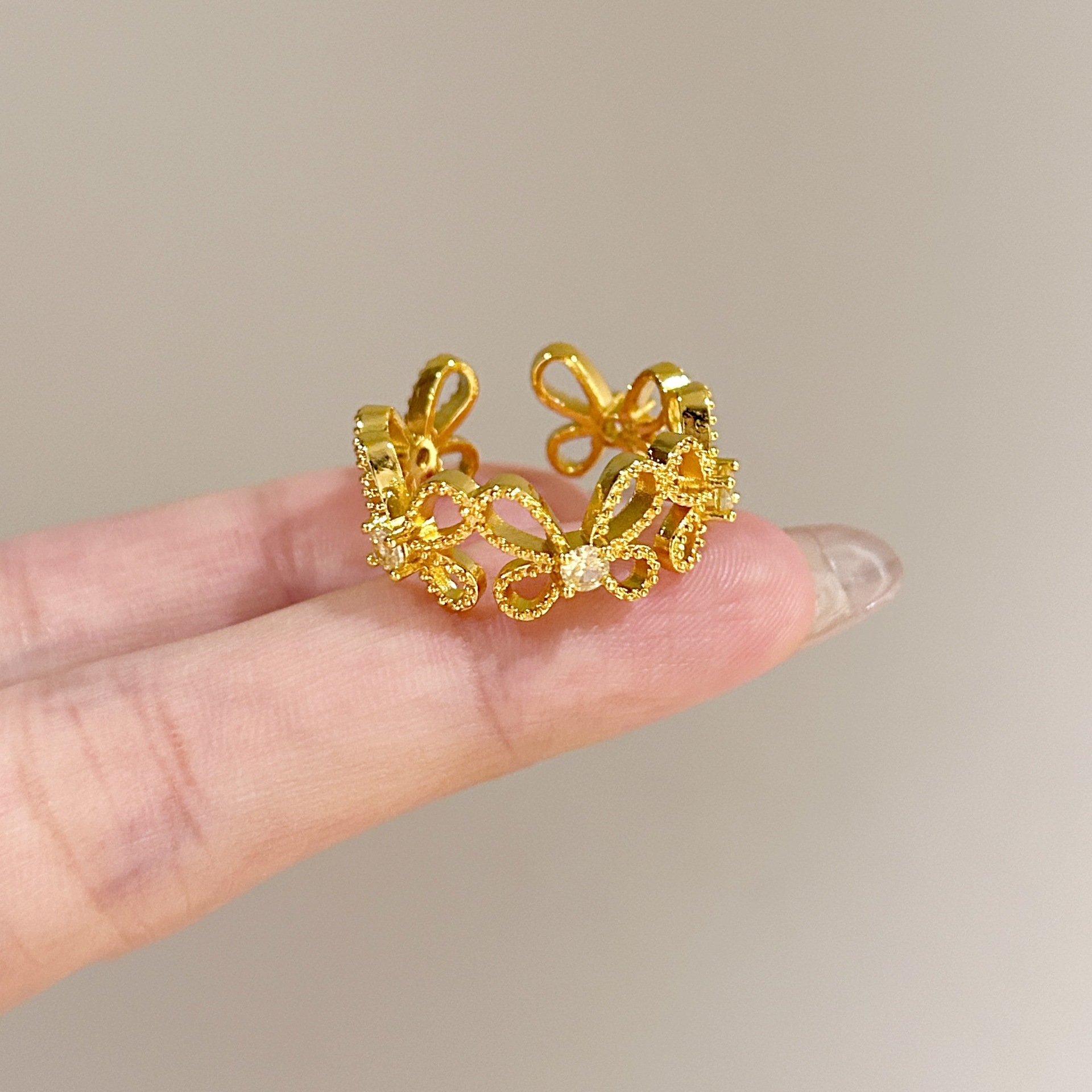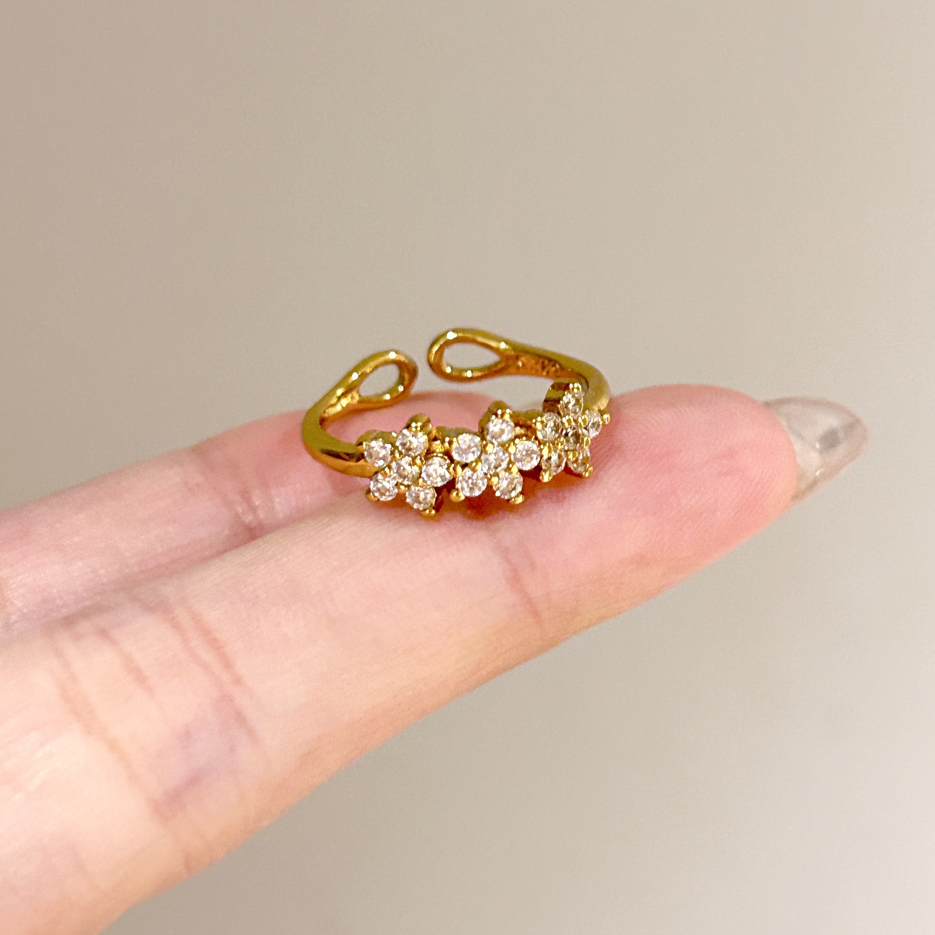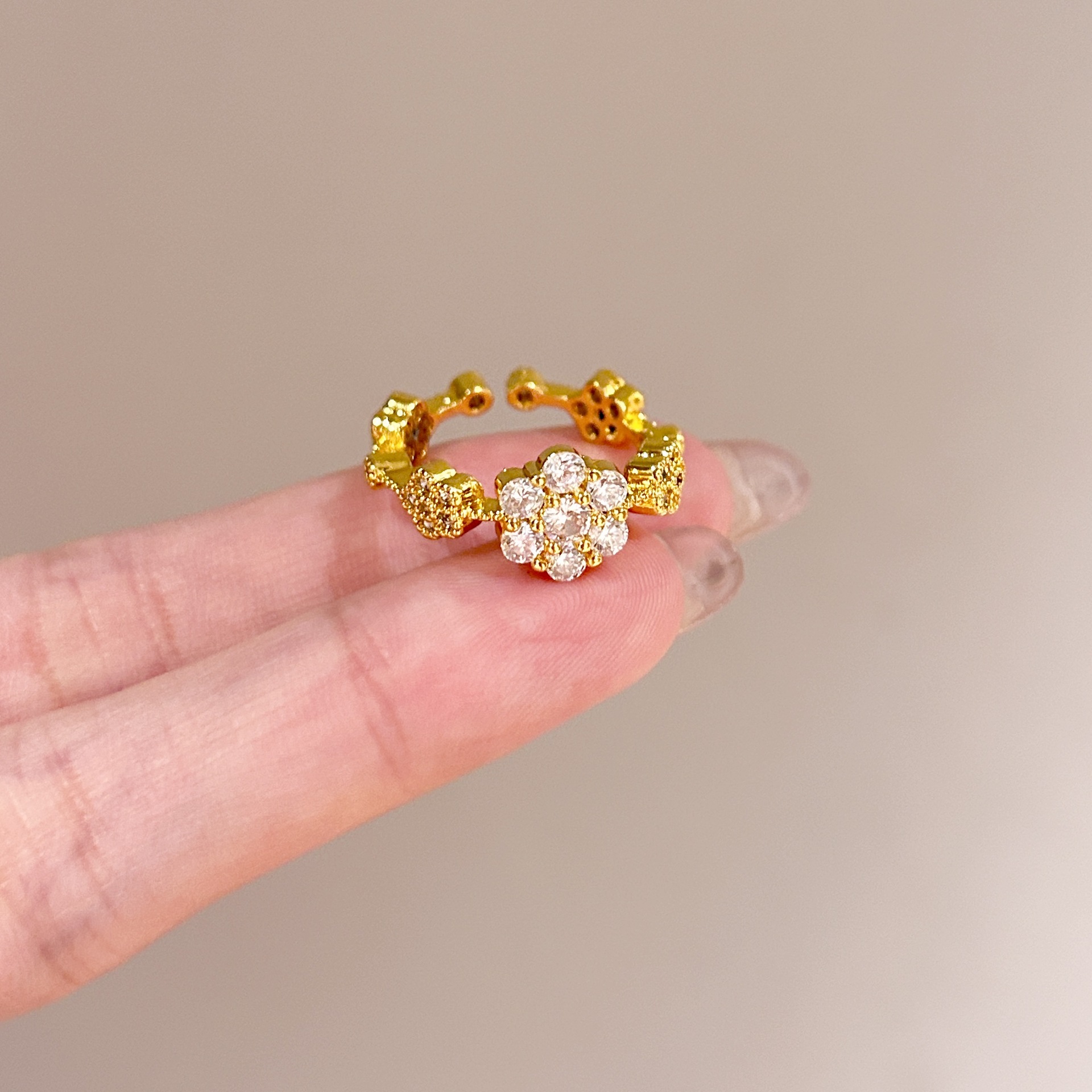 批发中古风拉丝镶钻锆石戒指女不掉色轻奢百搭开口食指戒新品手饰