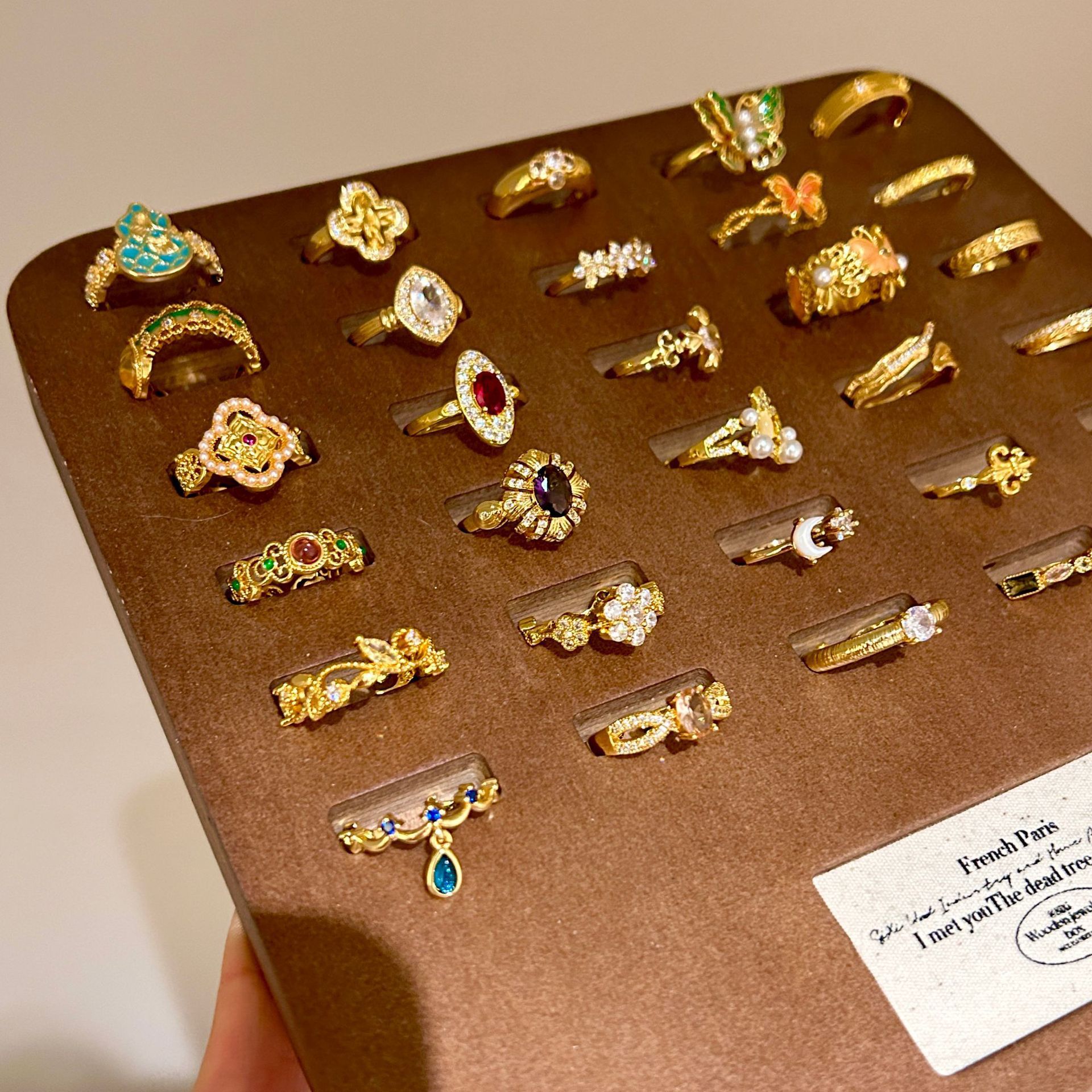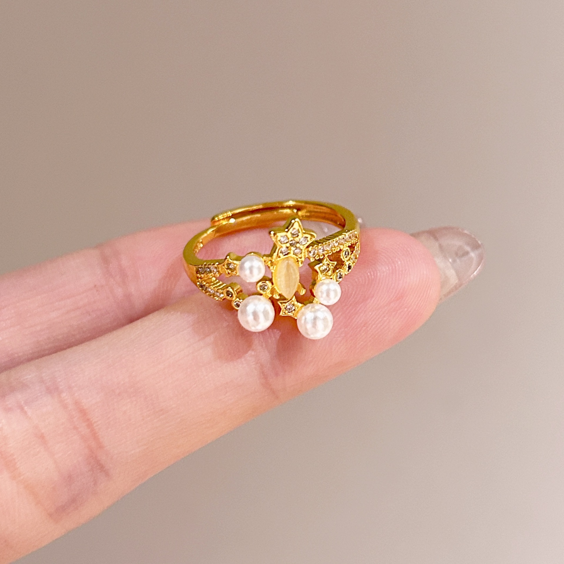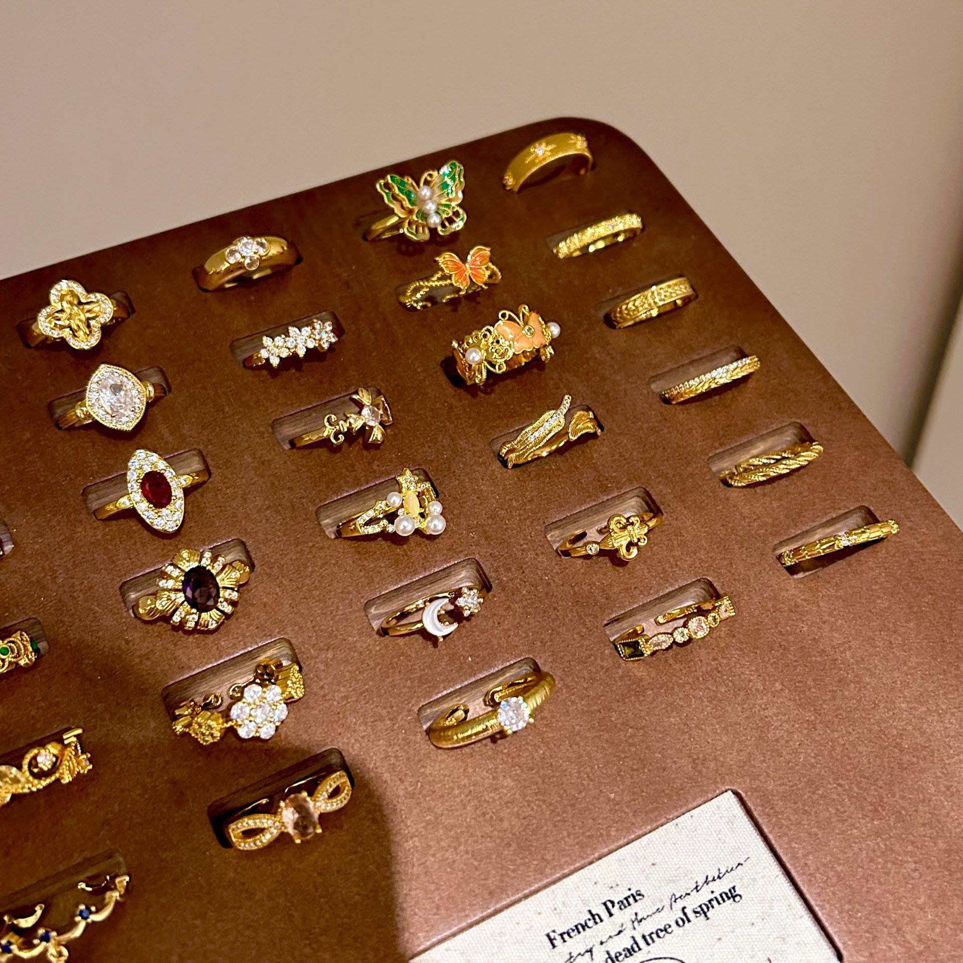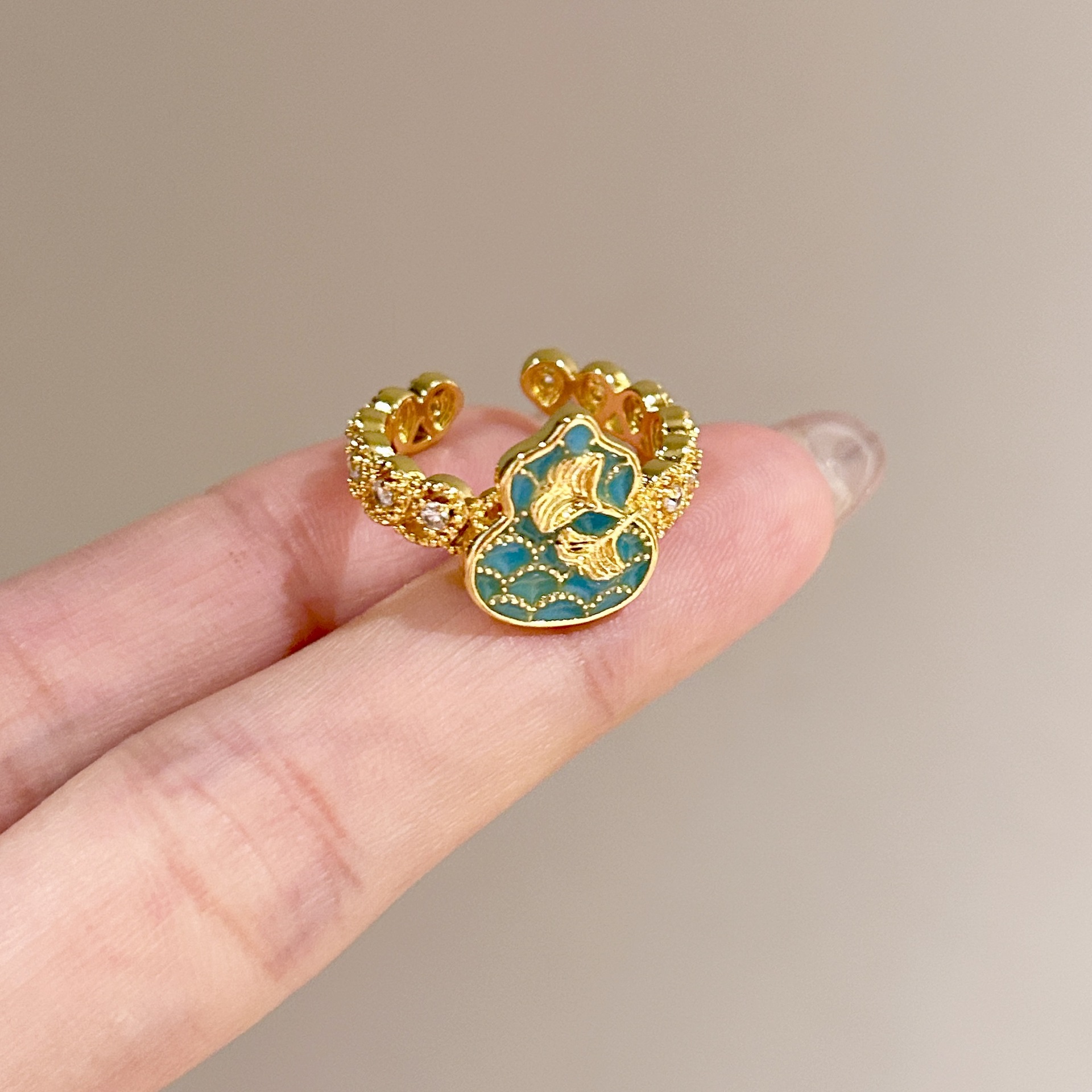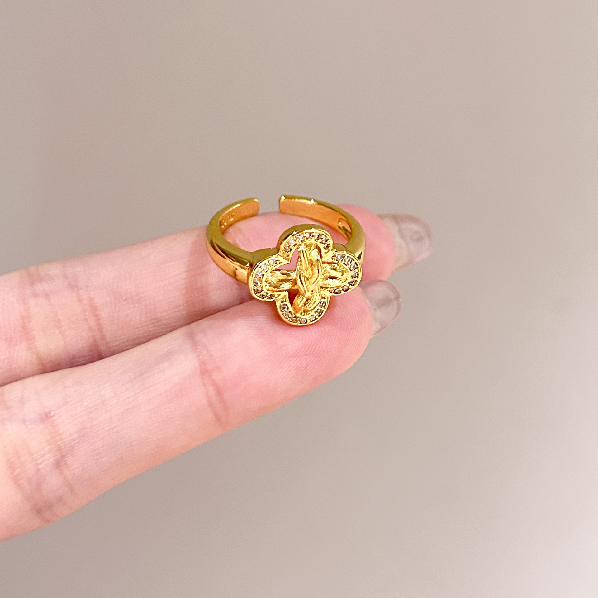 批发中古风拉丝镶钻锆石戒指女不掉色轻奢百搭开口食指戒新品手饰