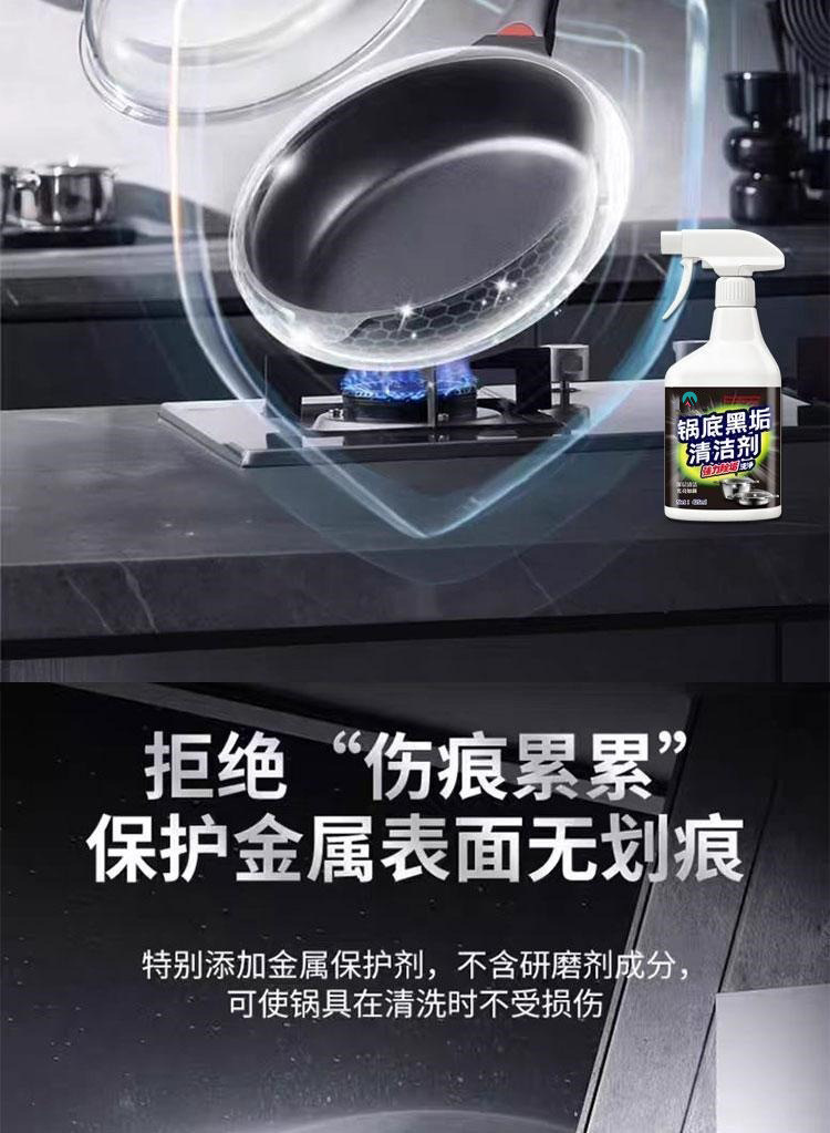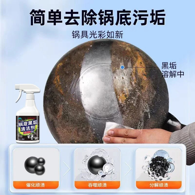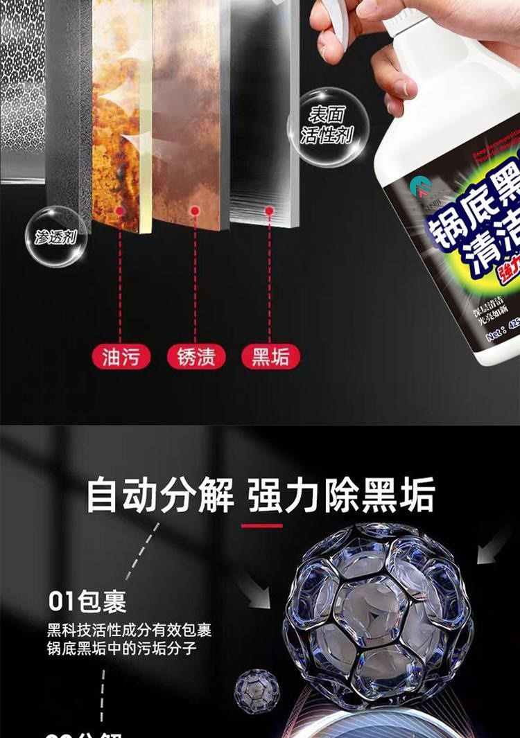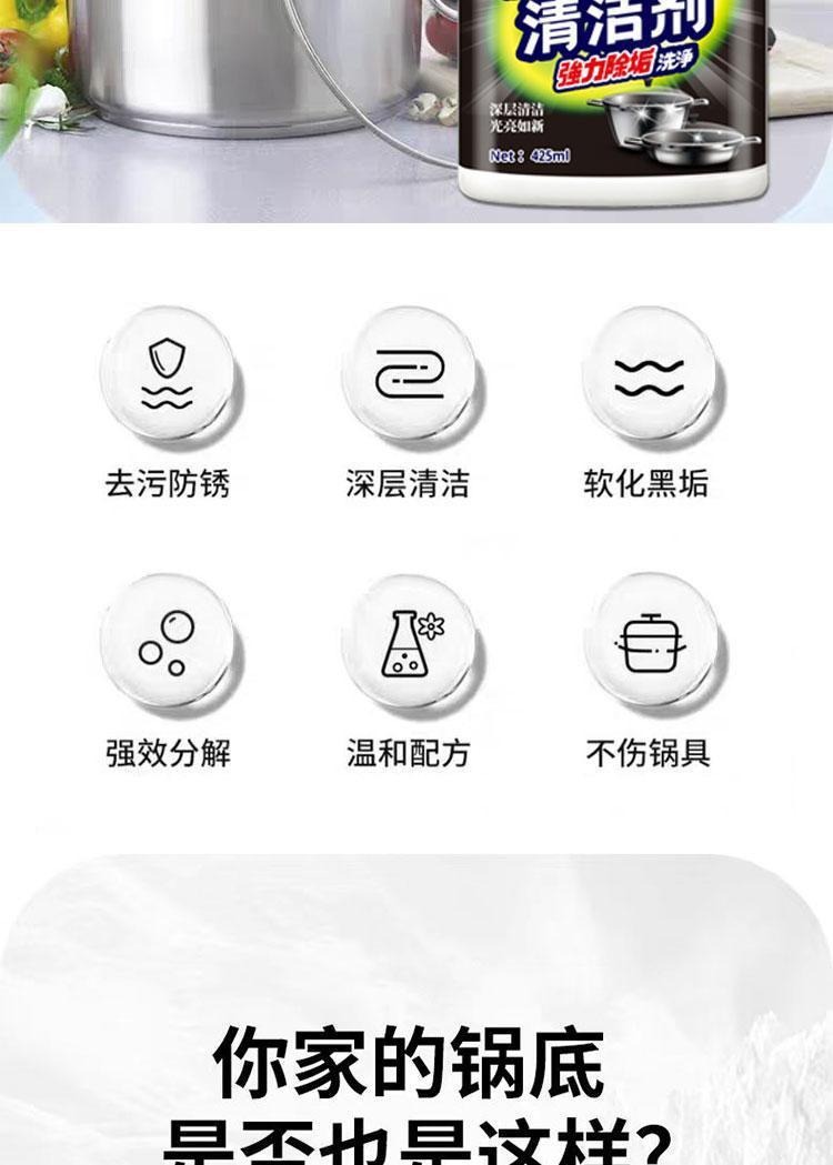 洗锅黑垢不锈钢清洁剂厨房油污强力去污清洗锅底除锈污渍去除烧痕