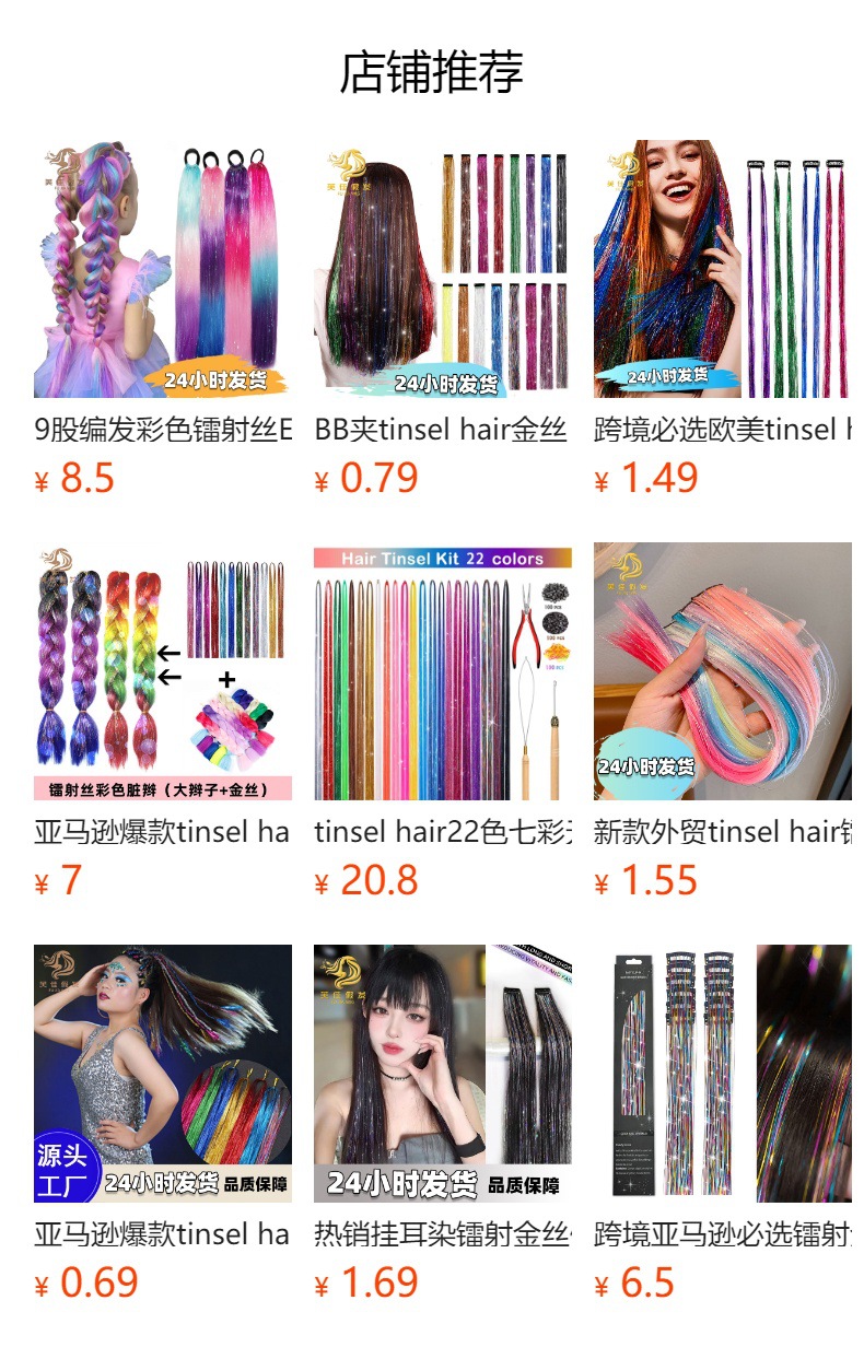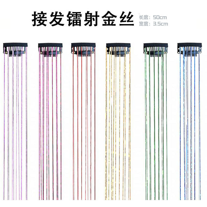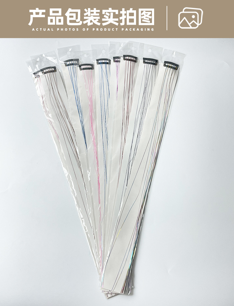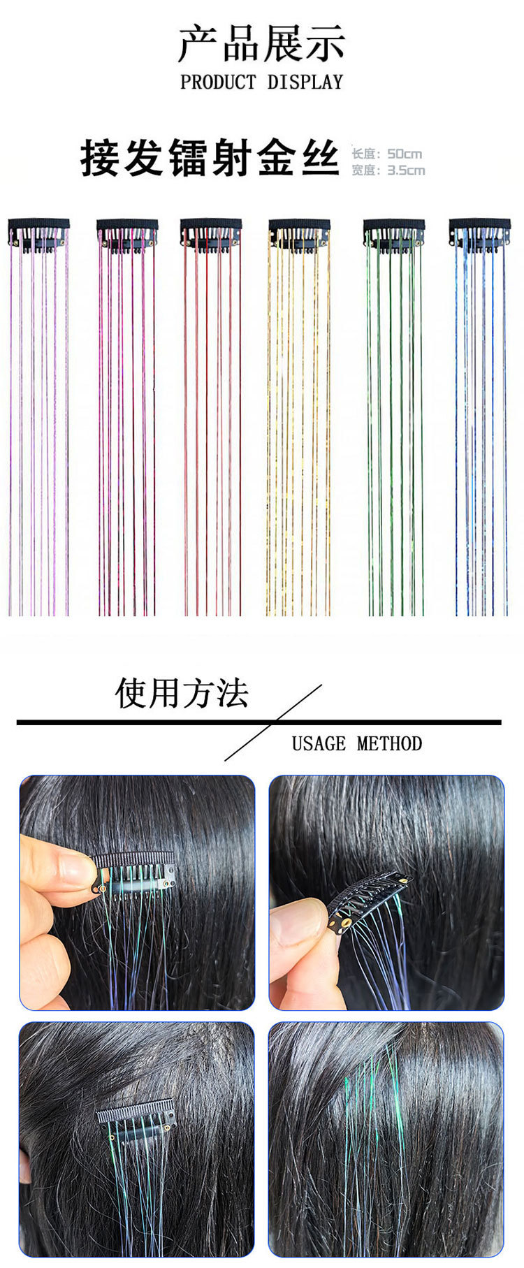 跨境亚马逊必选镭射金丝tinsel hair七彩接发金属丝源头厂家PET丝