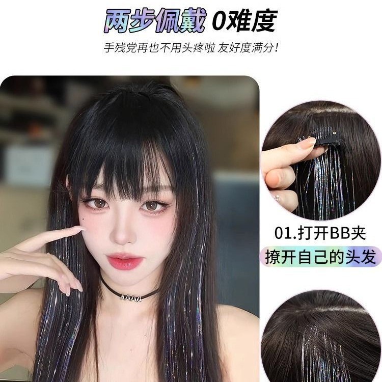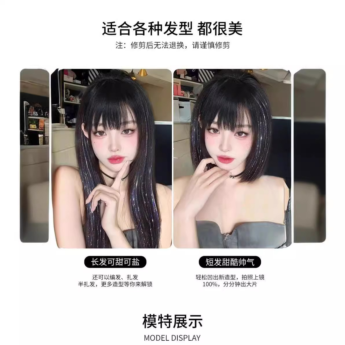 镭射挂耳染假发片无痕接发神器女团音乐节舞台一片式彩色头饰贴片