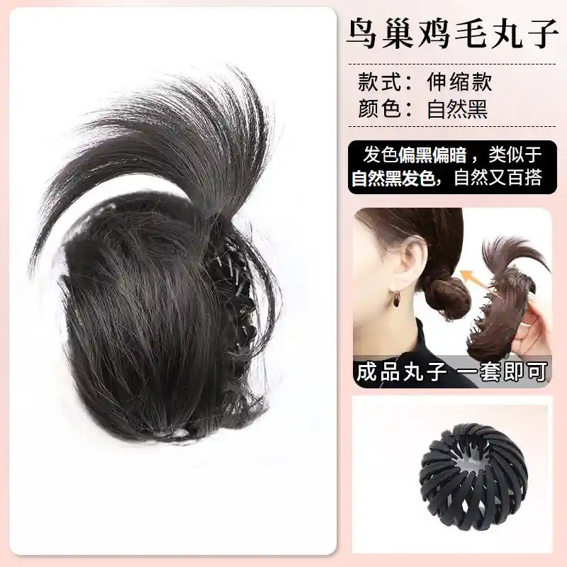 bird's nest straight hair ring bun [natural black]](鸟巢直发圈丸子头【自然黑】) USD $0.87 8979 piece available