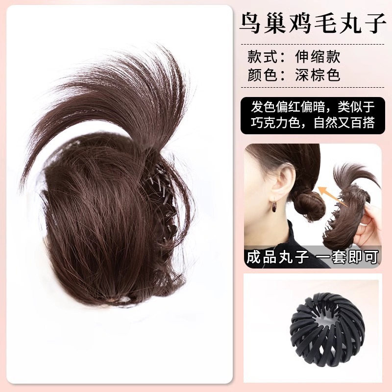 bird's nest straight hair ring bun [brown black]](鸟巢直发圈丸子头【棕黑色】) USD $0.87 7378 piece available