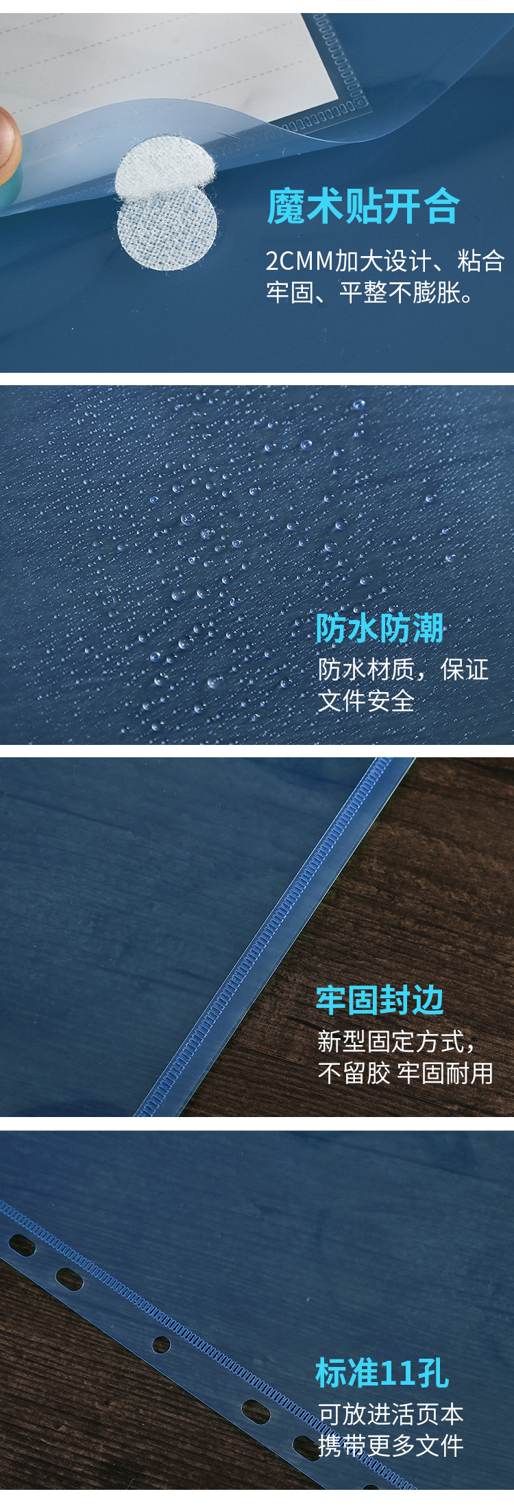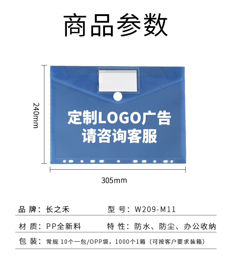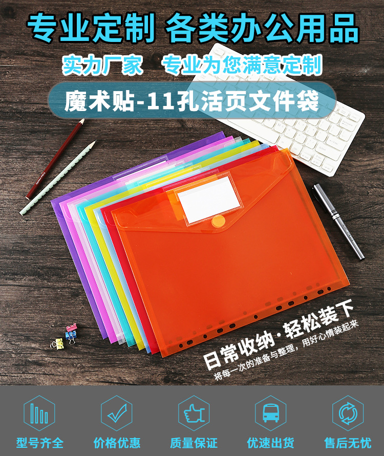 长之禾批发魔术贴11孔活页文件袋透明加厚定制广告logo资料文件夹