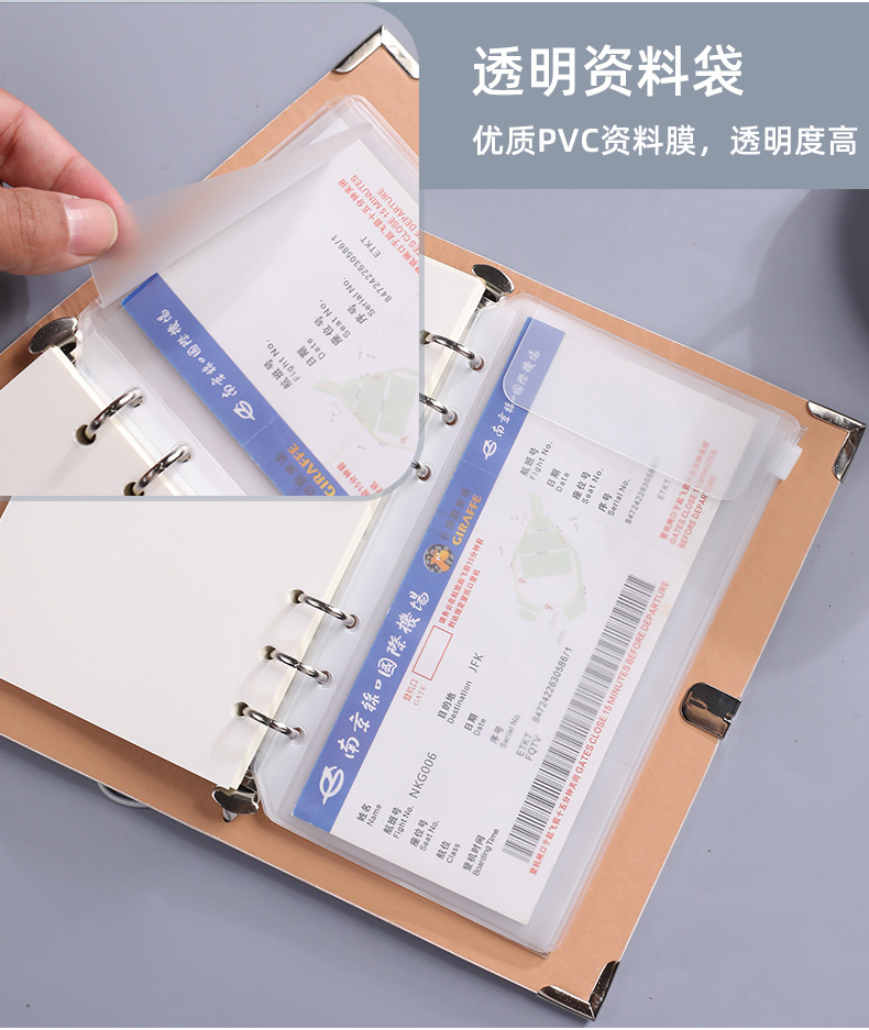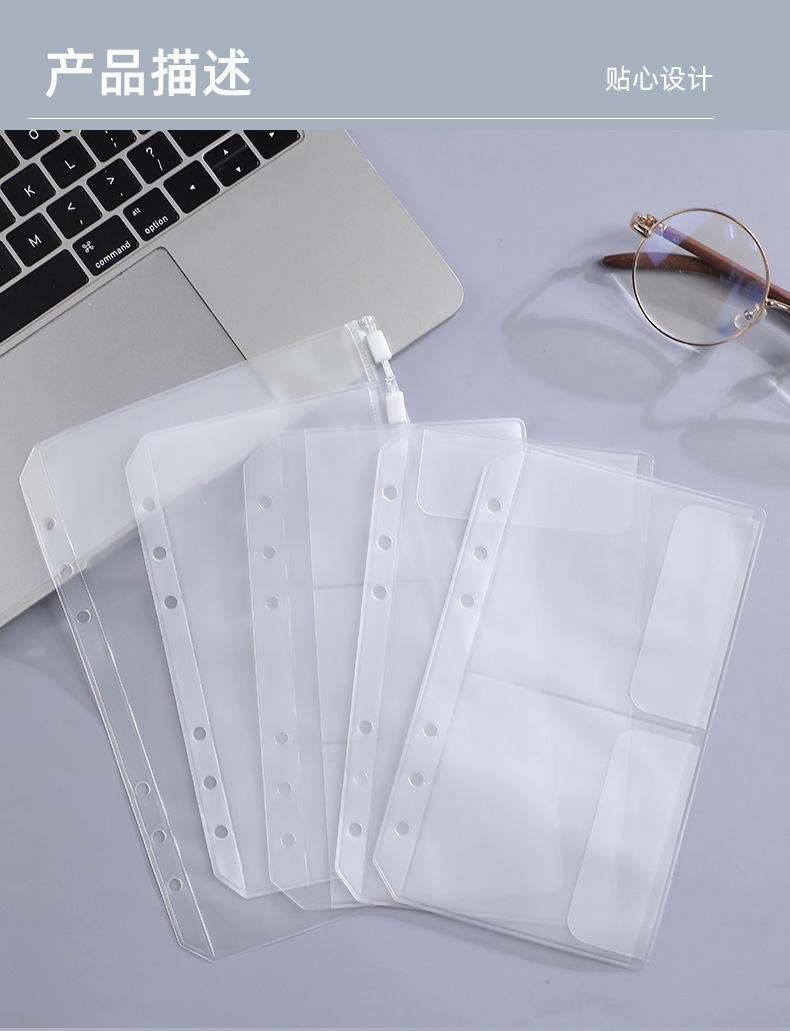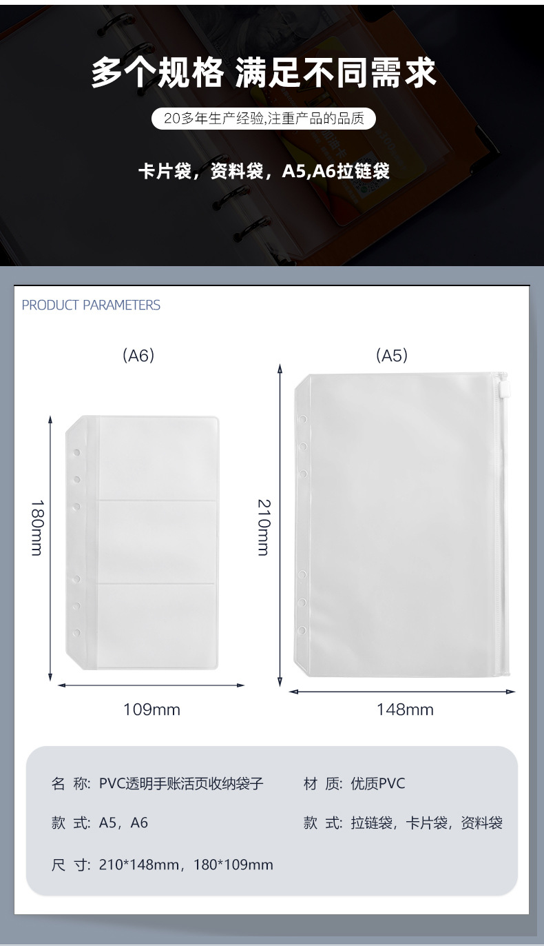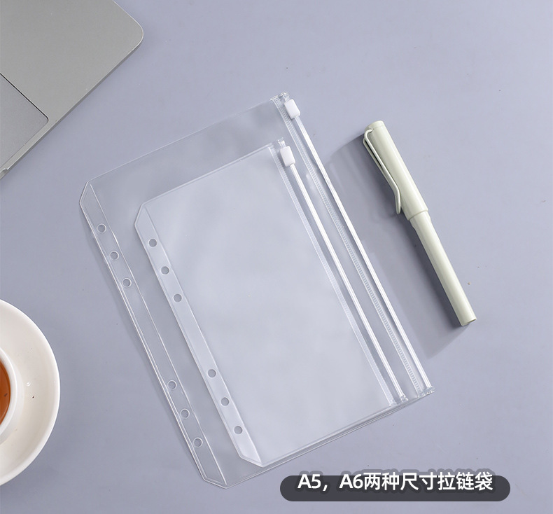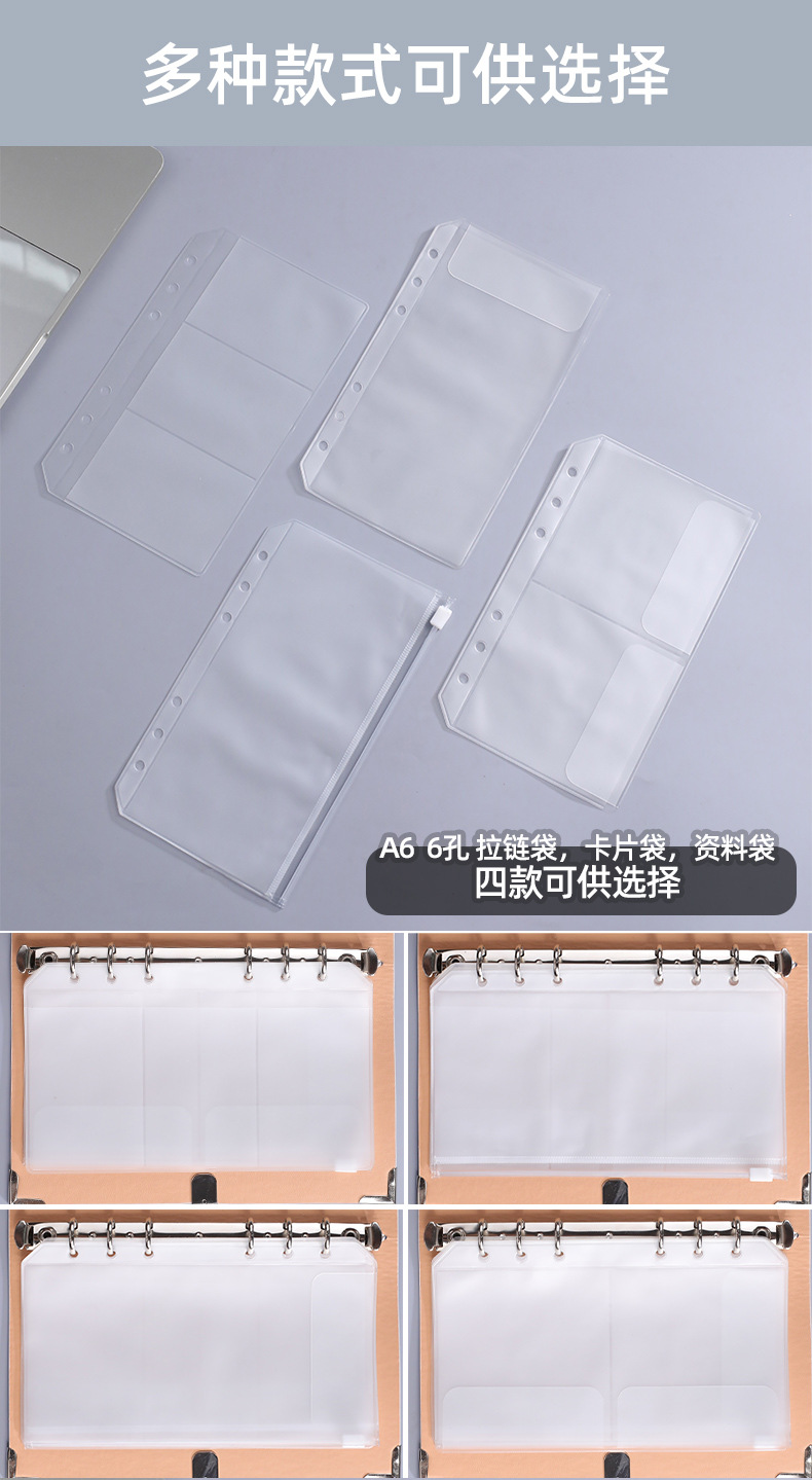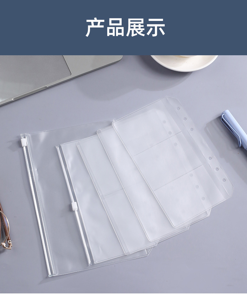 打孔文件夹a6活页袋a5拉边袋收纳票据配件资料透明拉链袋现货批发