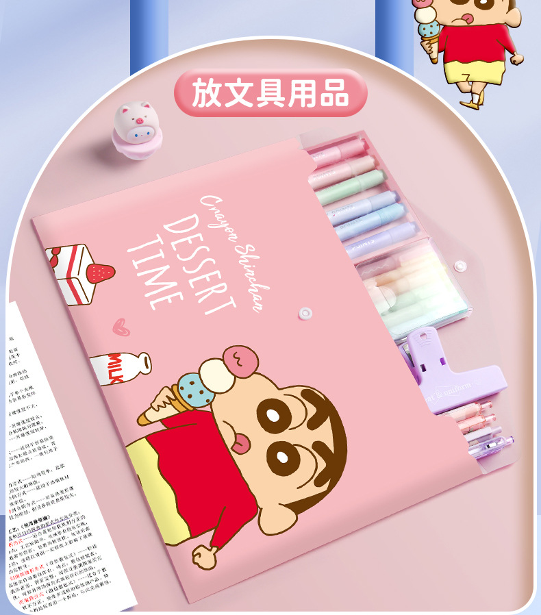 pp卡通蜡笔小新文件袋按扣款档案袋可爱卡通多功能文件夹收纳袋