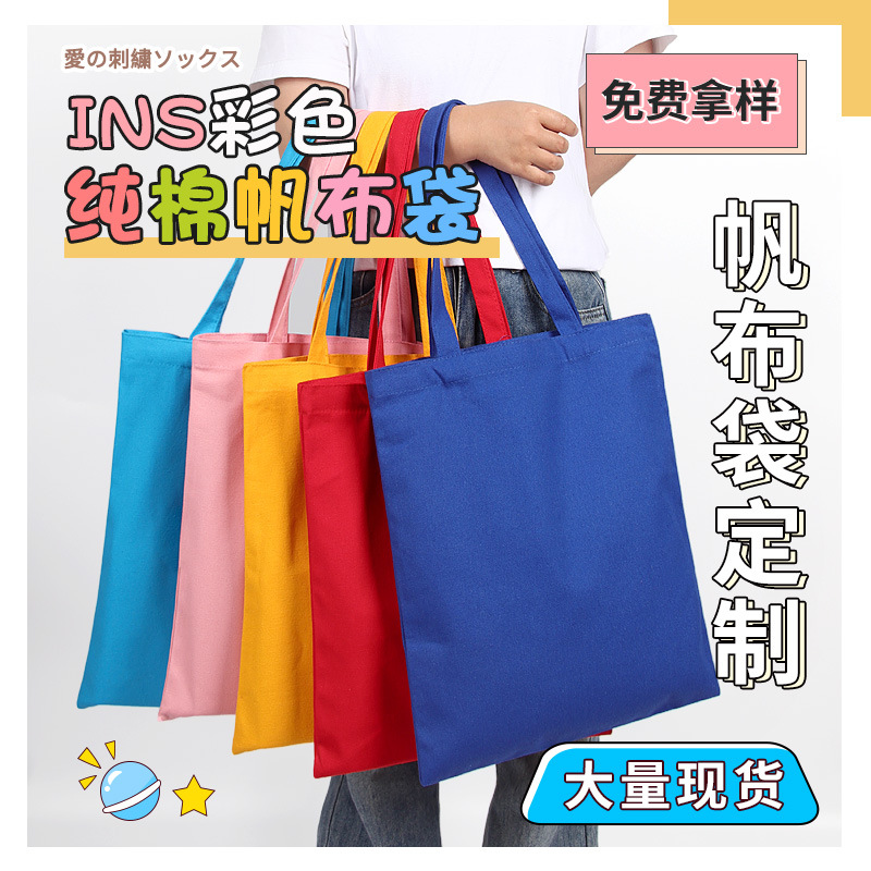 批发空白现货纯棉白色帆布包 diy手绘环保彩色手提购物红色帆布袋