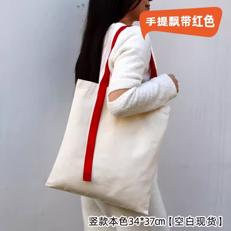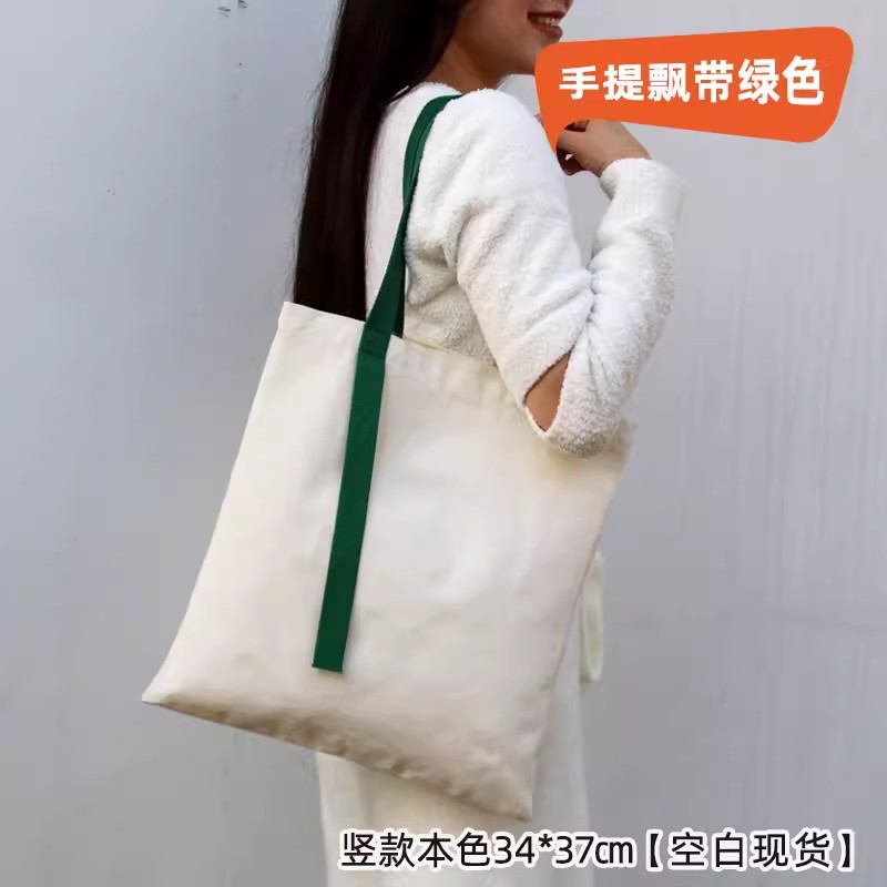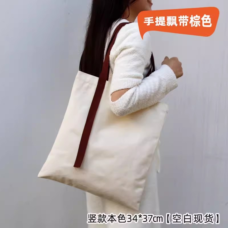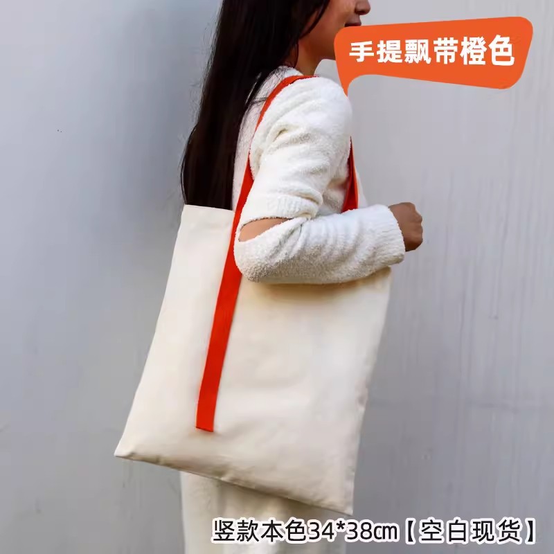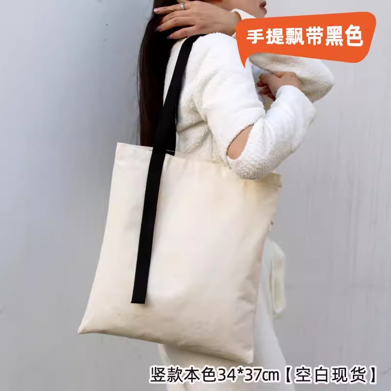 厂家帆布袋定 制帆布包空白diy棉布袋竖款白米色定 做印LOGO简约