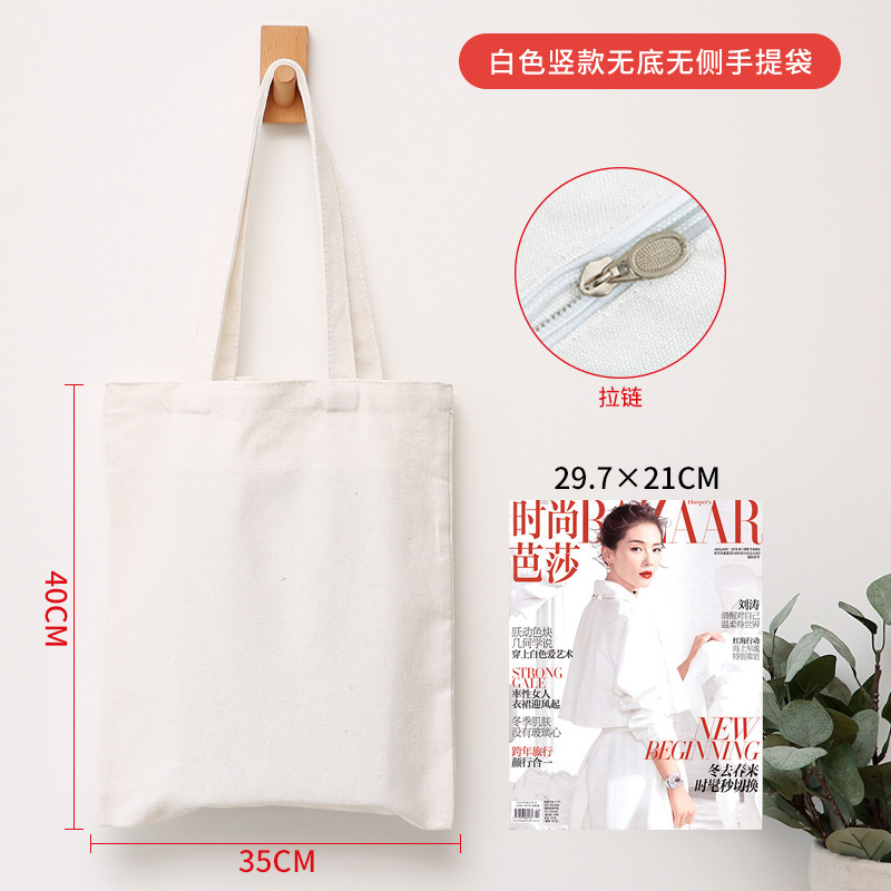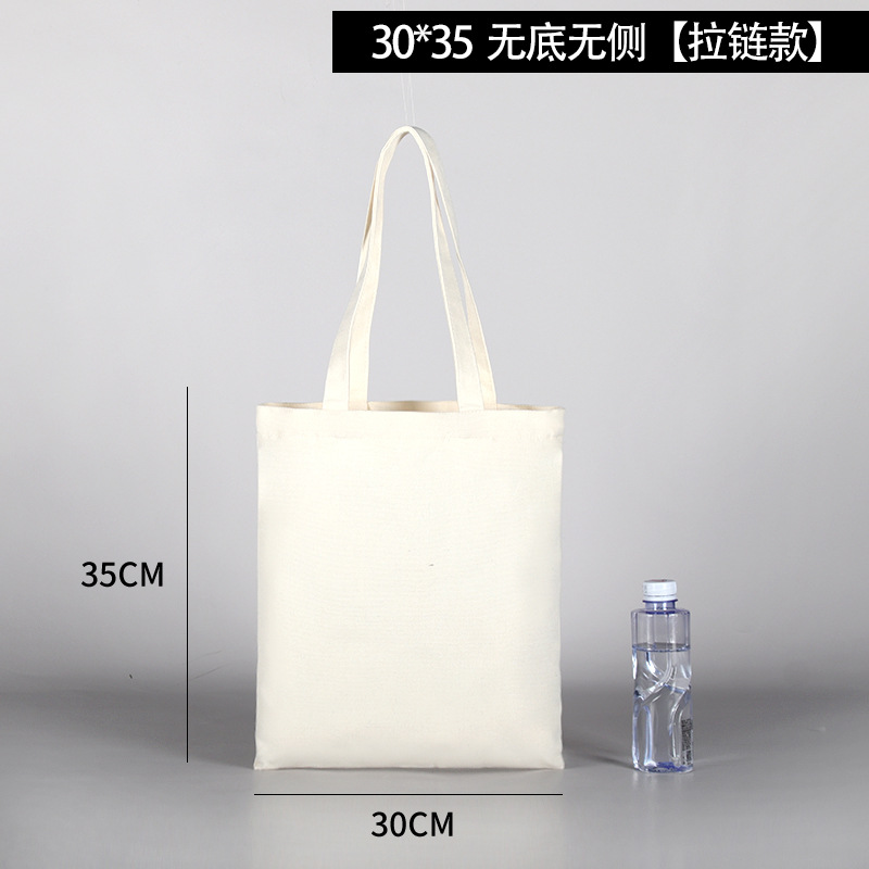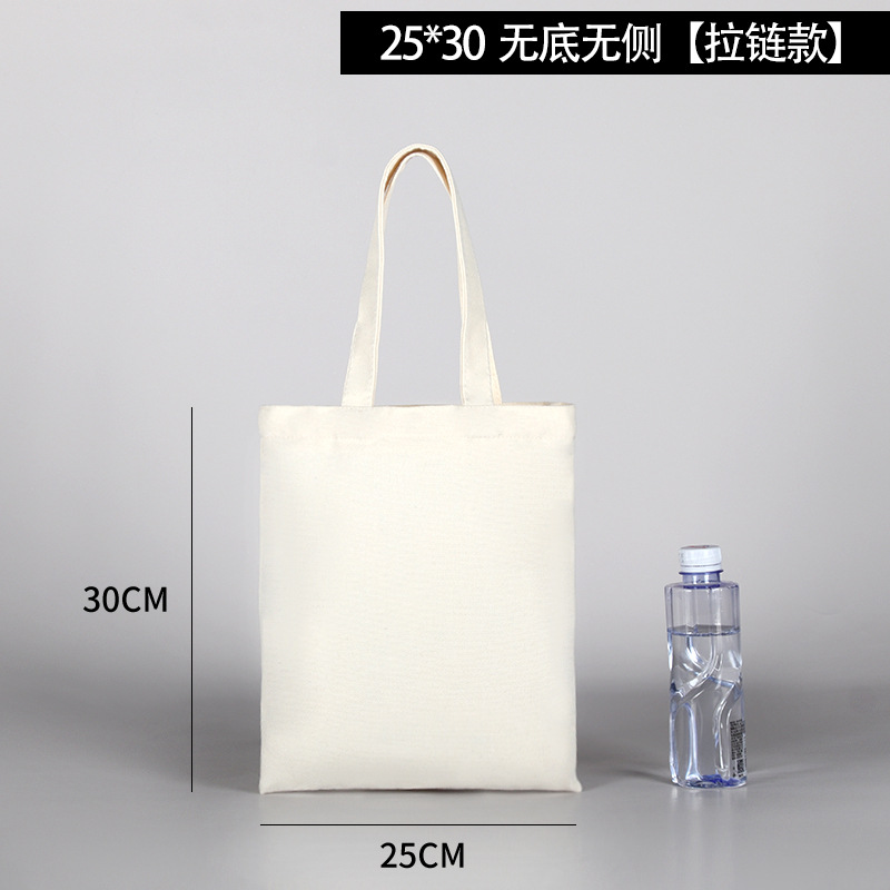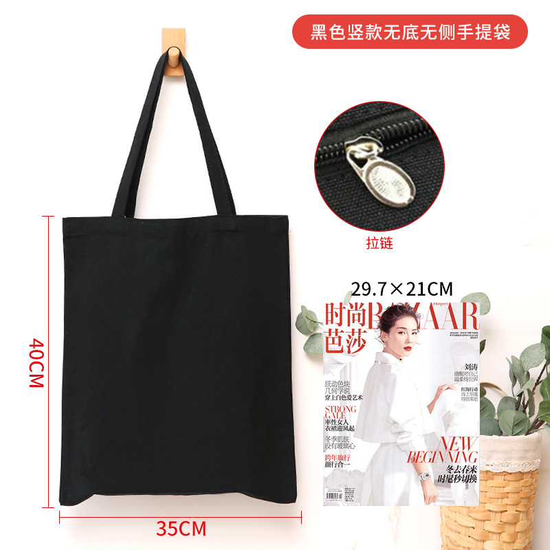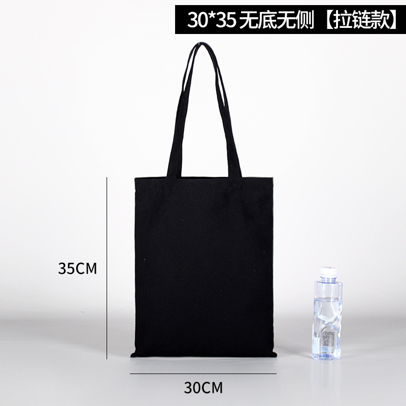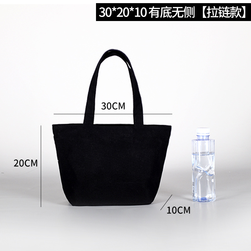 加厚黑色手提空白带拉链帆布袋 现货学生批发帆布包印花logo图案