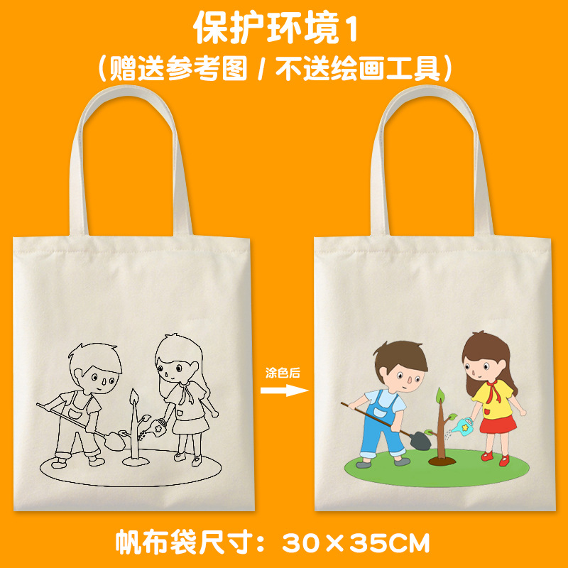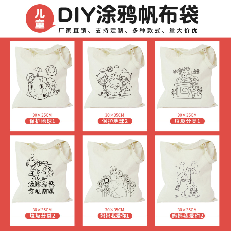 六一儿童节帆布袋diy手提袋绘画涂鸦填色幼儿园学校活动帆布包