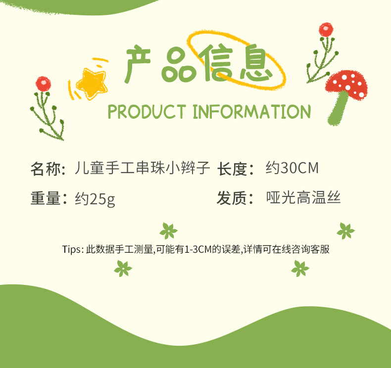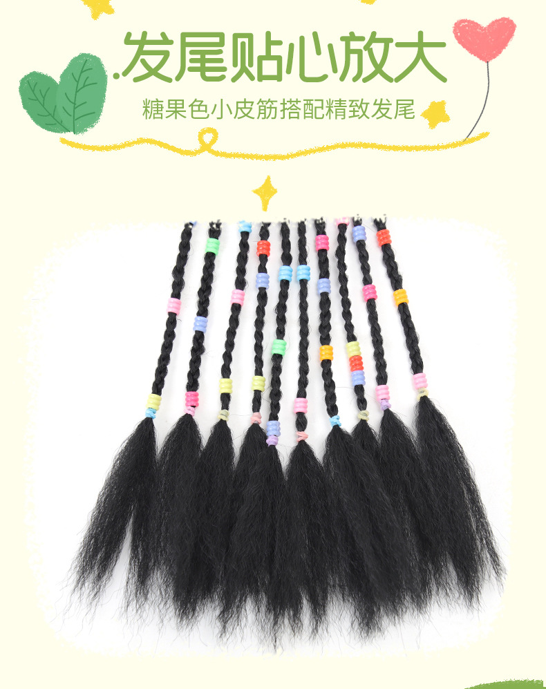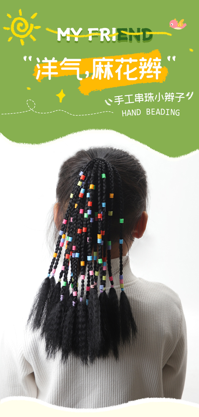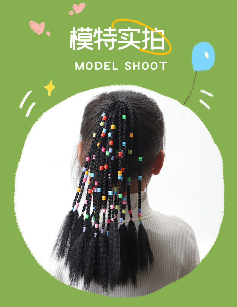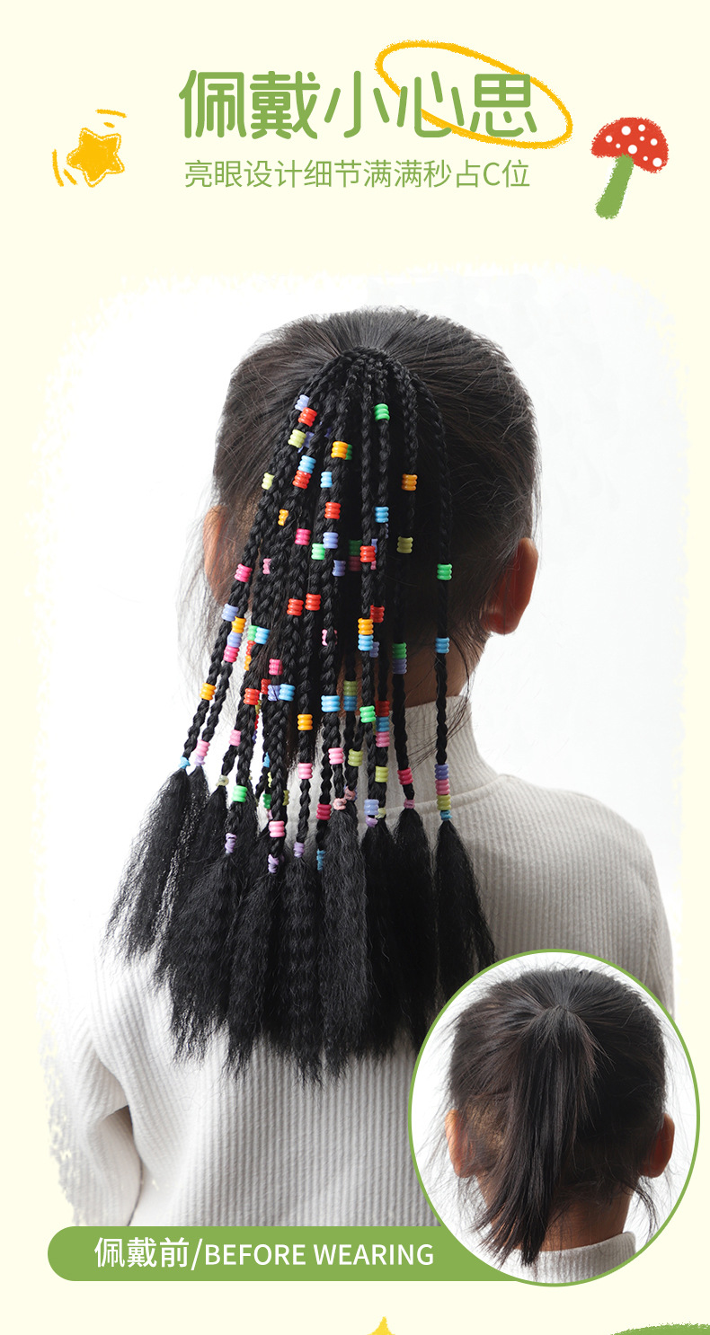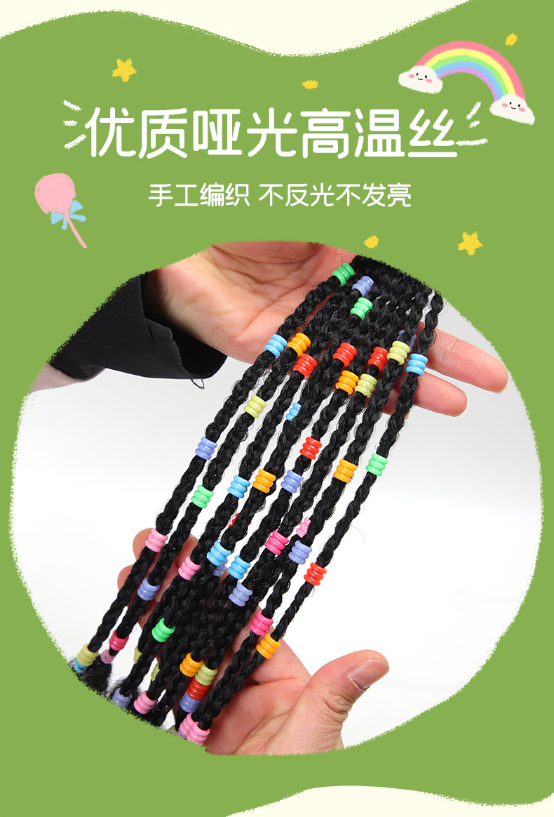 女童手工串珠小辫子高马尾发绳头绳甜酷俏皮彩珠脏脏辫假发辫发饰