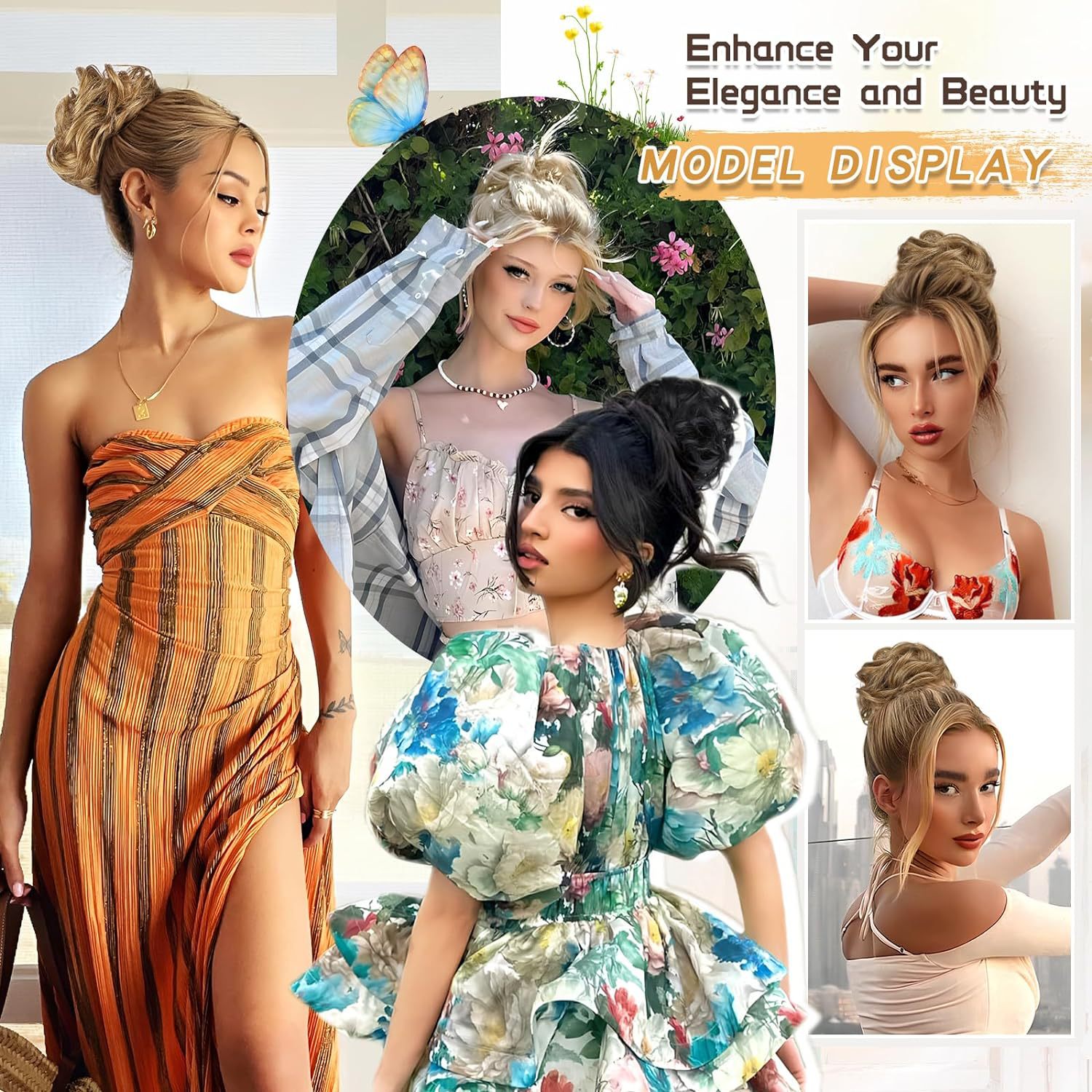 厂家现货 假发女弹力卷发圈蓬松丸子头盘发器仿真哑光花苞头发髻