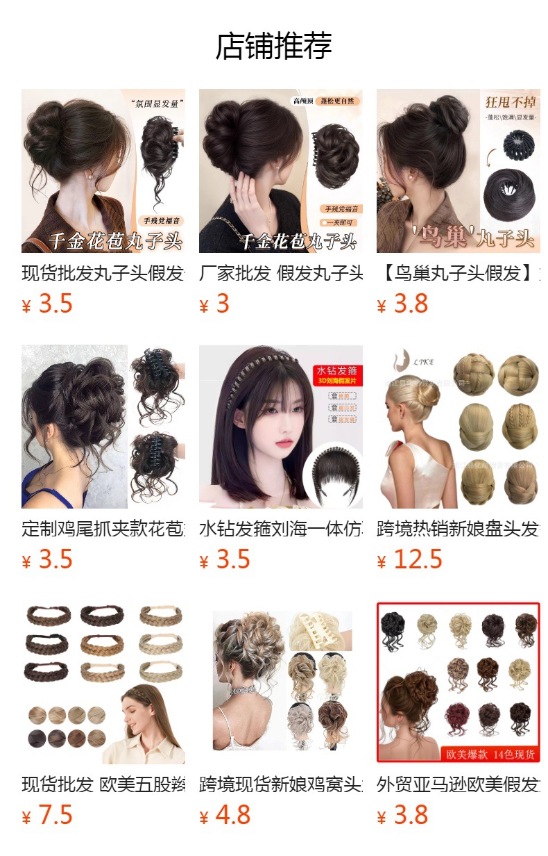 鸡窝丸子头假发发圈女辣妹蓬松抓夹式发包新款网红鲨鱼夹盘发神器