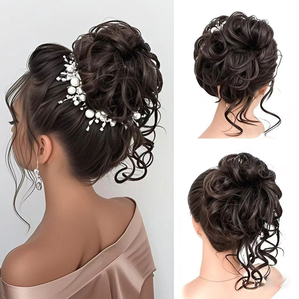 跨境现货新娘鸡窝头盘发器慵懒蓬松龙须卷发圈长须丸子头假发抓夹