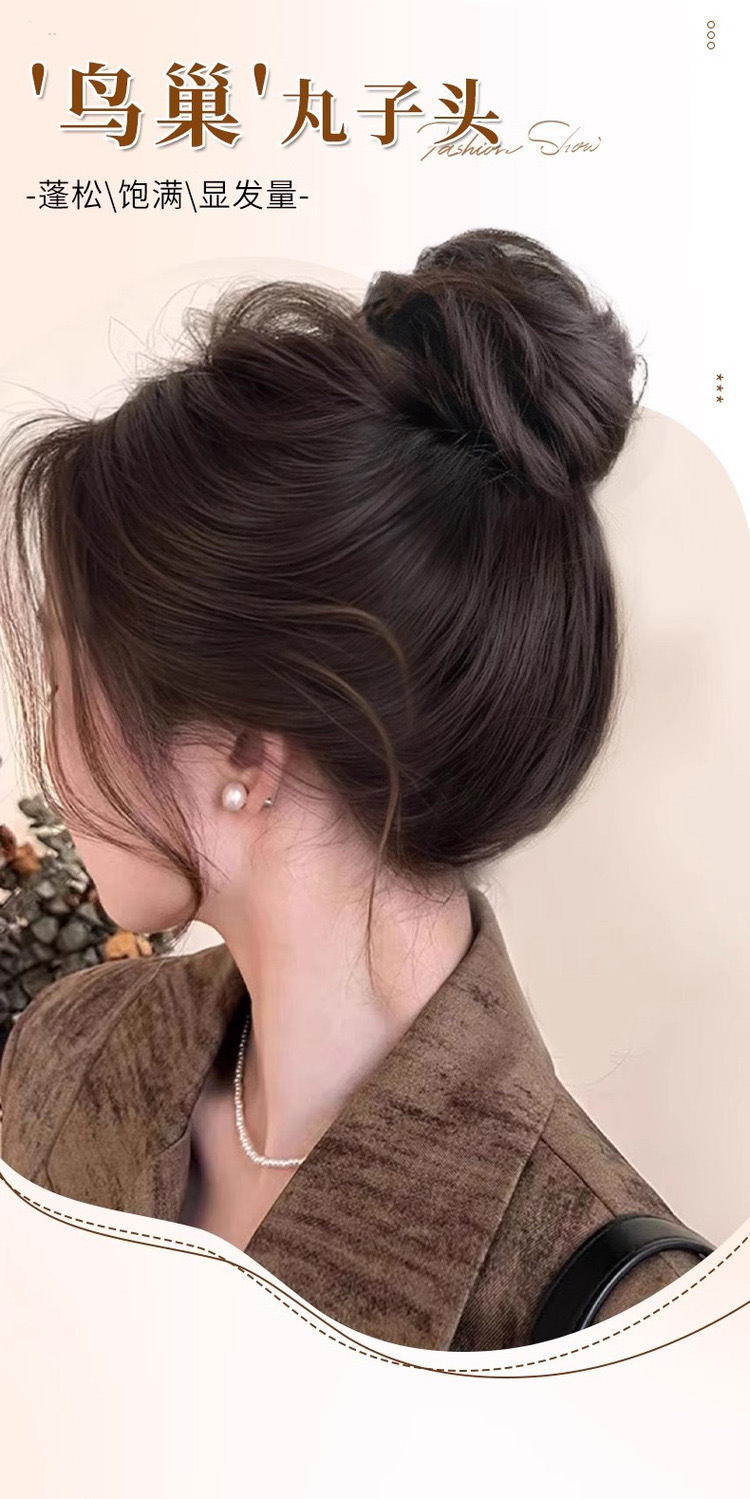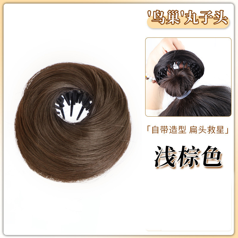 【鸟巢丸子头假发】丸子头慵懒发圈女随意收缩盘发神器仿真发假发