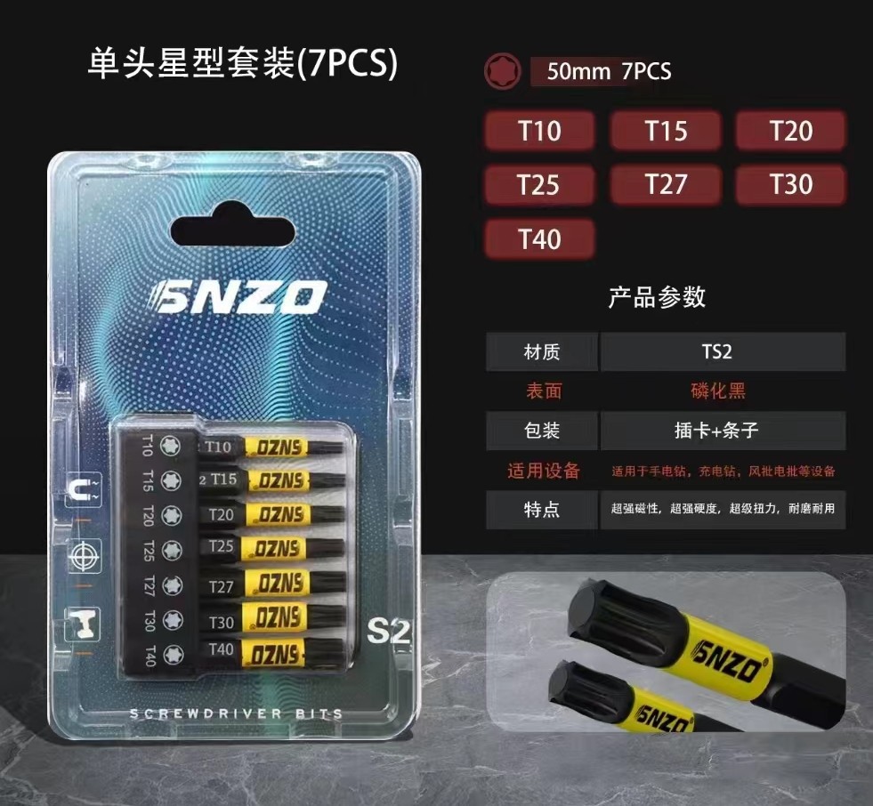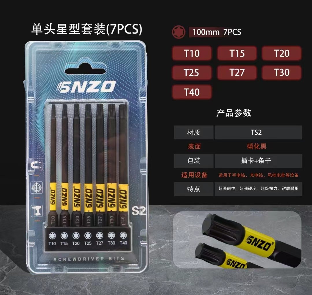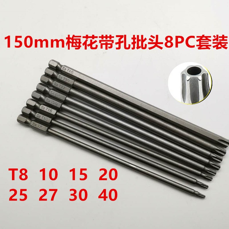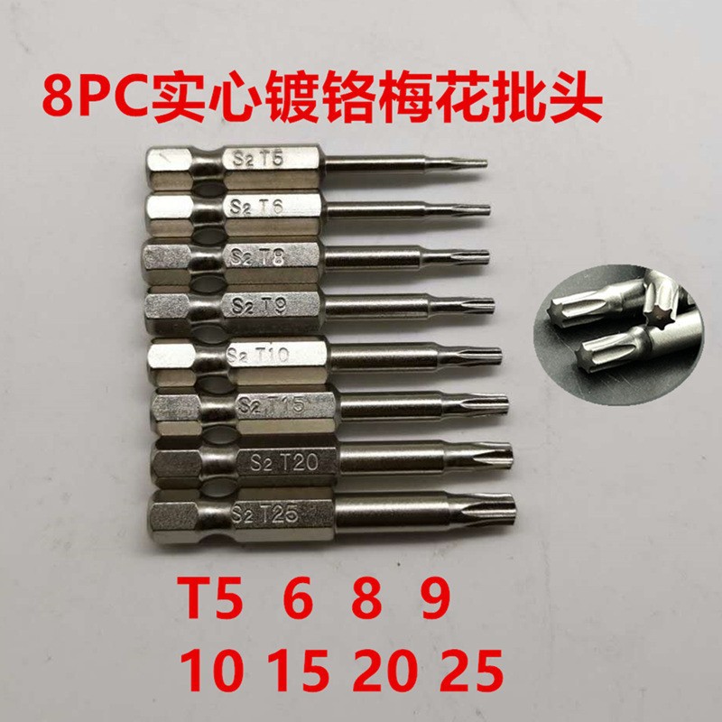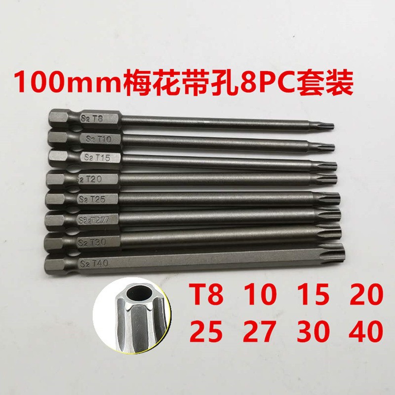 S2套装1/4梅花批头带孔带磁性手电钻电动螺丝机气动风批头