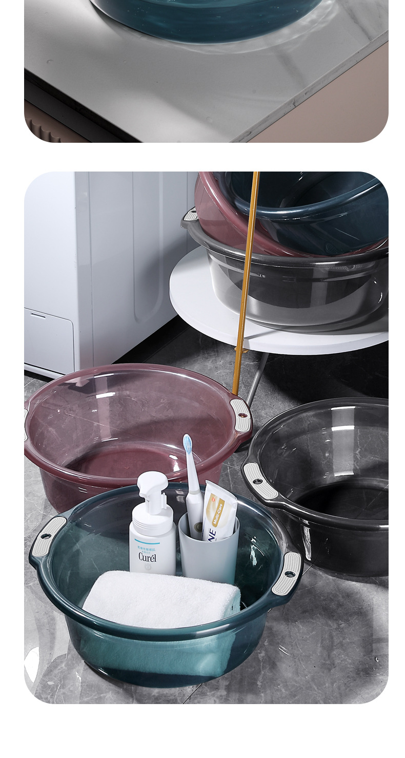家用脸盆浴室卫生间洗衣盆学生宿舍大号透明防滑双耳加厚洗脸盆