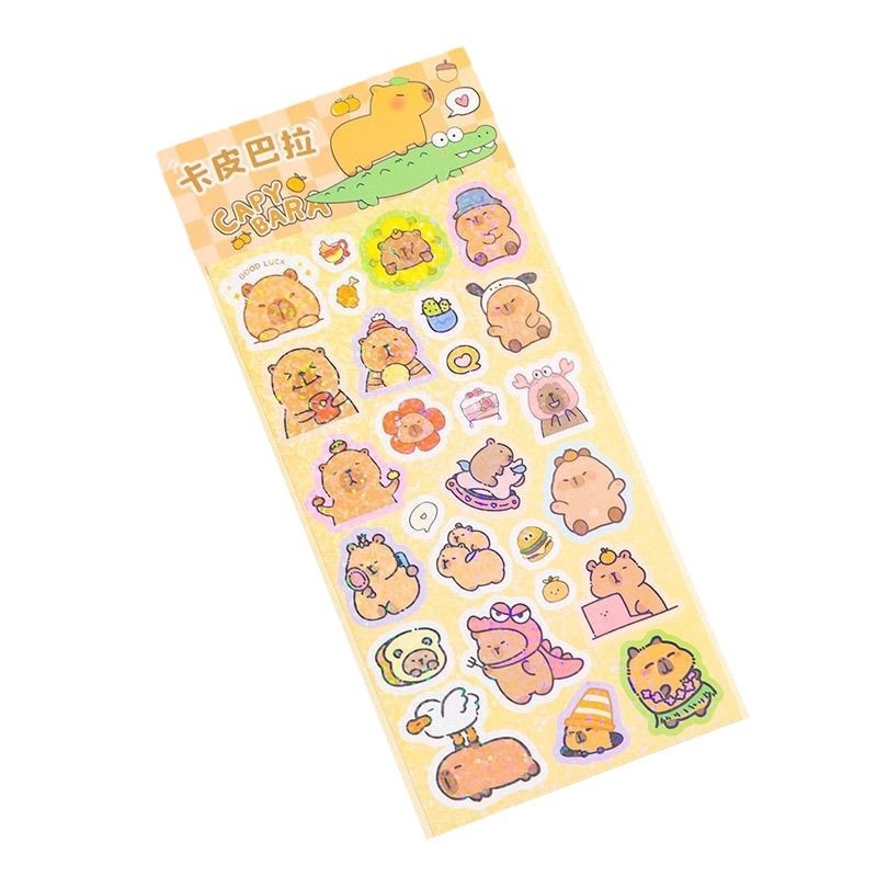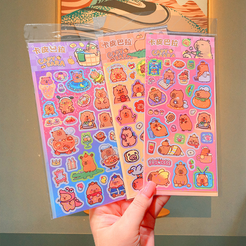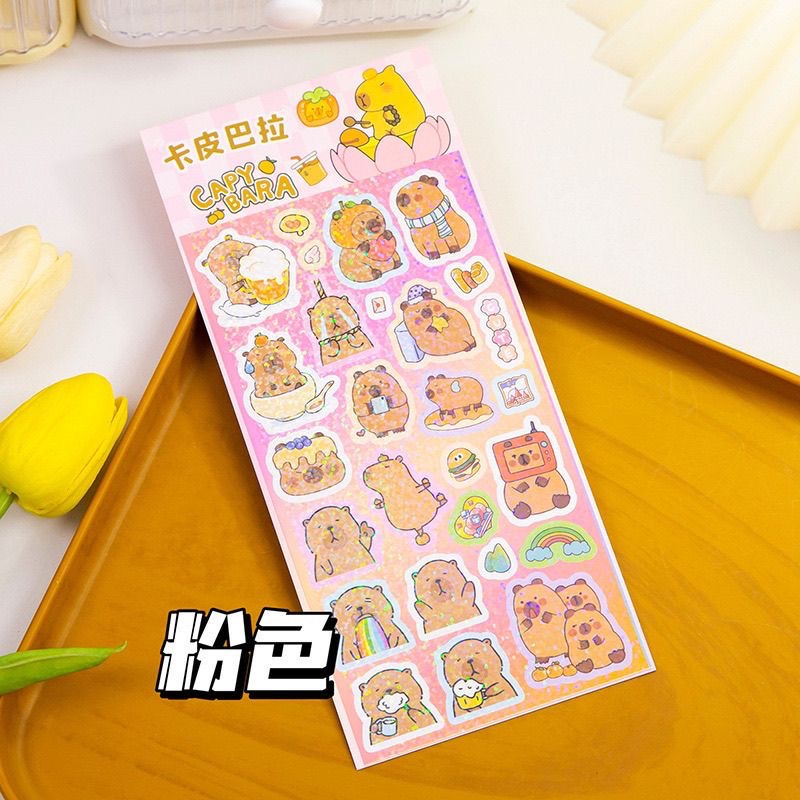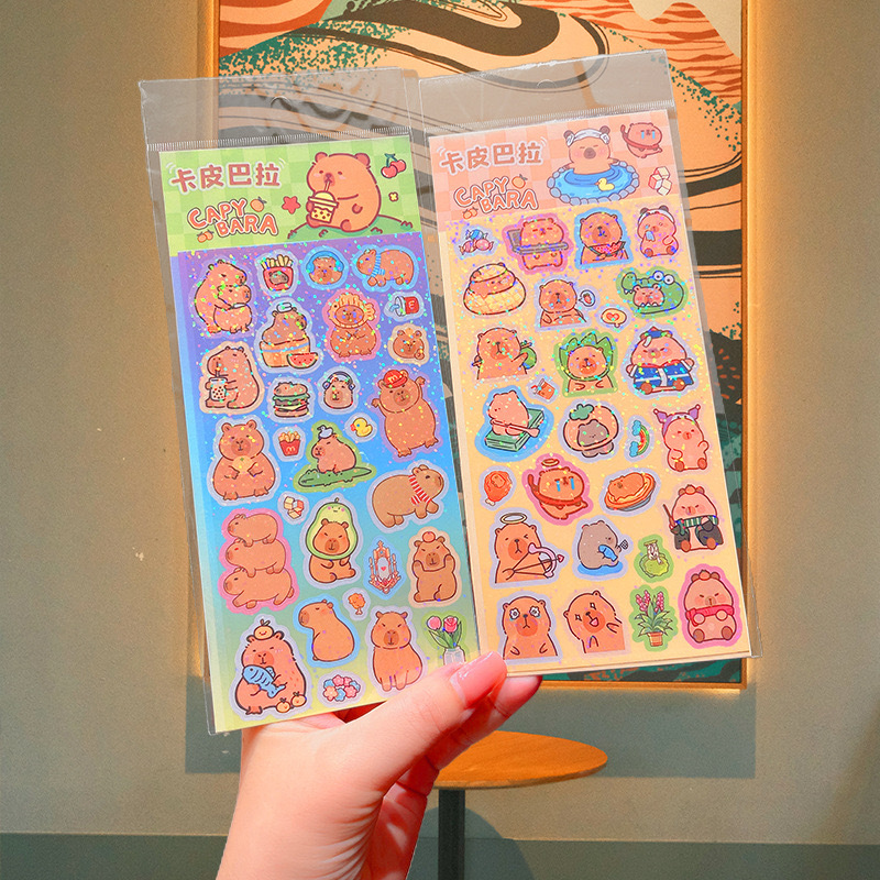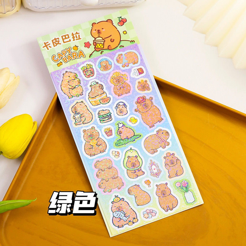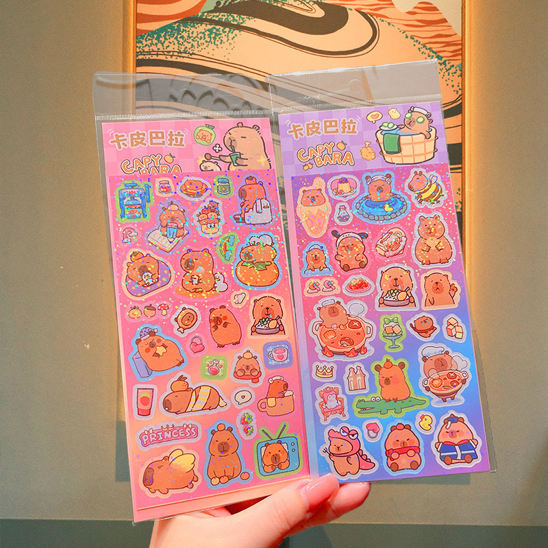卡皮巴拉贴纸创意镭射咕卡手帐贴纸卡通水豚贴画儿童DIY装饰粘贴