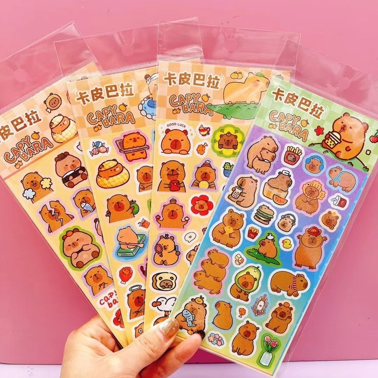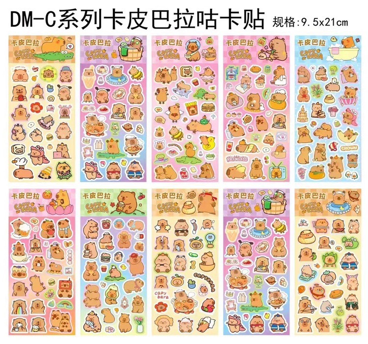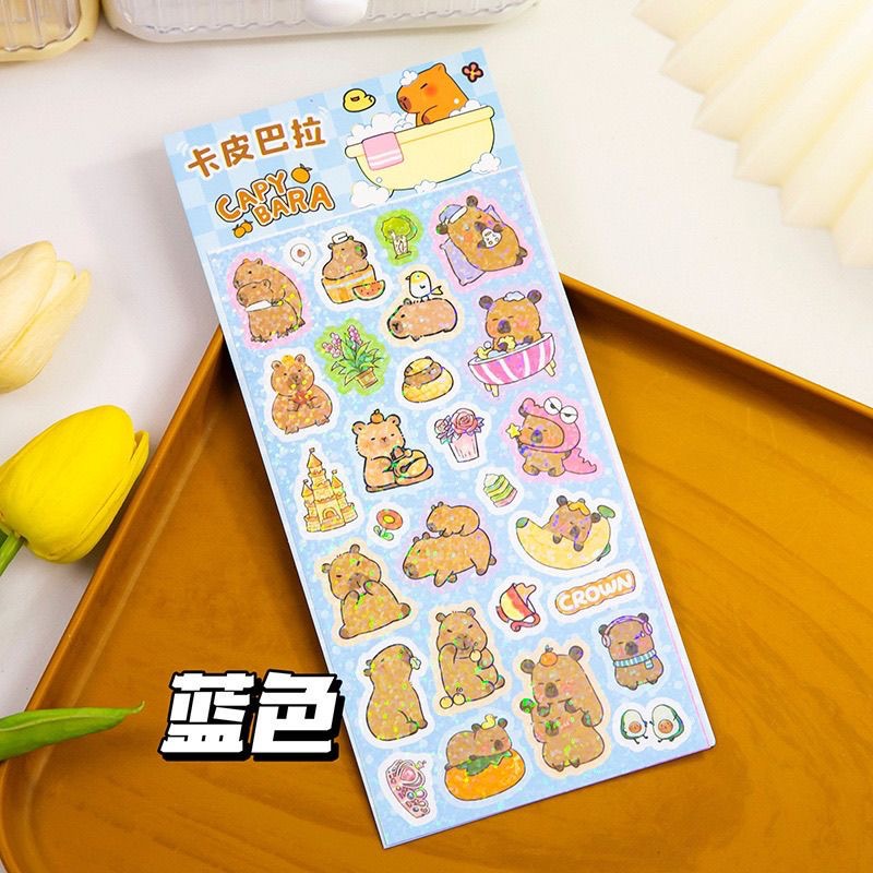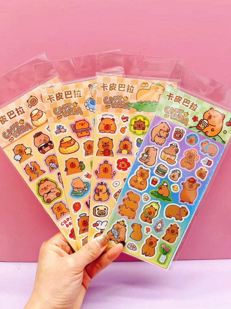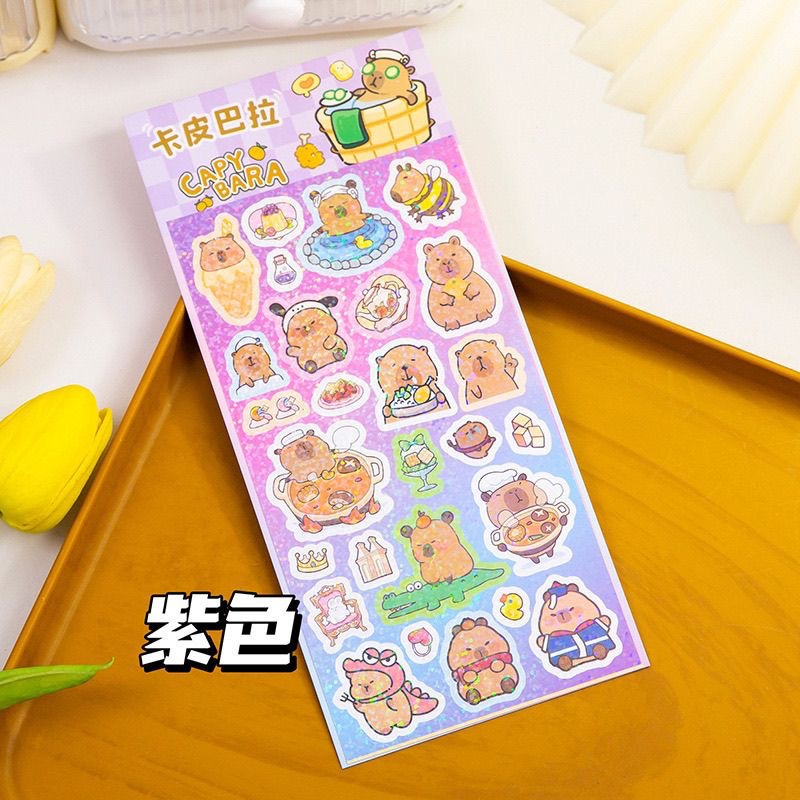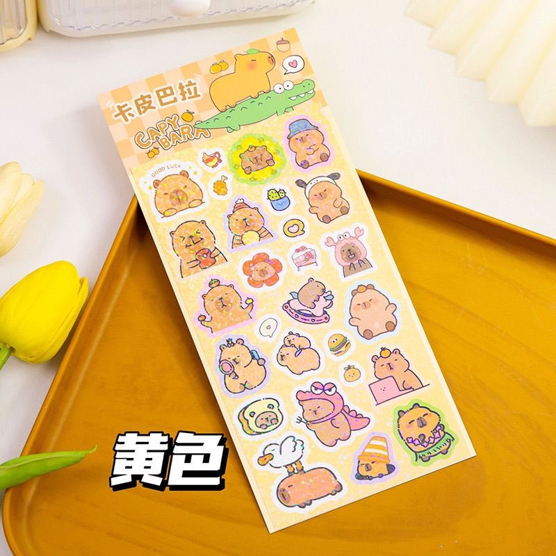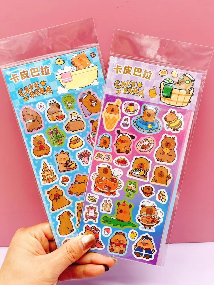 卡皮巴拉贴纸创意镭射咕卡手帐贴纸卡通水豚贴画儿童DIY装饰粘贴