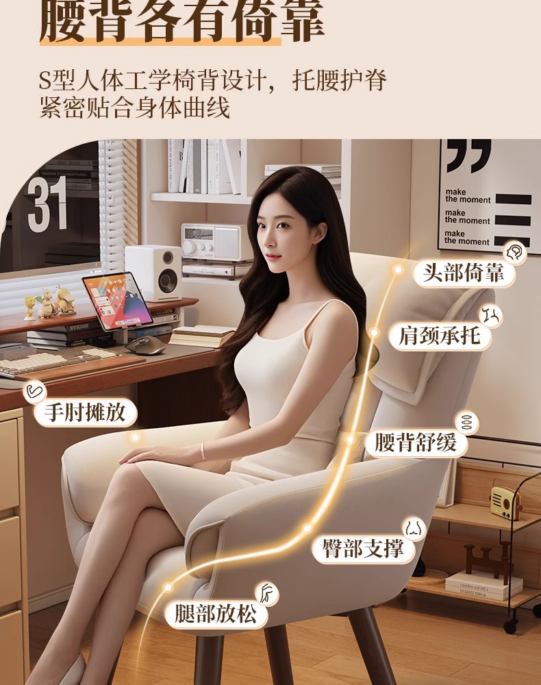 化妆椅家用房间靠背简约美甲旋转凳子轻奢高级女生卧室梳妆台椅子