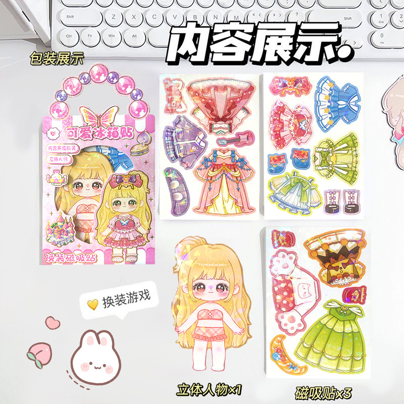 磁力换装贴纸儿童卡通冰箱贴时尚高颜值磁吸换装贴玩具生日礼物