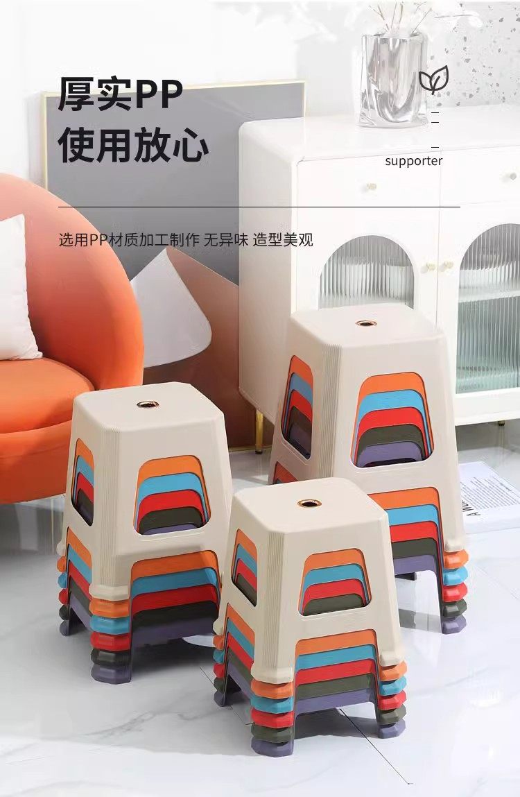 塑料凳子加厚家用特厚简约现代可叠放熟胶板凳餐桌椅子成人高方凳