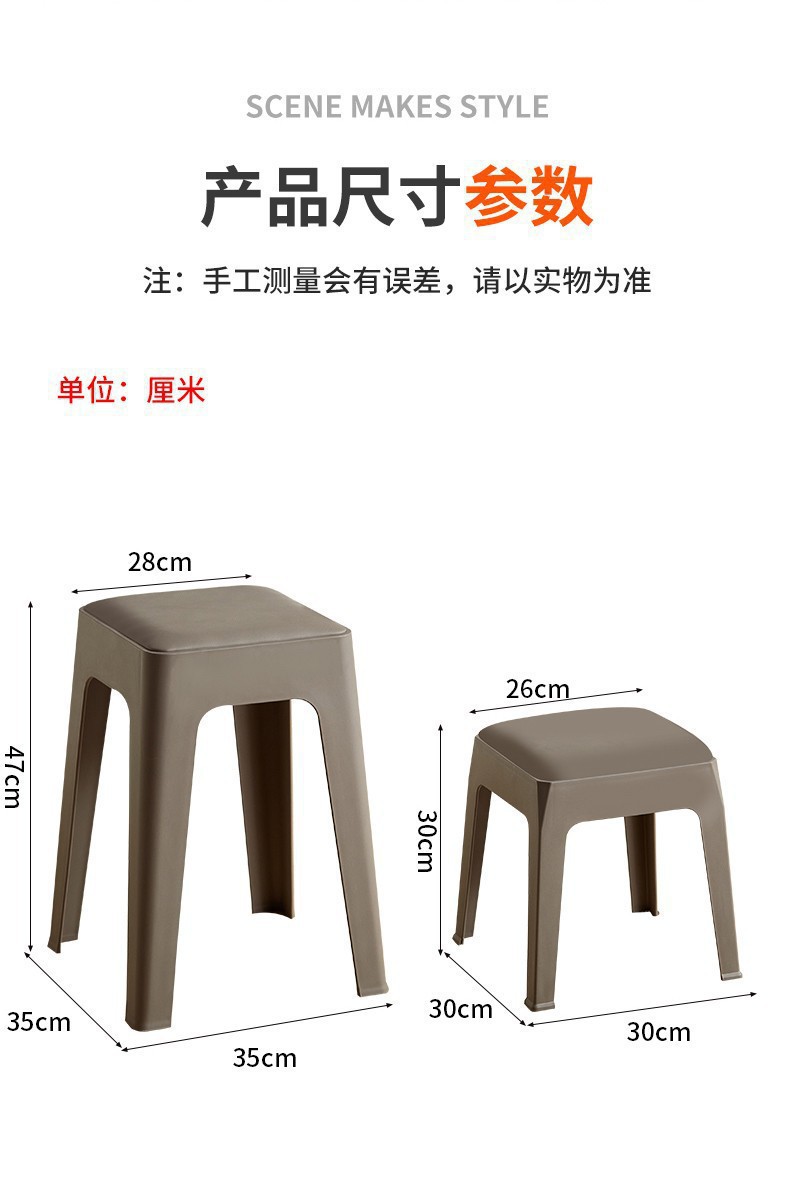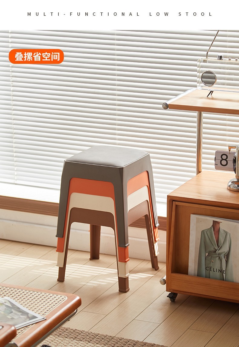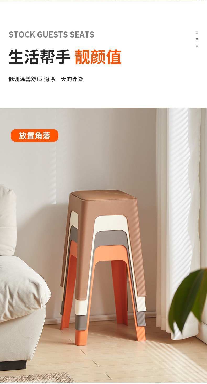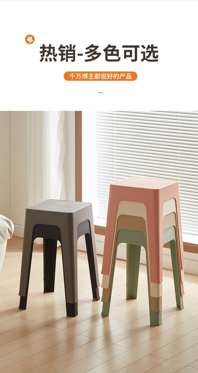 塑料凳子可叠放加厚家用软包现代简约方凳餐桌备用加座商用椅登子