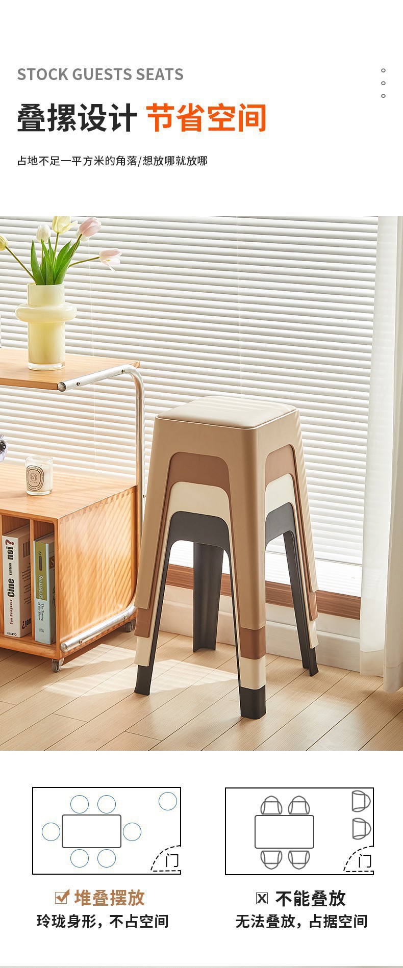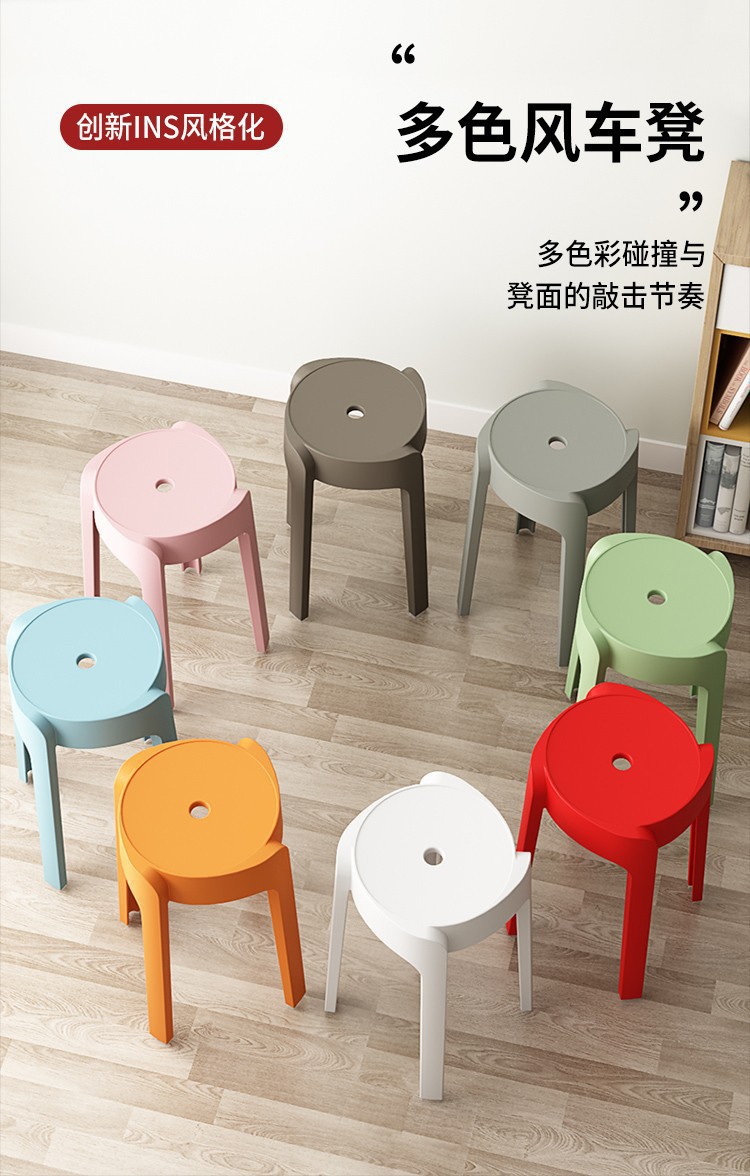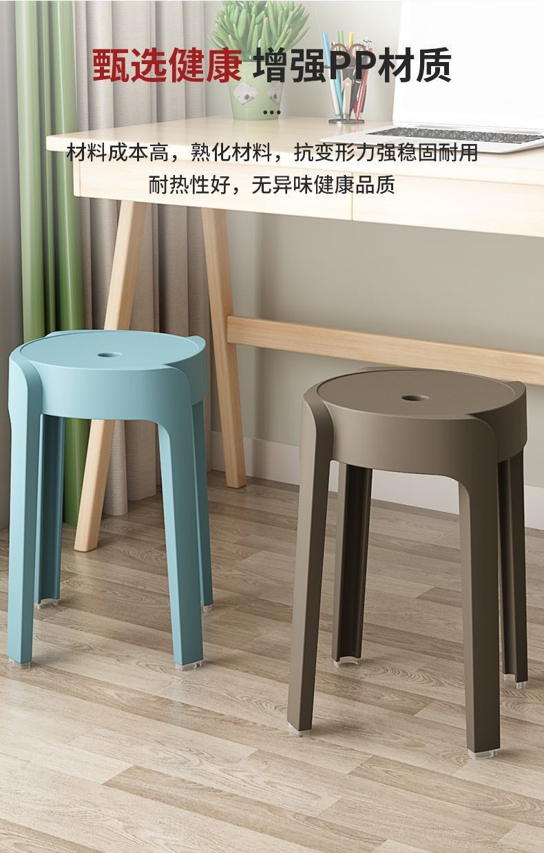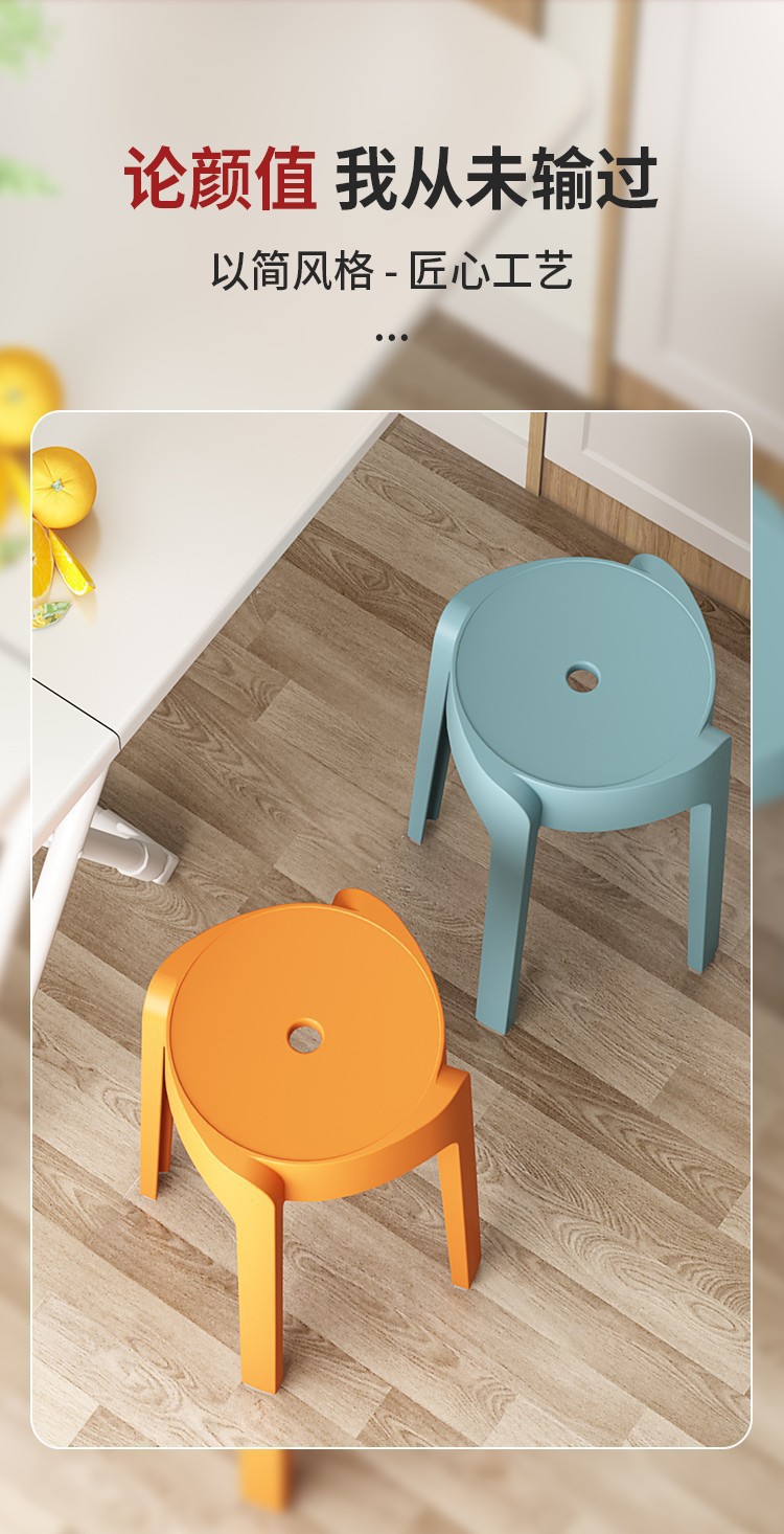 塑料凳子可叠放加厚家用软包现代简约方凳餐桌备用加座商用椅登子