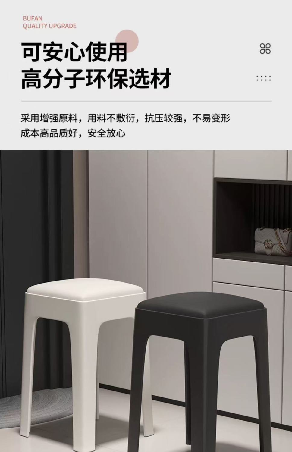塑料凳子家用加厚可叠放方板凳现代简约结实耐用餐桌凳备用高椅子
