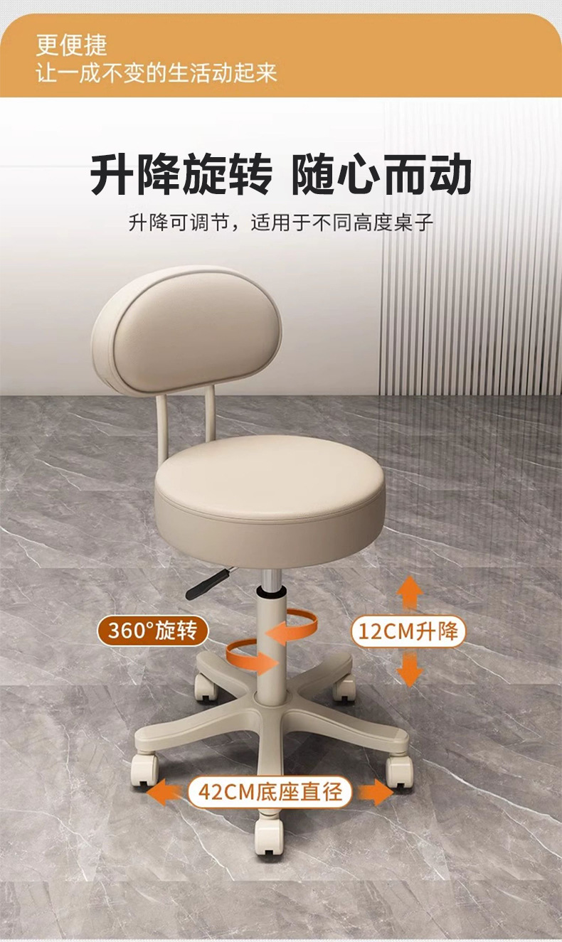美容院凳子吧台椅滑轮升降旋转圆凳美发美甲化妆梳妆凳吧凳高脚凳