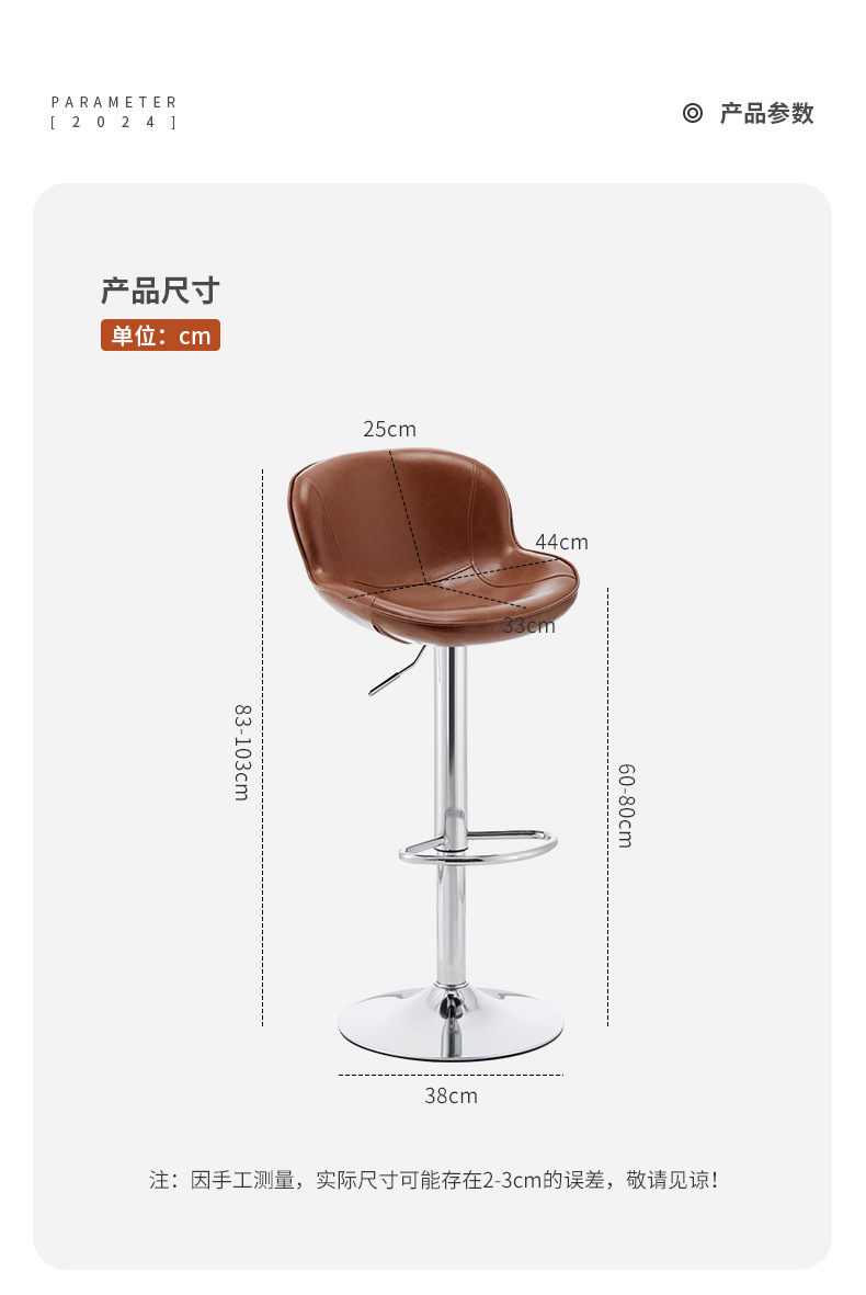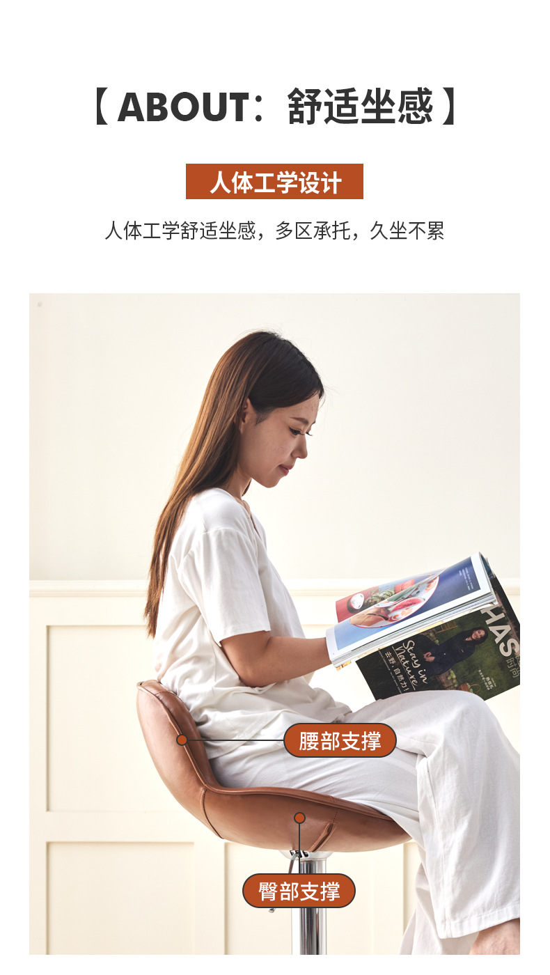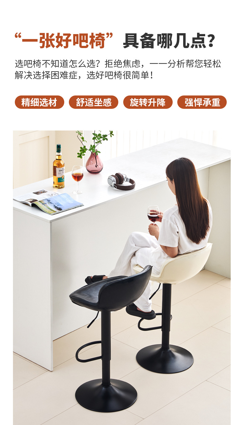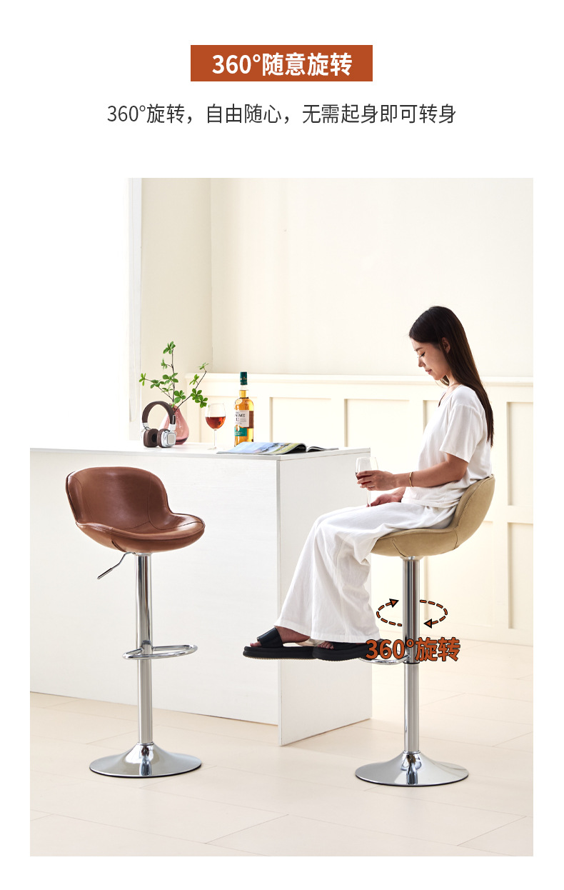 意式轻奢吧台椅升降旋转高脚凳岛台酒吧椅咖啡厅高椅前台收银吧椅