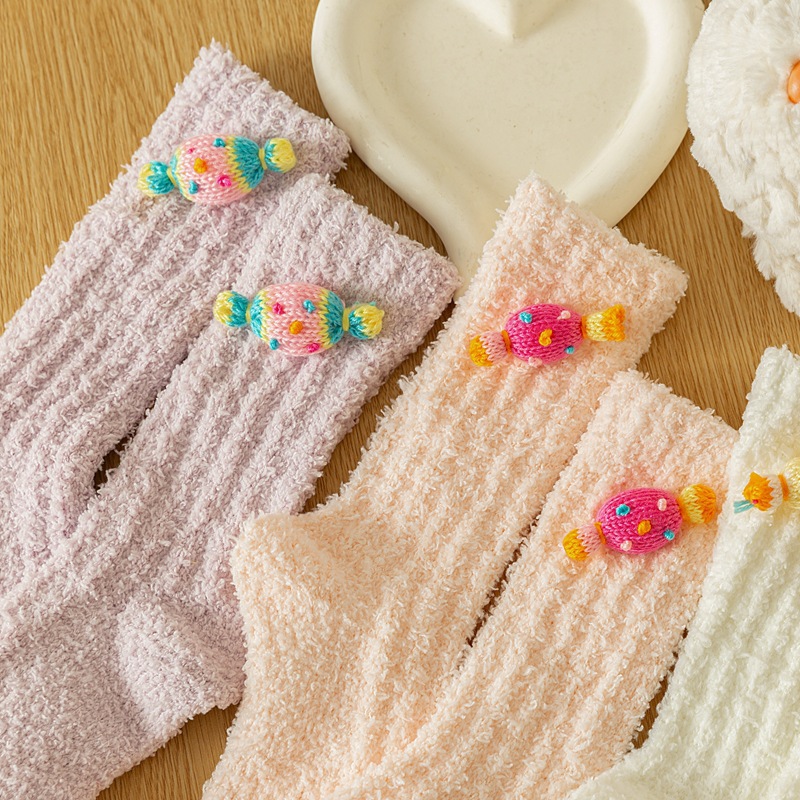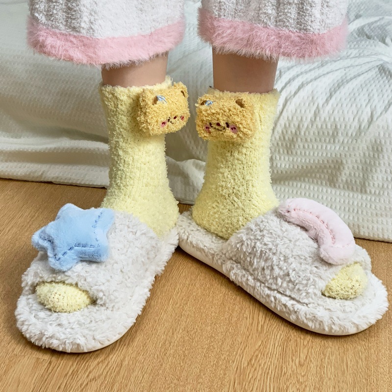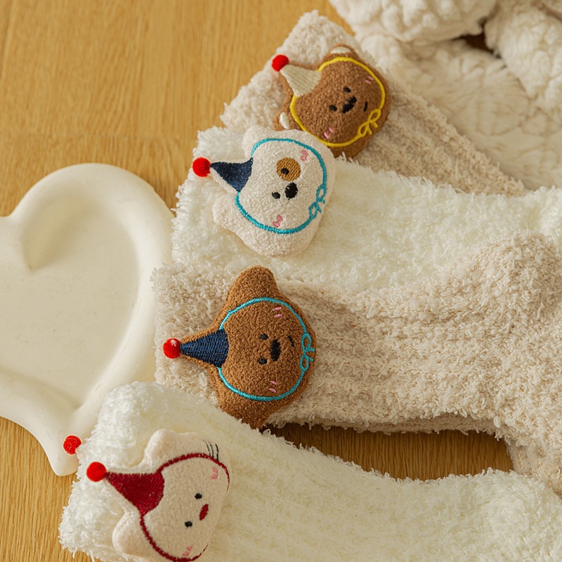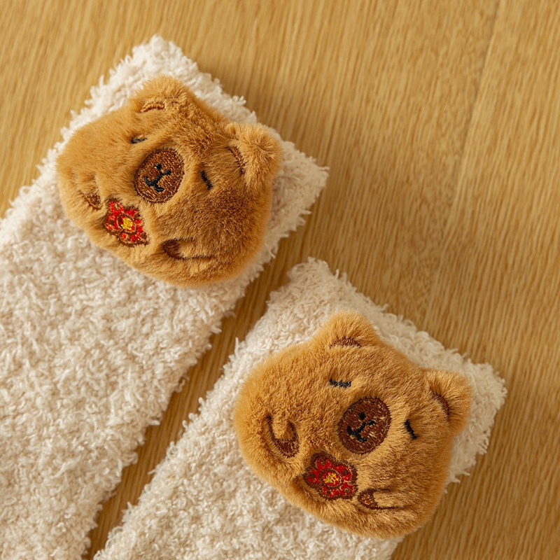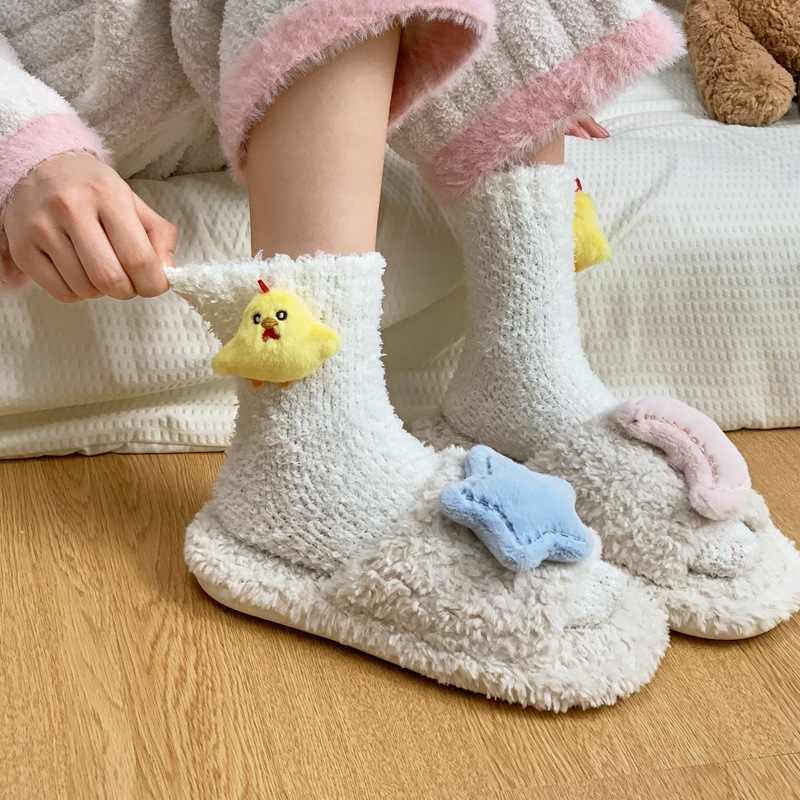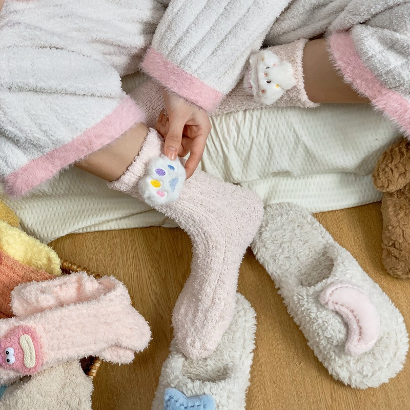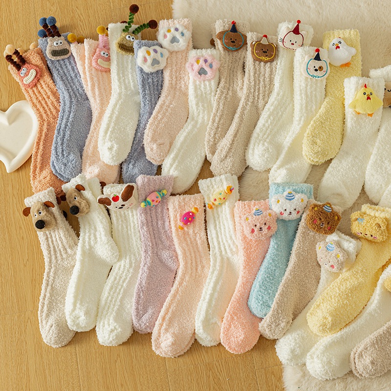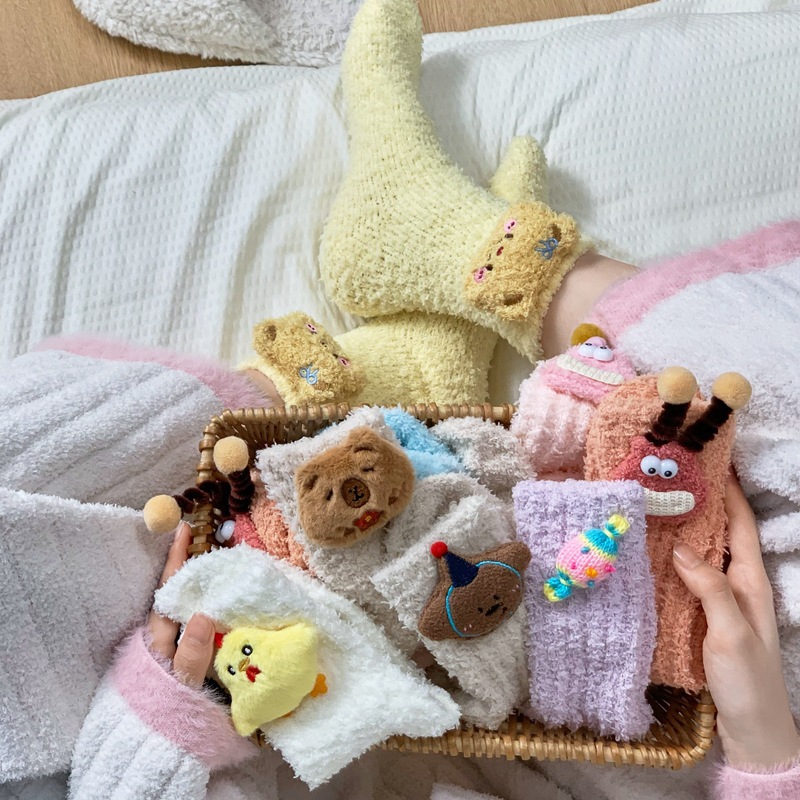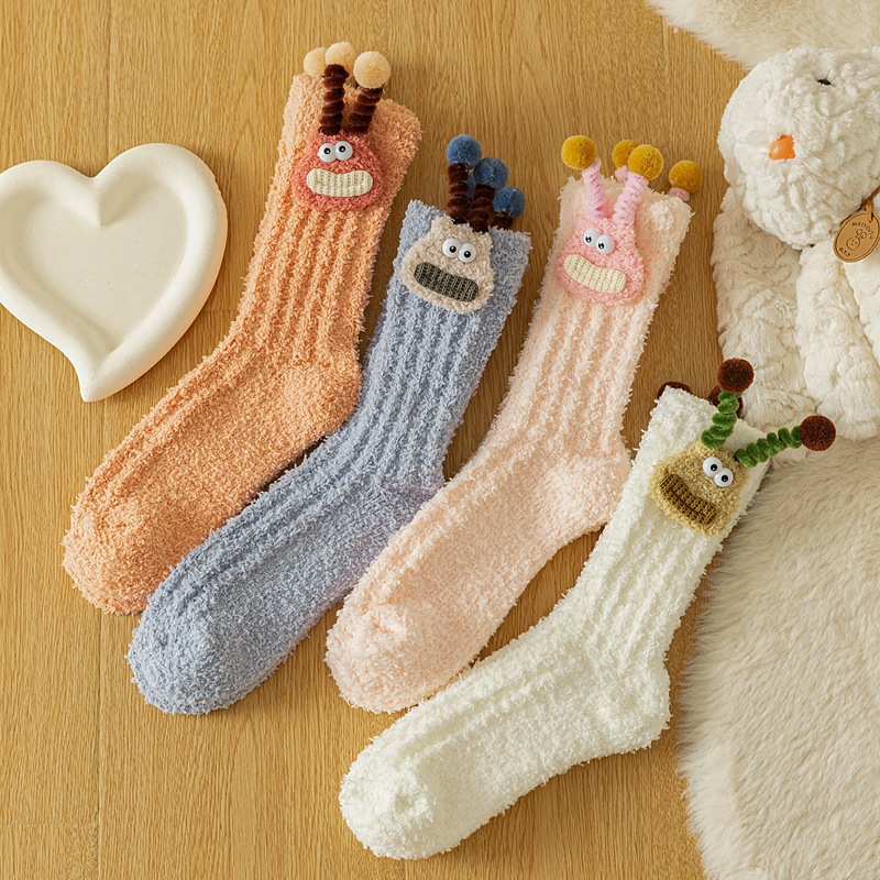 毛绒绒加厚保暖袜子女中筒可爱珊瑚绒家居睡眠袜地板袜搞怪玩偶袜
