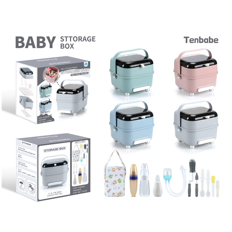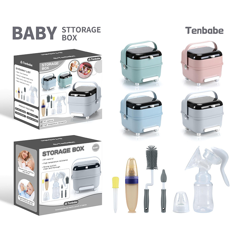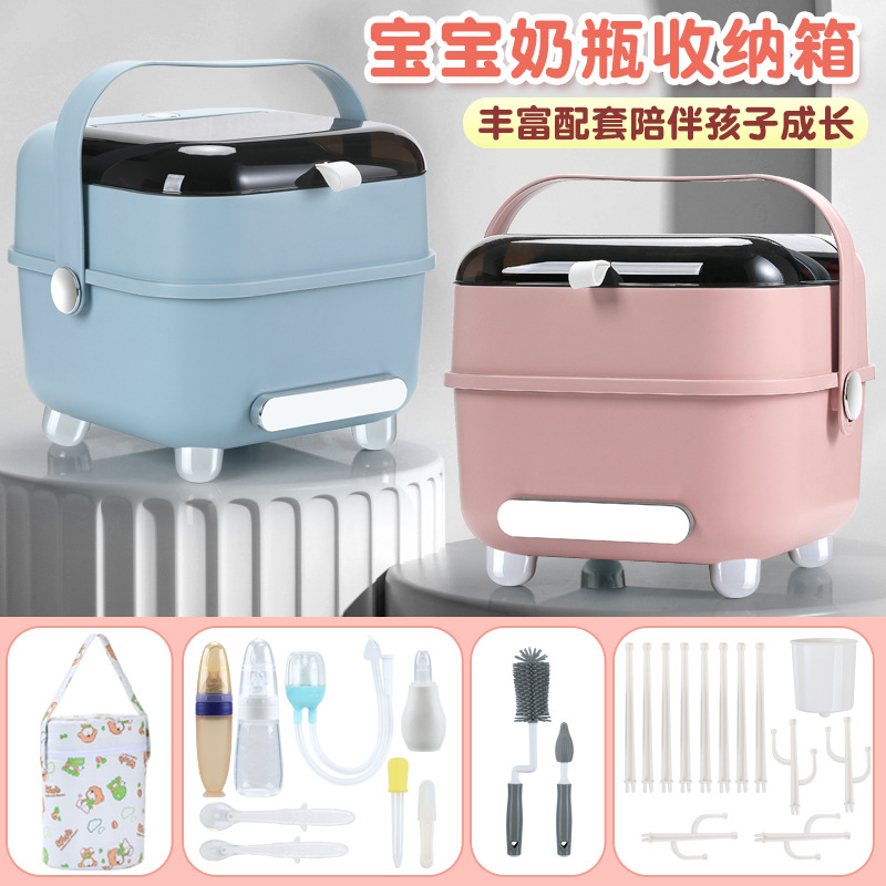 便携带盖外出晾干器宝宝奶瓶收纳箱辅食器奶瓶餐具清洗刷套装跨境