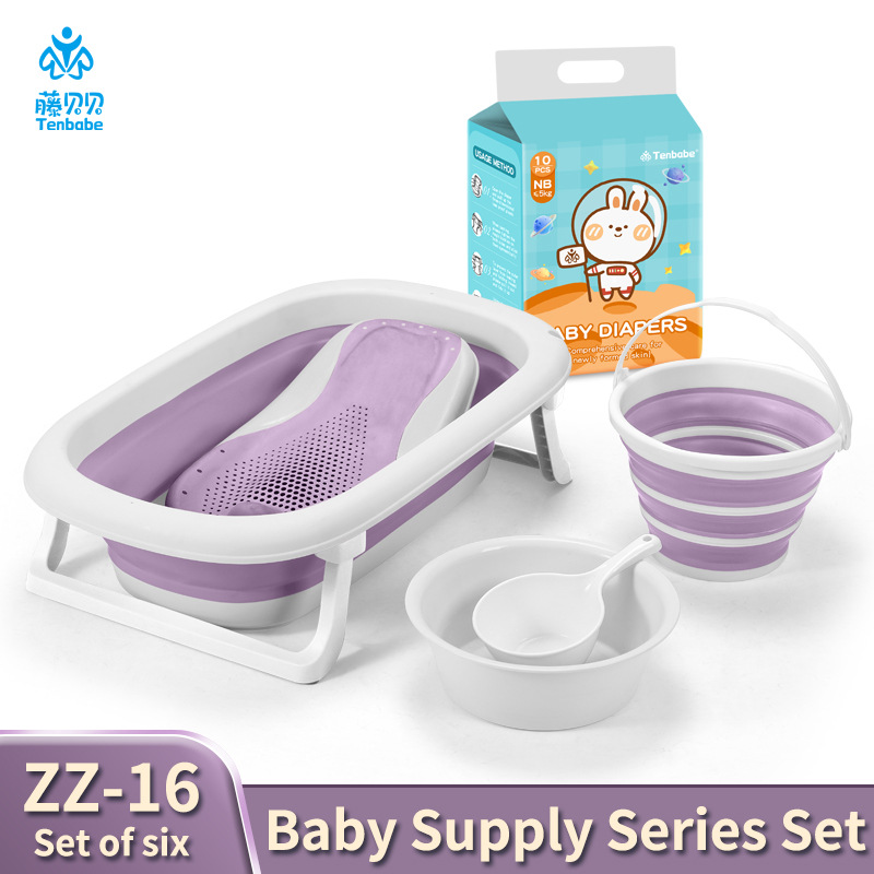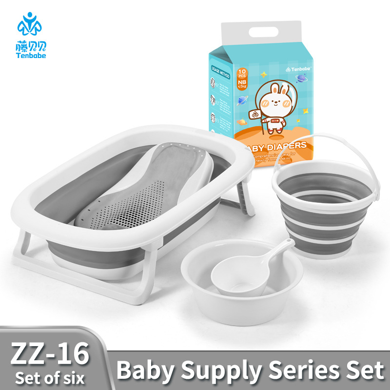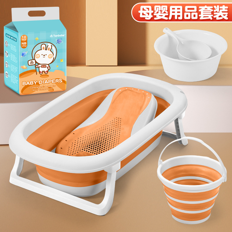 新生儿礼品彩盒婴儿洗澡幼儿坐躺折叠大号浴桶家纸尿裤宝宝浴盆套