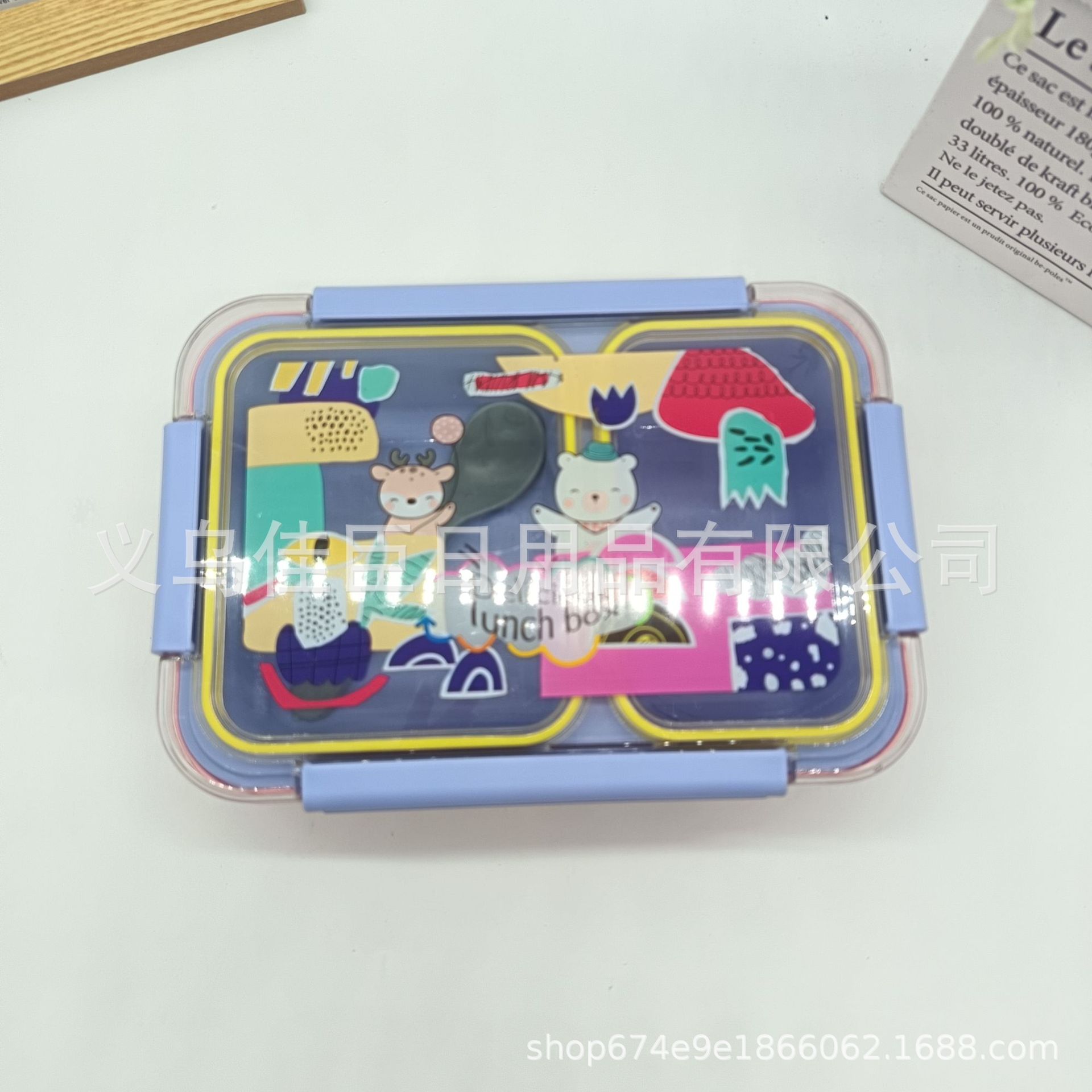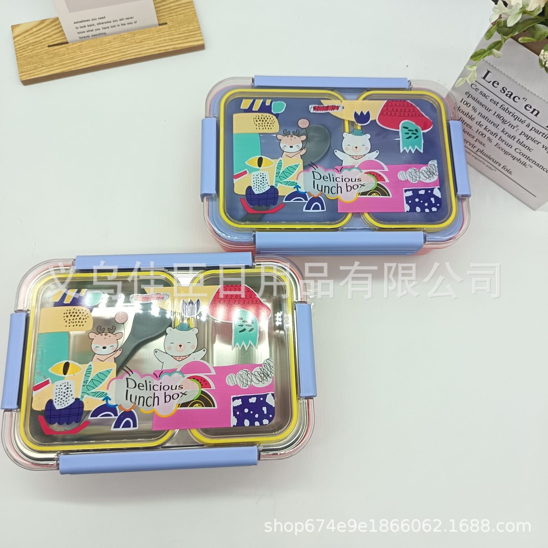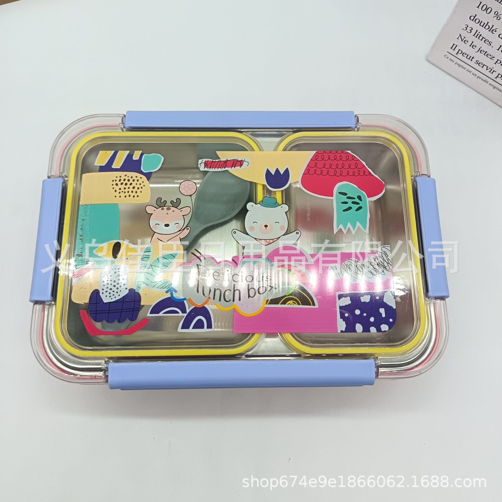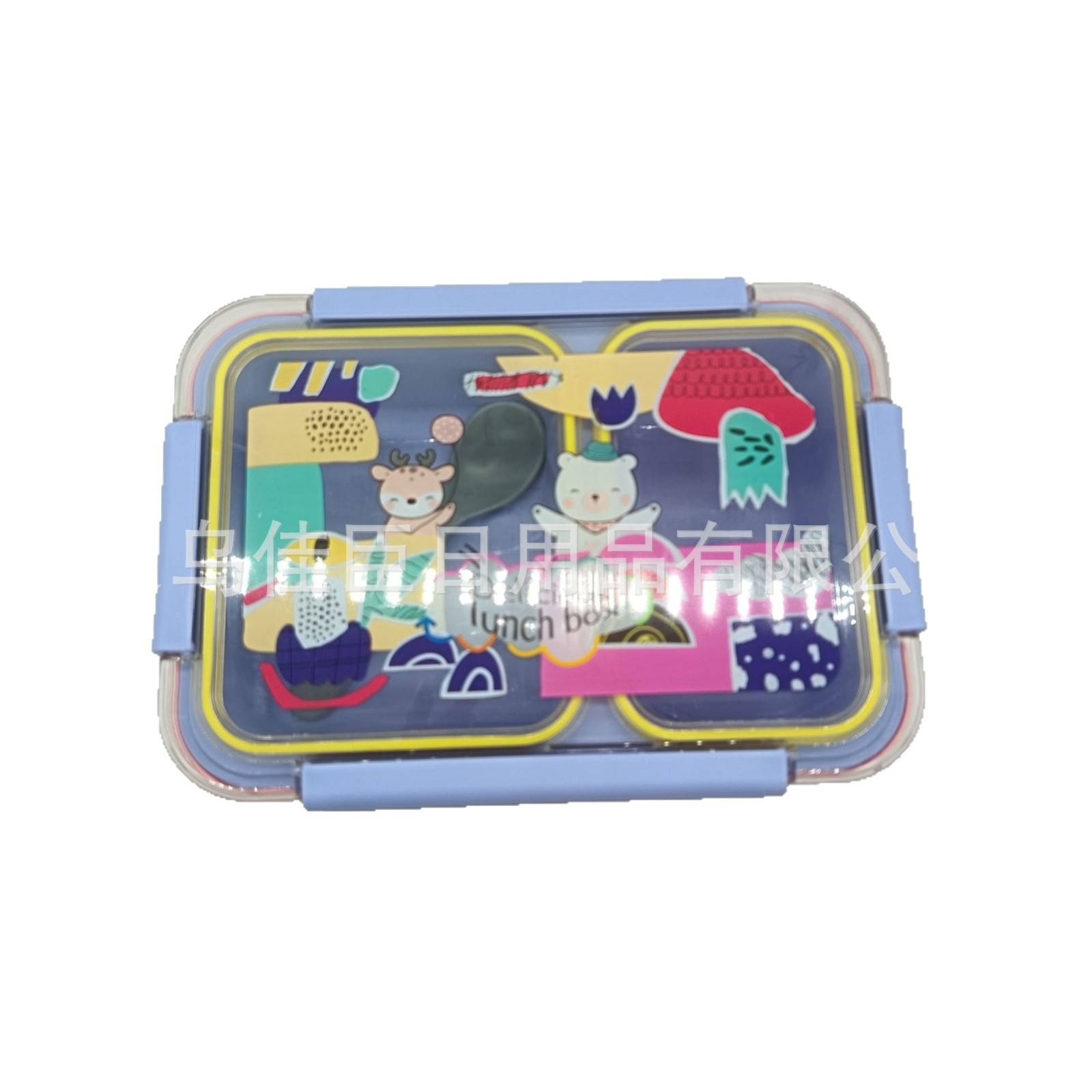 亚马逊批发儿童饭盒卡通可爱多彩小动物便携便当盒饭盒野餐盒带勺