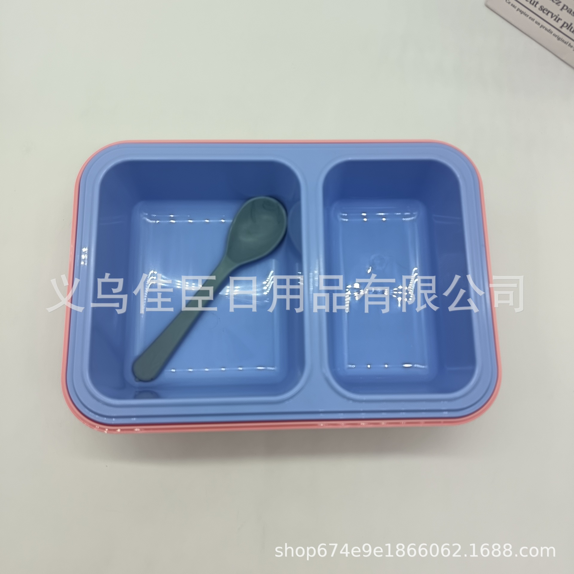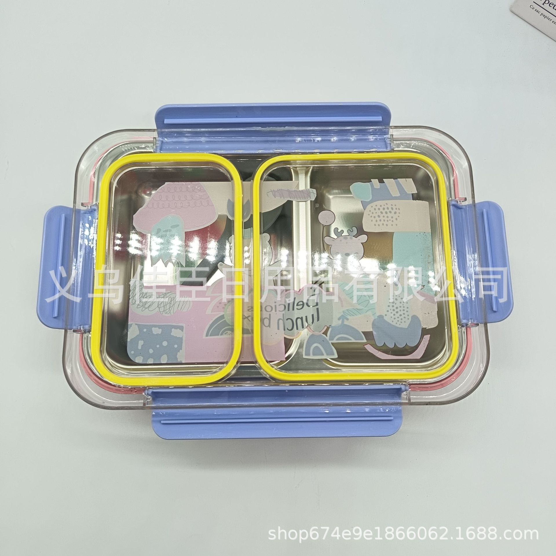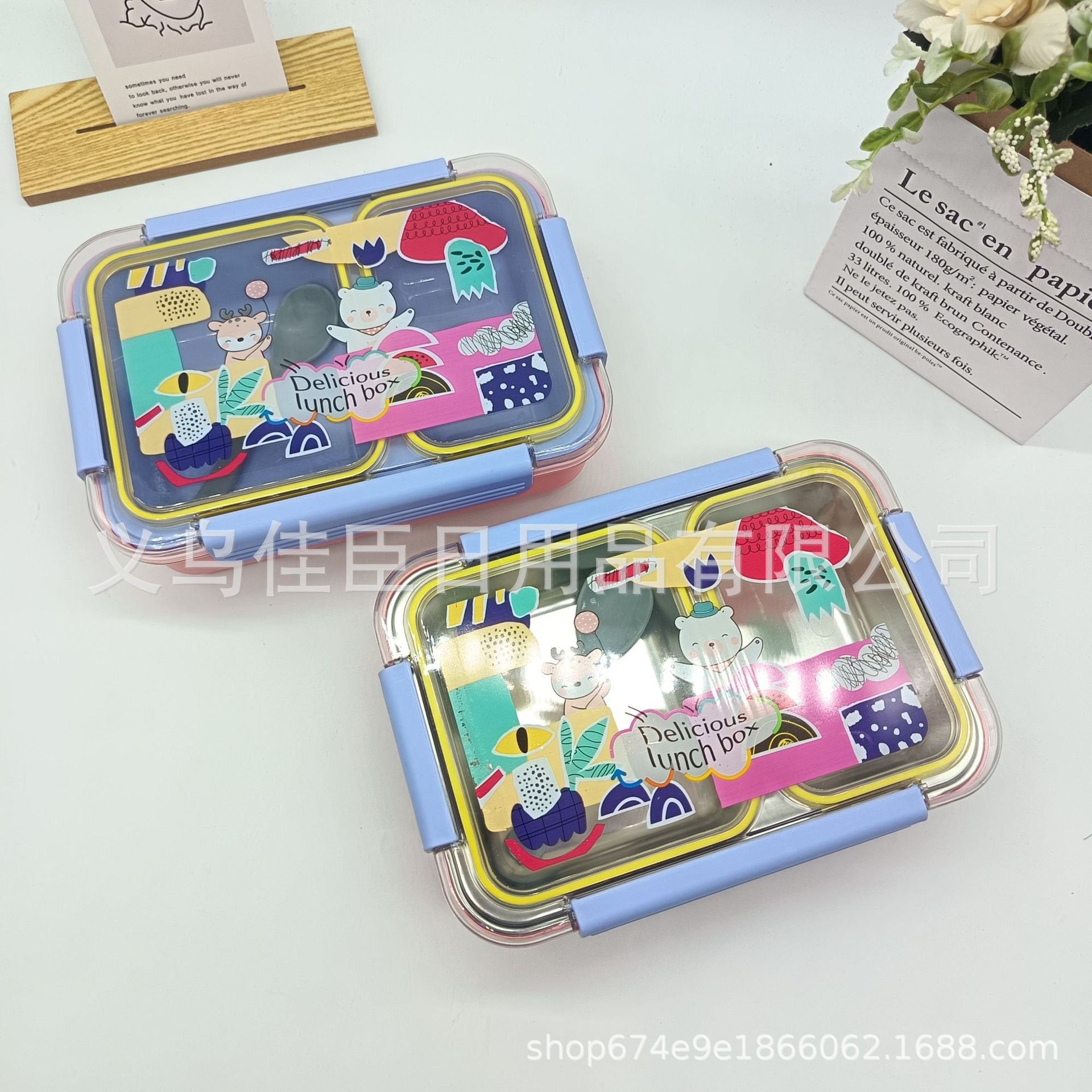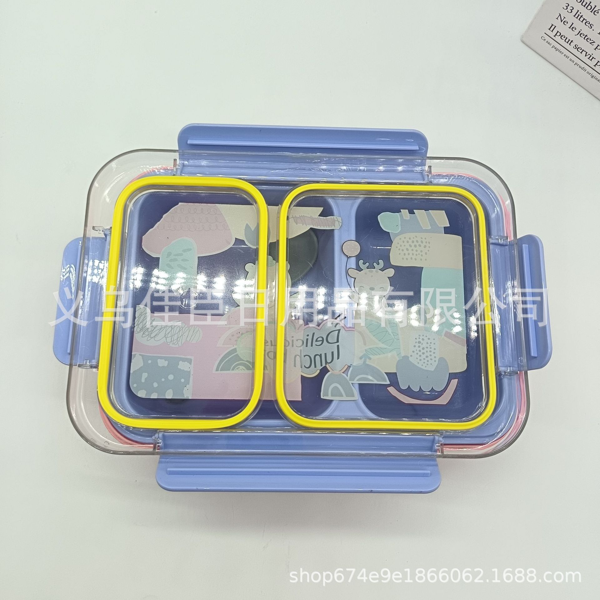 亚马逊批发儿童饭盒卡通可爱多彩小动物便携便当盒饭盒野餐盒带勺