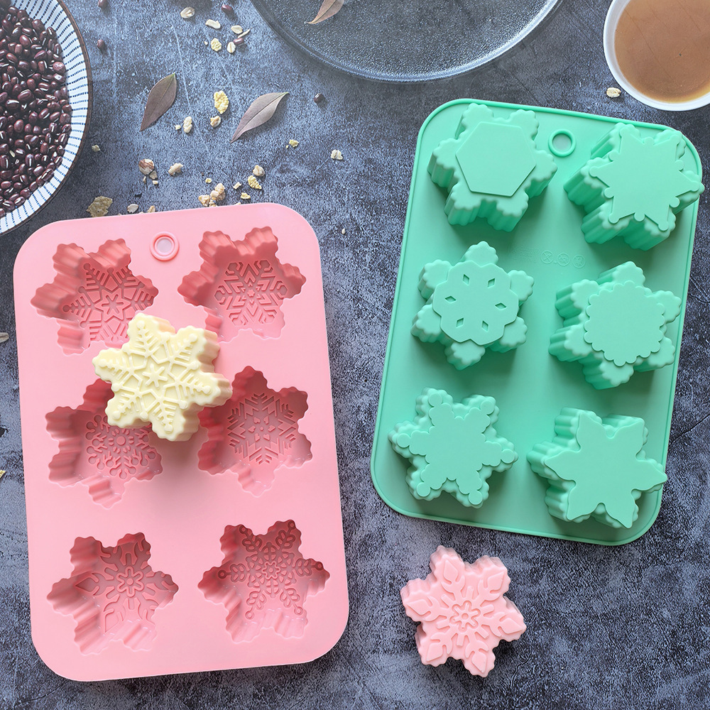 6款圣诞雪花肥皂硅胶模具手工艺品烛制作DIY蛋糕烘焙模具642