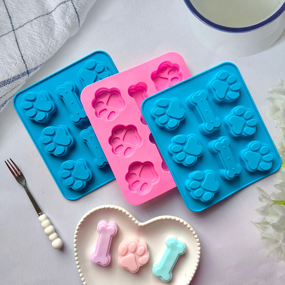 硅胶6连猫爪骨头78巧克力模具DIY饼干慕斯糖果布丁蛋糕烘焙模具