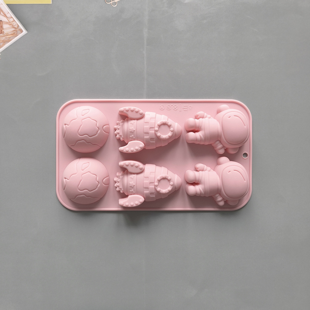 新款硅胶6连地球火箭宇航员形状蛋糕模具DIY巧克力布丁面包烘焙烤