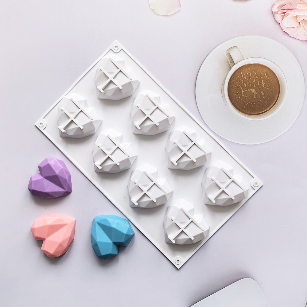 8连钻石爱心371慕斯蛋糕巧克力模具 爱心硅胶模 慕斯模