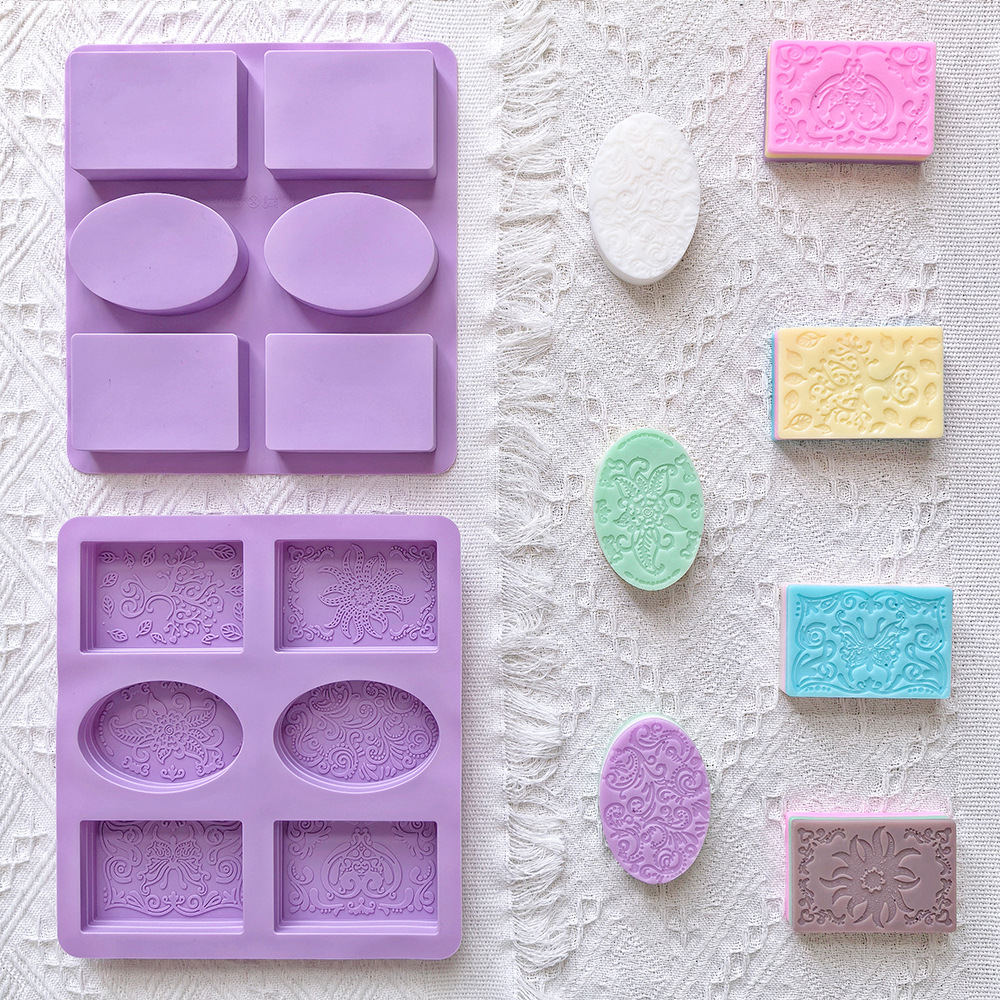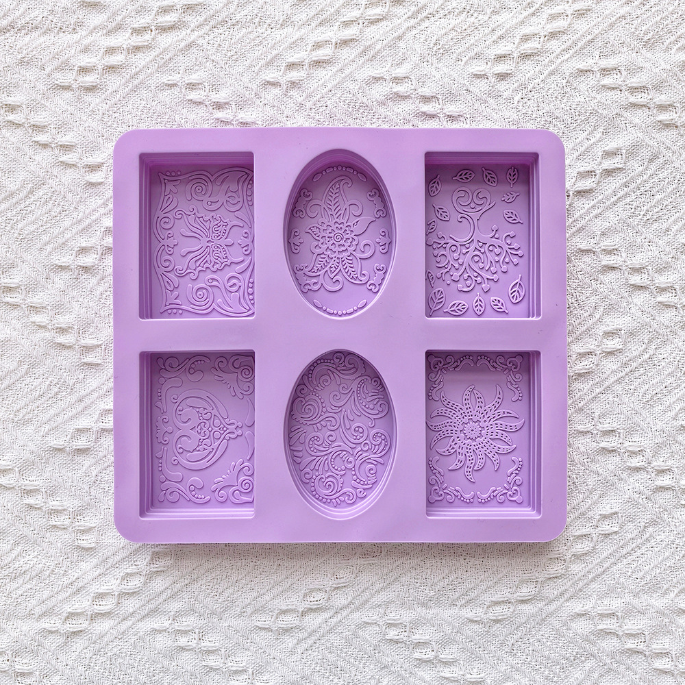 6连花纹肥皂544椭圆矩形硅胶模具DIY香薰适蜡烛制作模具
