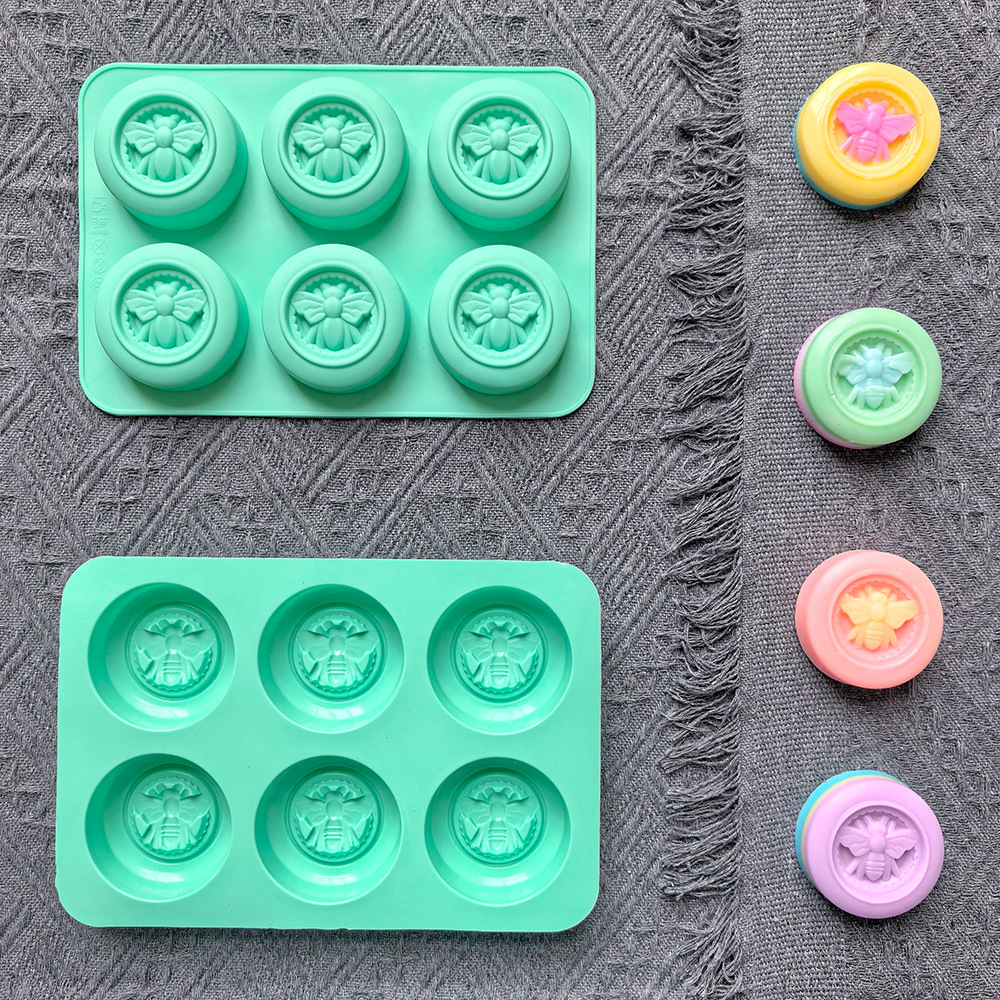 6连圆形蜜蜂肥皂563硅胶肥皂模具香薰手工艺品制作皂模蛋糕模具