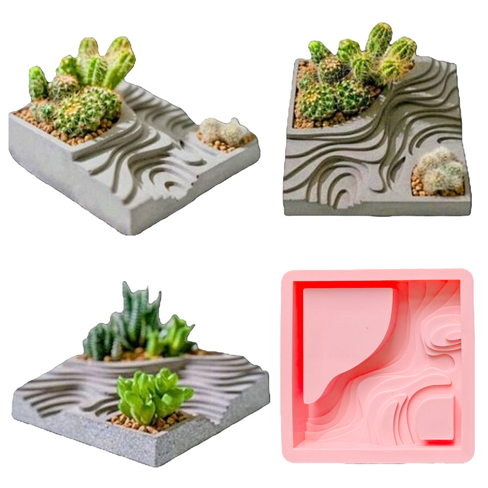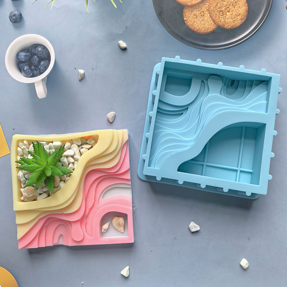 梯田花盆水泥花盆模香薰石膏 多肉盆栽摆件模硅胶模具37