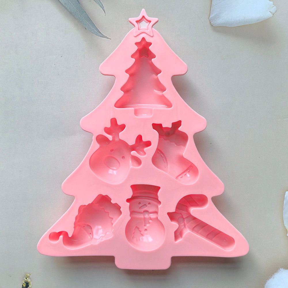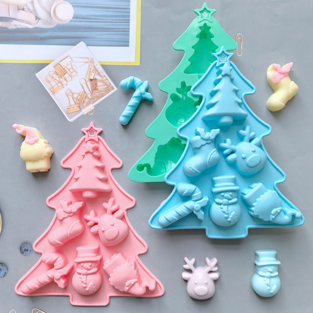 6连圣诞树巧克力607饼干硅胶模具糖果布丁甜点模具蛋糕烘焙用具