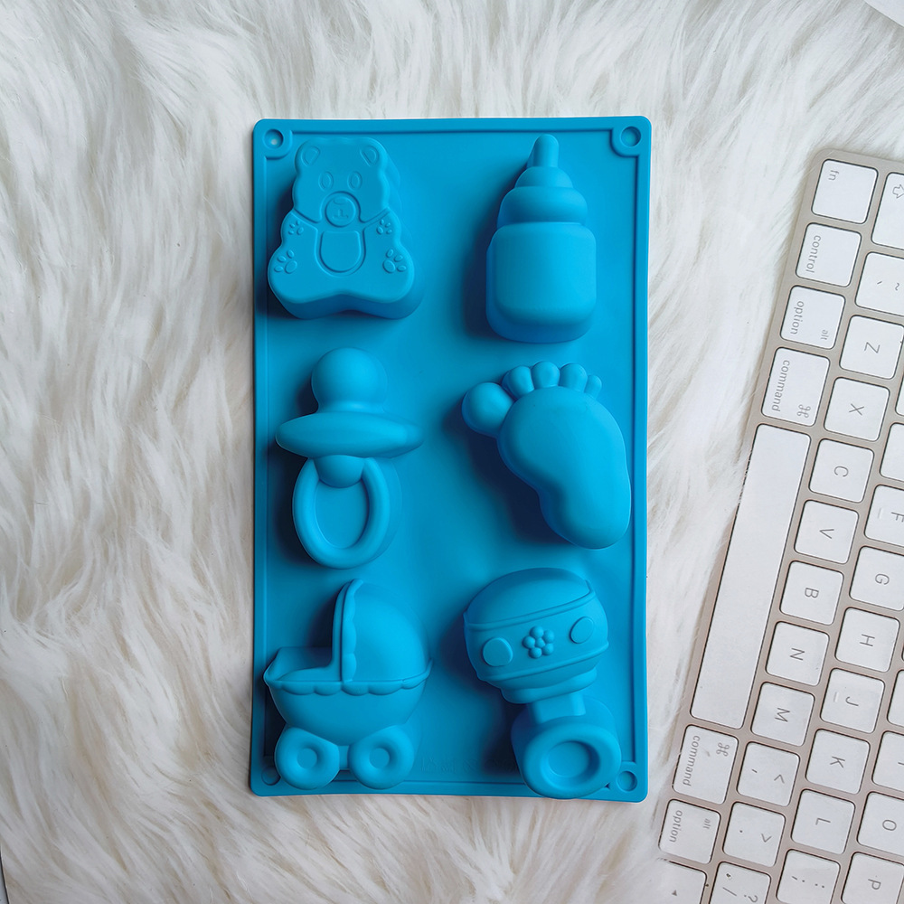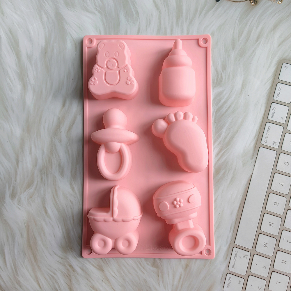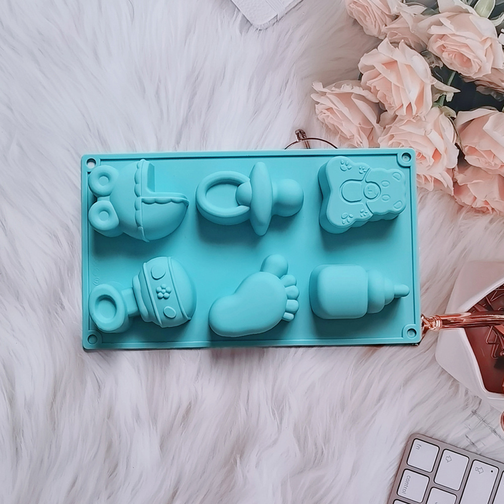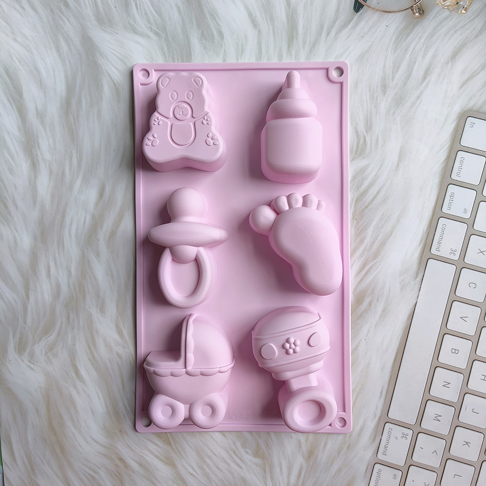 6连奶瓶脚丫613硅胶烘焙模具DIY甜点布丁蛋糕模具迷你月饼制作模