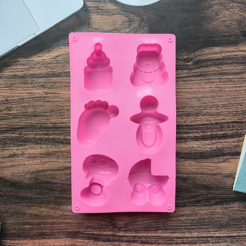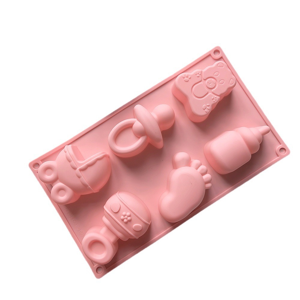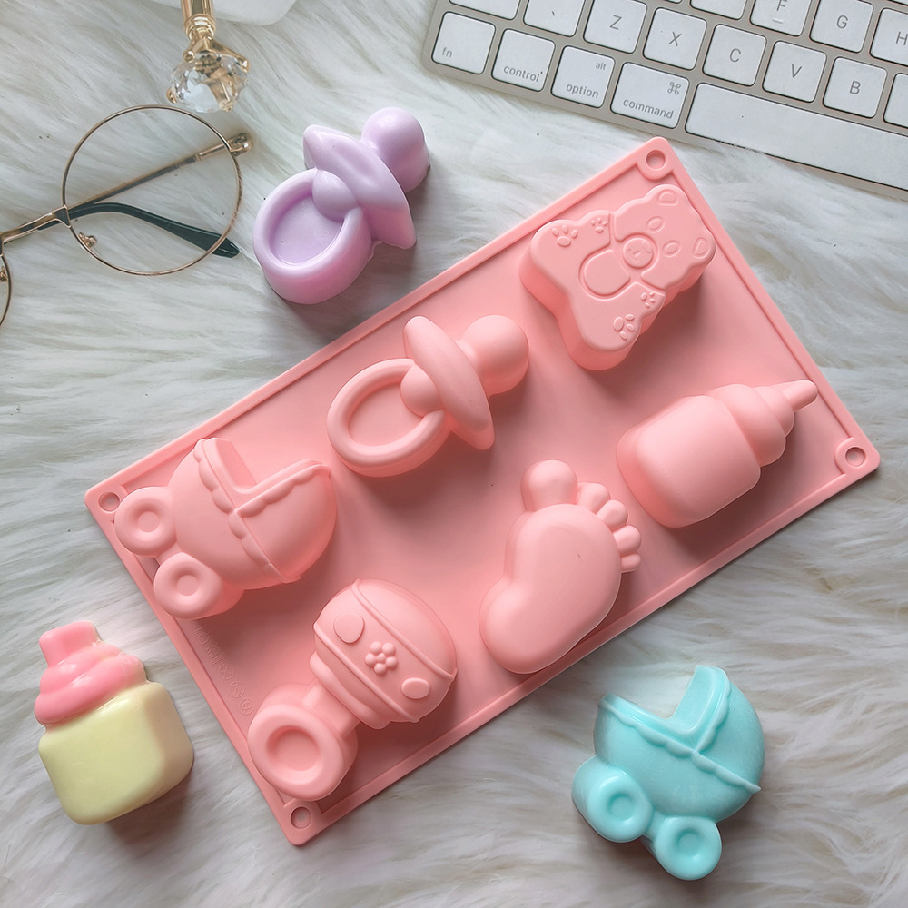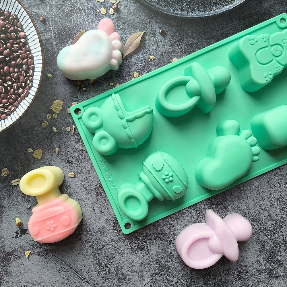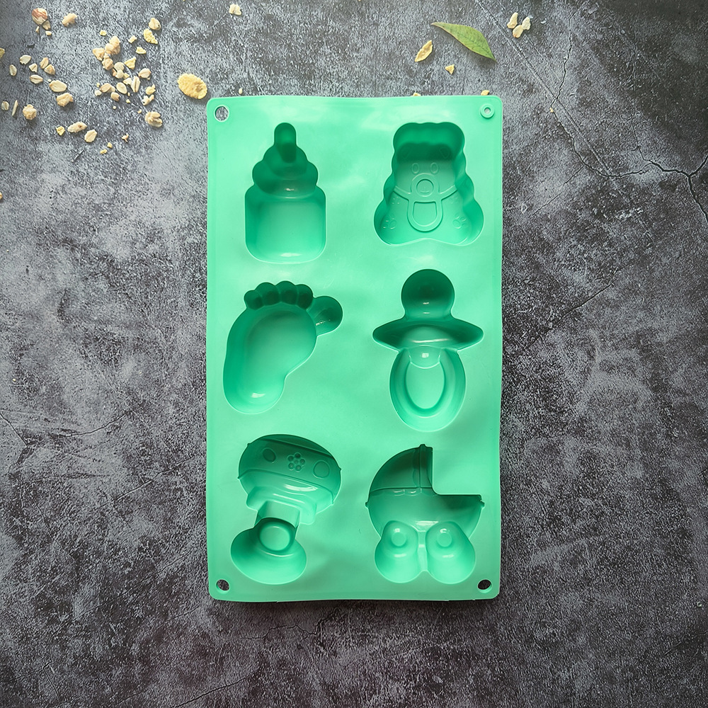 6连奶瓶脚丫613硅胶烘焙模具DIY甜点布丁蛋糕模具迷你月饼制作模