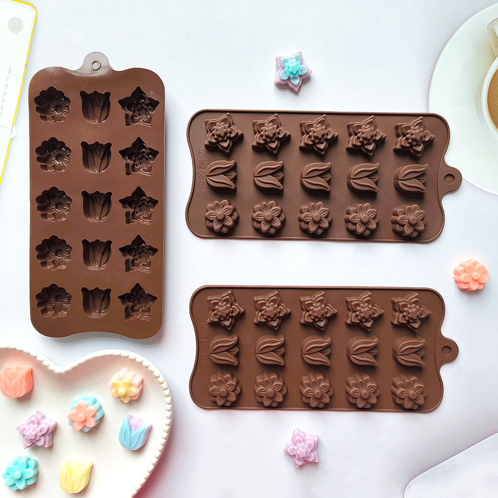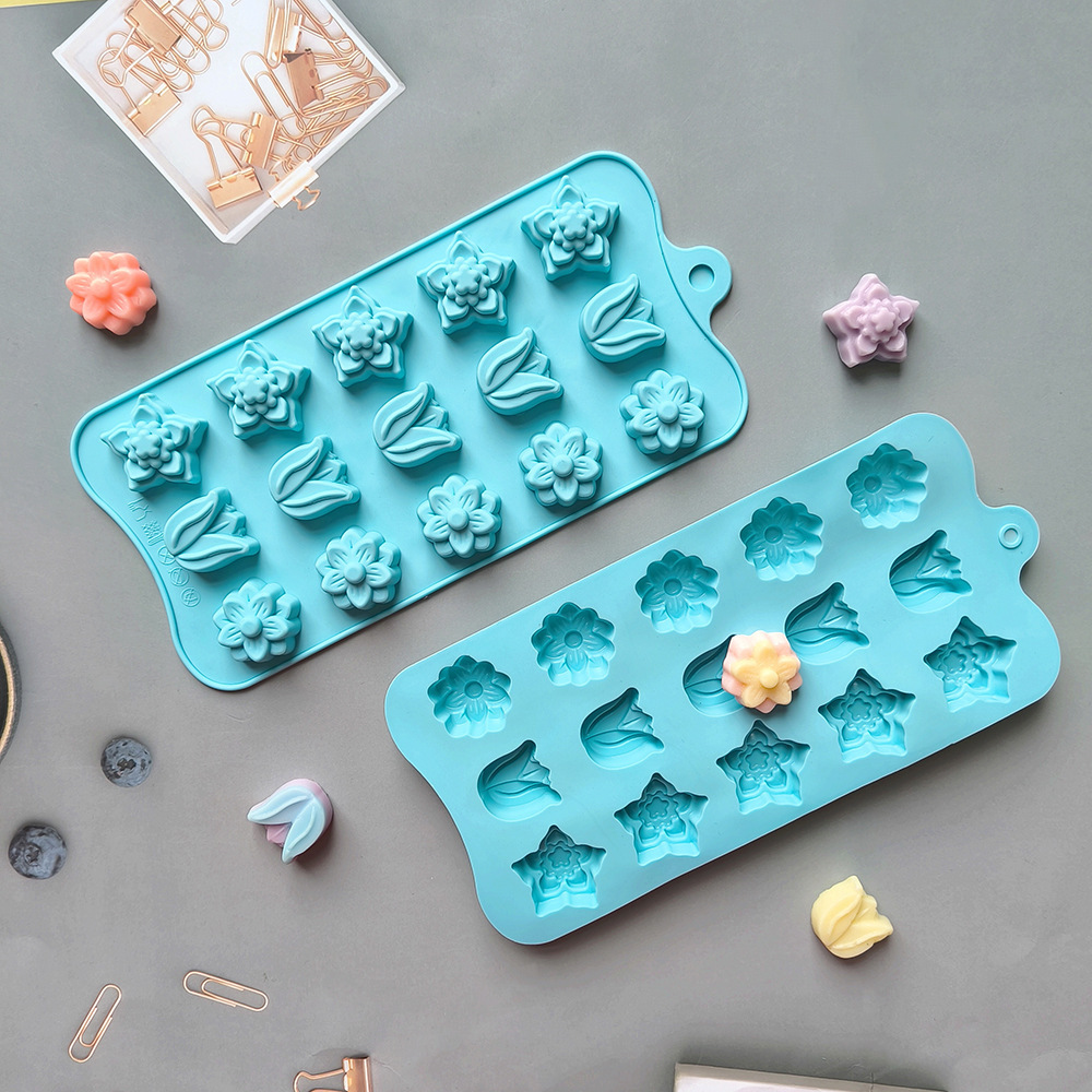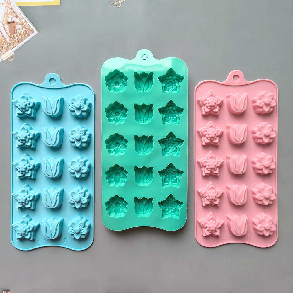 15连3款郁金香巧克力680蛋糕烘焙硅胶模具手工皂巧克力糖果布丁模
